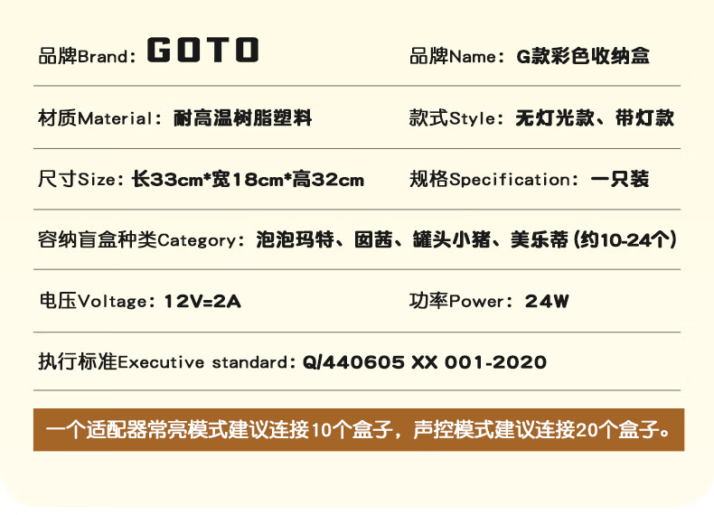 GOTO blind box display storage box LABUBU acrylic LABUBU storage transparent blind box dust-proof storage box display stand Taoyao powder 1 pack (including 2 partitions) without lights