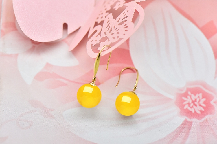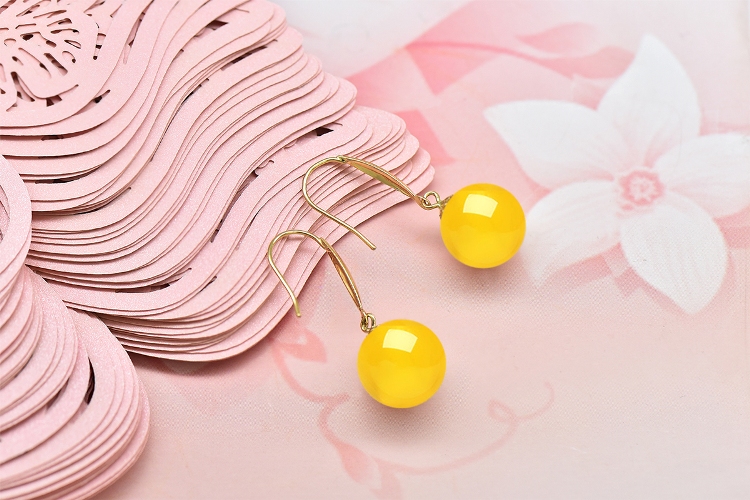 Gift: Drops of water form beads. Amber 18k gold earrings, beeswax ball ear hooks. Natural raw stone with good color. Gift for mom or girlfriend. 11.0-12.0mm beeswax ball beads + yellow 18k gold ear hooks.