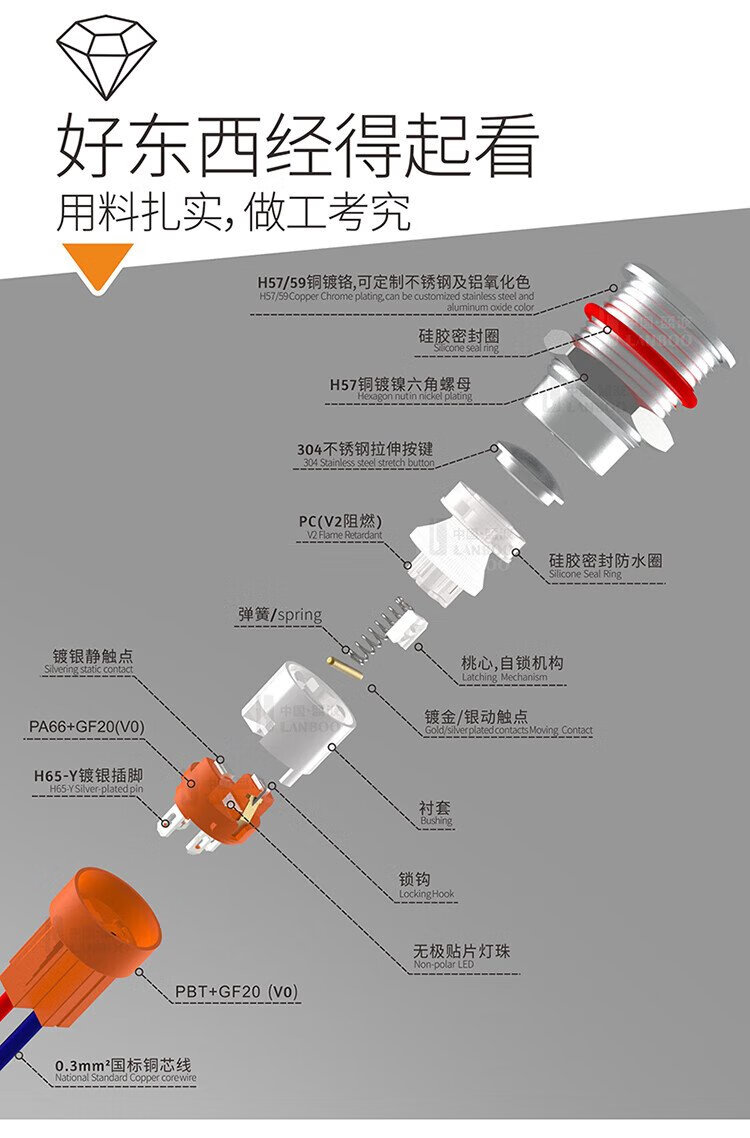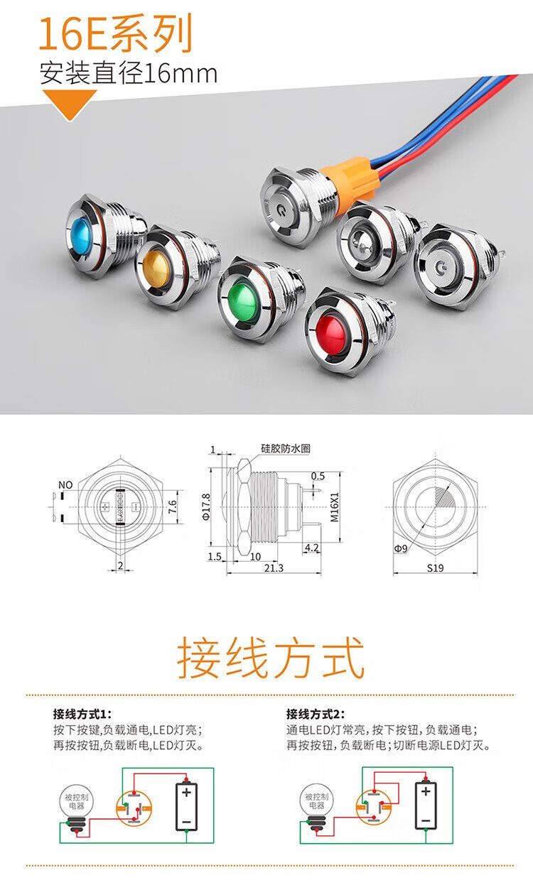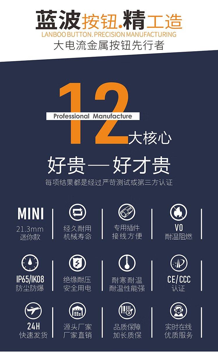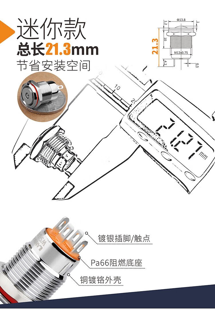 12mm metal button switch ultra-short self-resetting and self-locking optional customized waterproof with lights red, green, blue, yellow and white 24V220V 12B copper chrome-self-resetting-flat head power supply mark-blue light 5-24V