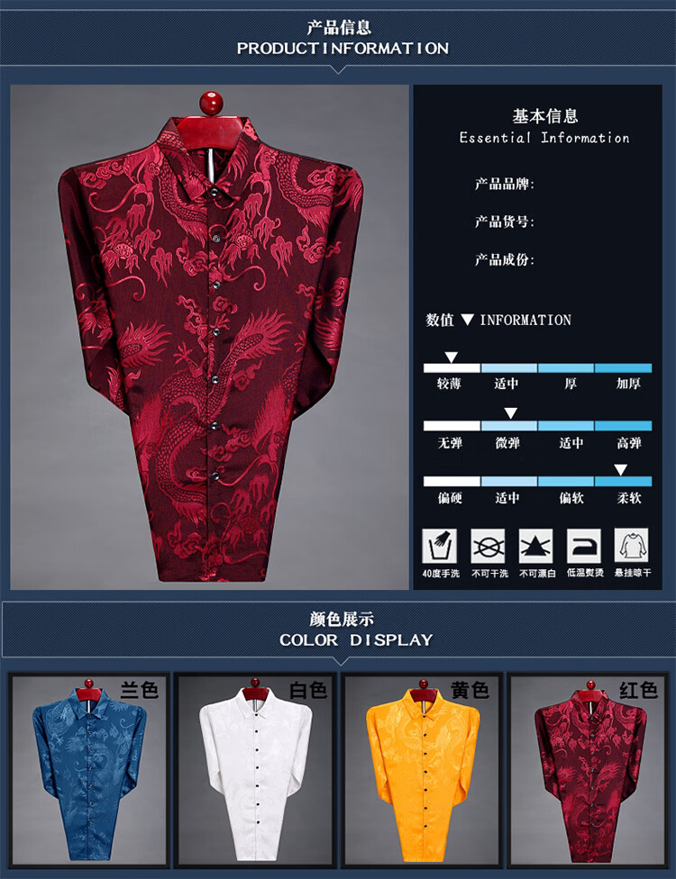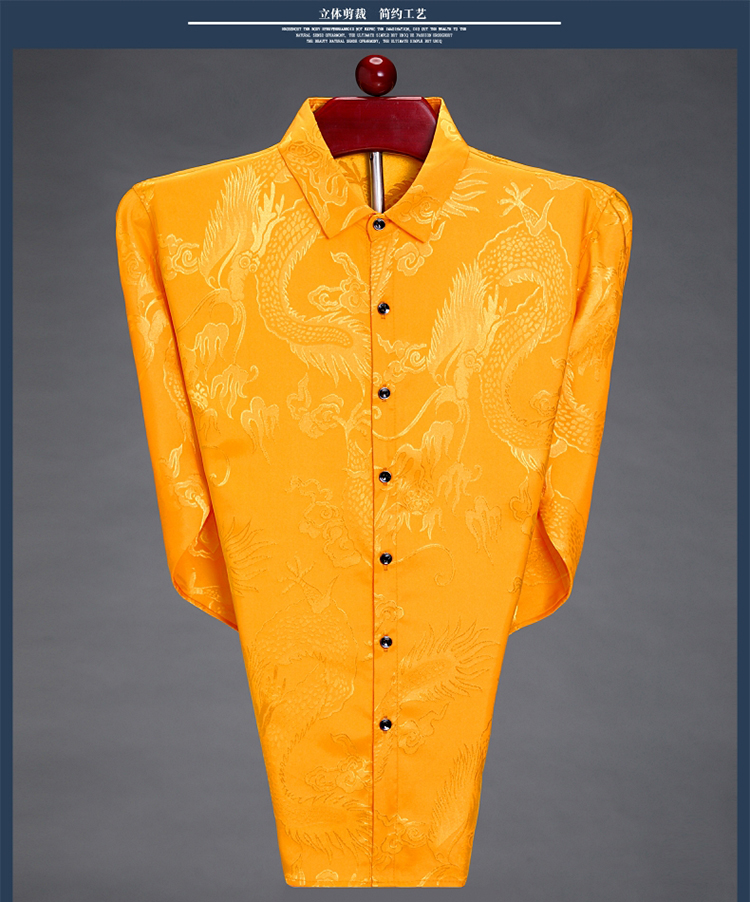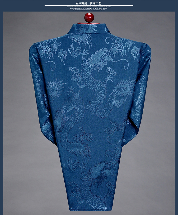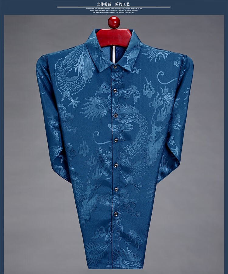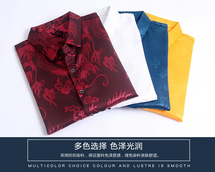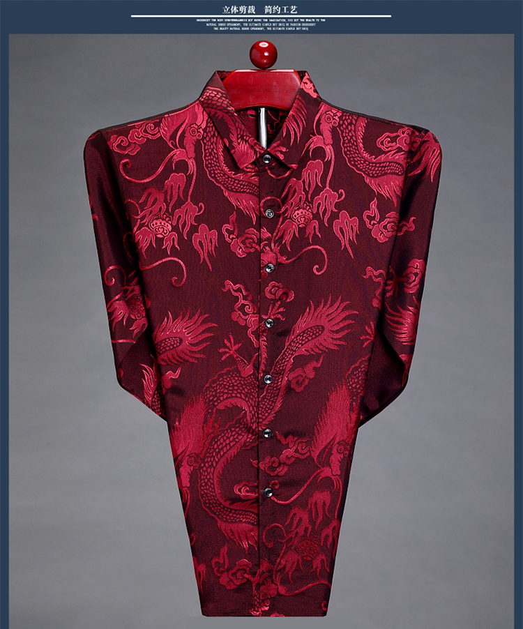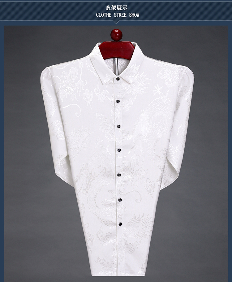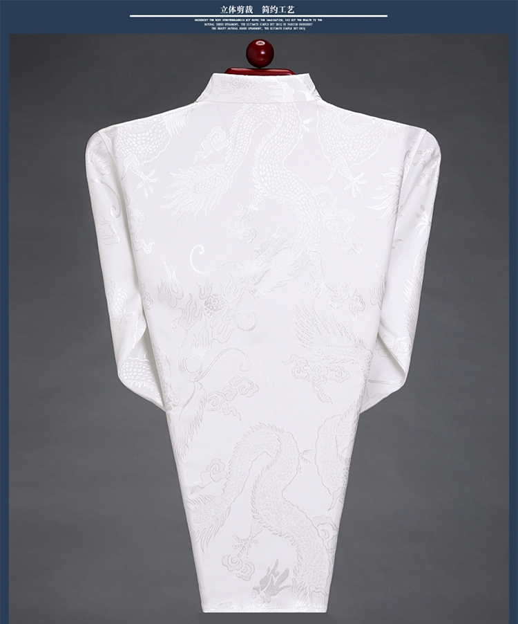 Pierre Cardin high-end men's long-sleeved shirt, iron-free casual shirt, Chinese dragon pattern, middle-aged spring and autumn mulberry silk, thin style, white 170/84A