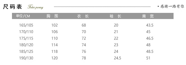 China (cm) 160-165/84-86 165-170 / 88-90 167-172 / 92-96 168-173 / 98-102 170-176 / 106-110