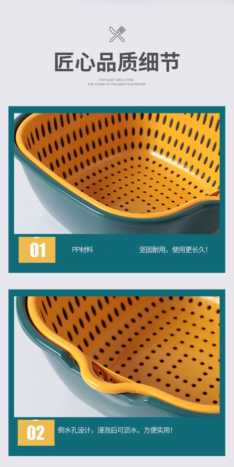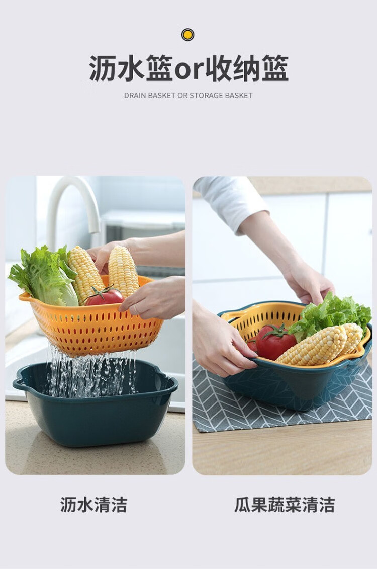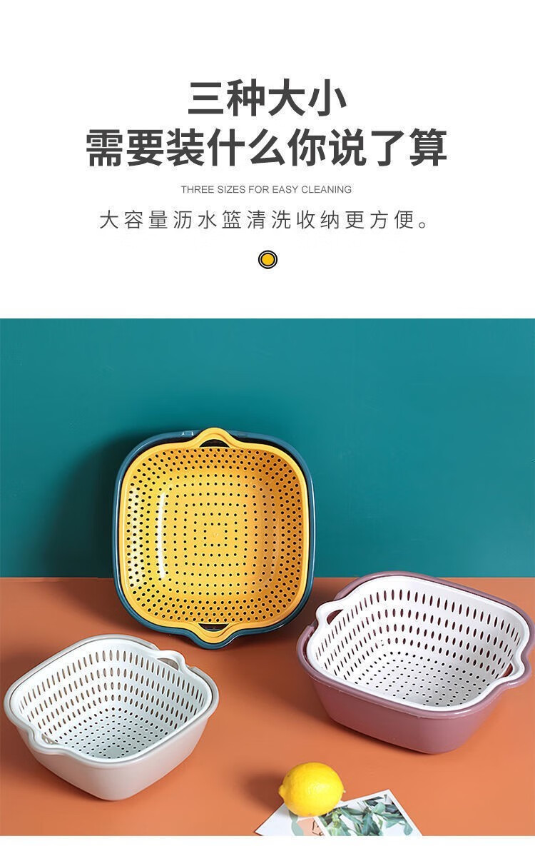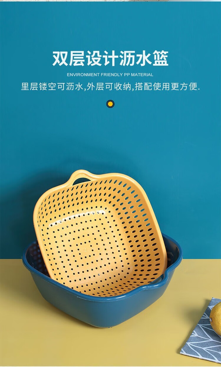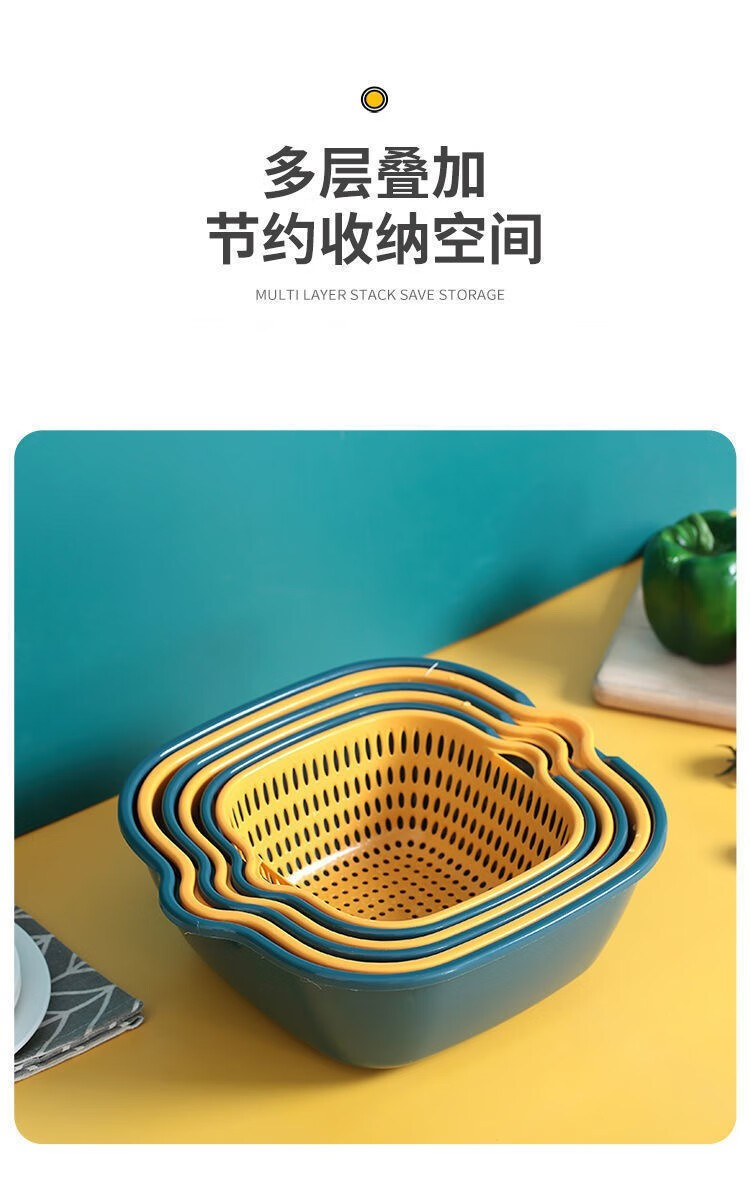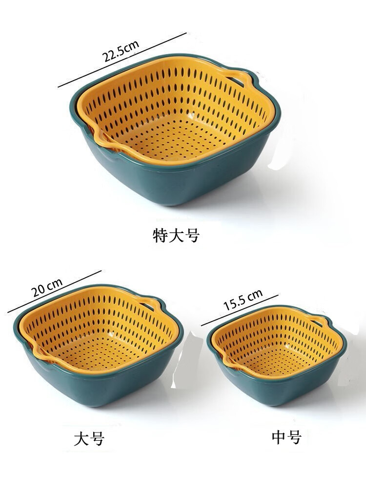 Chunshao kitchen vegetable basket drain basket double layer vegetable basin drain basket fruit and vegetable basket leaking basin 6-piece set extra large + large + medium blue and yellow two colors