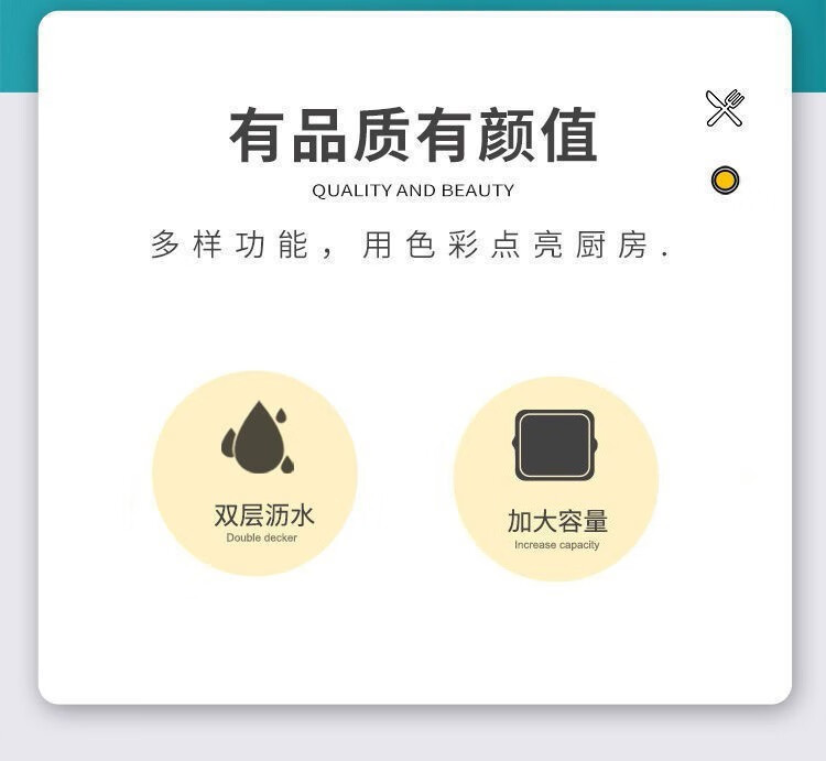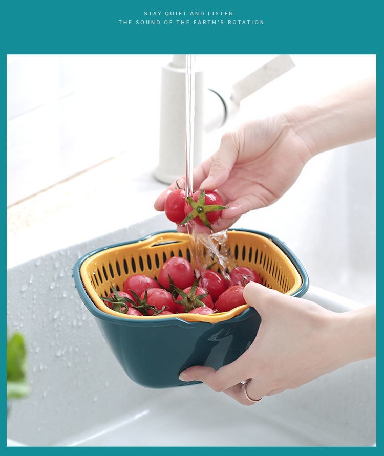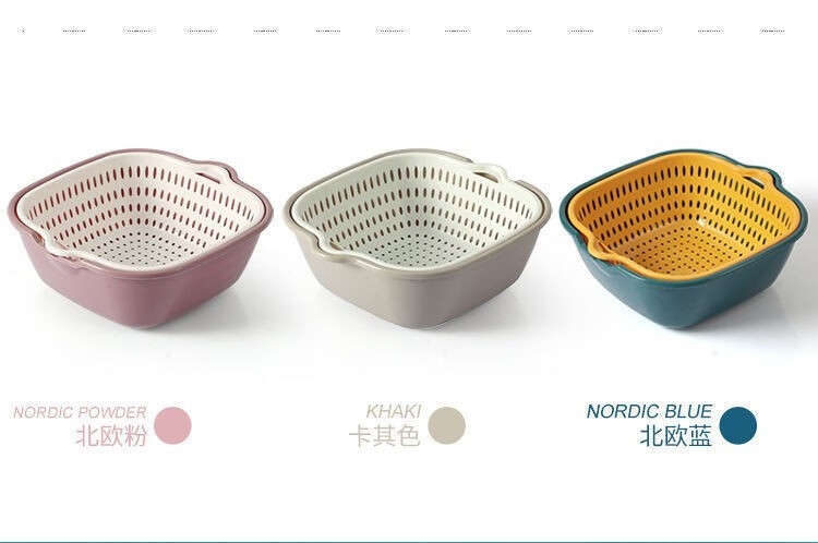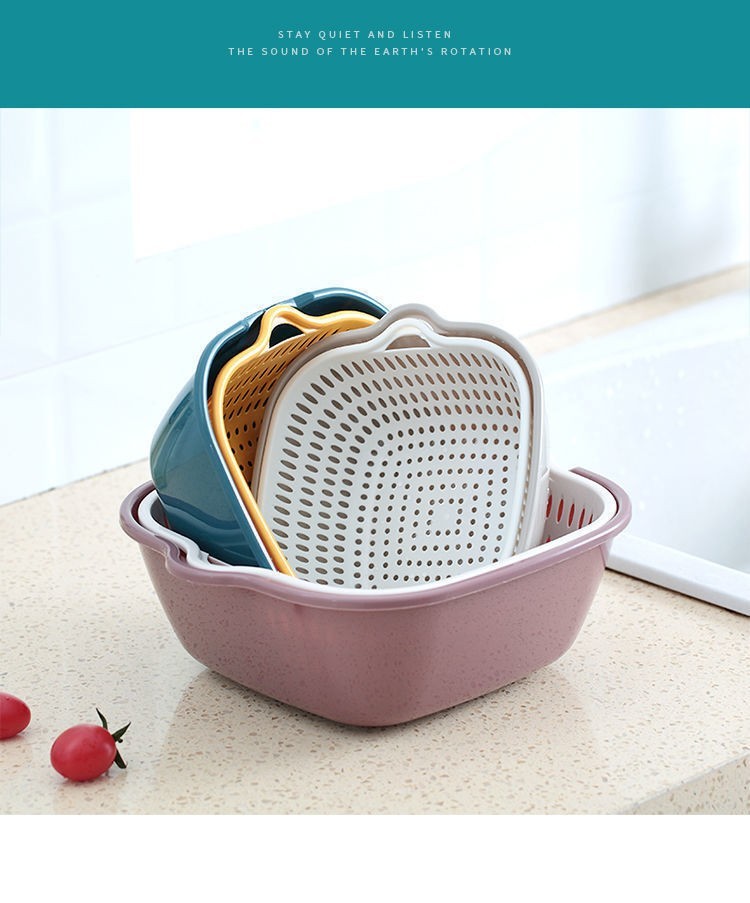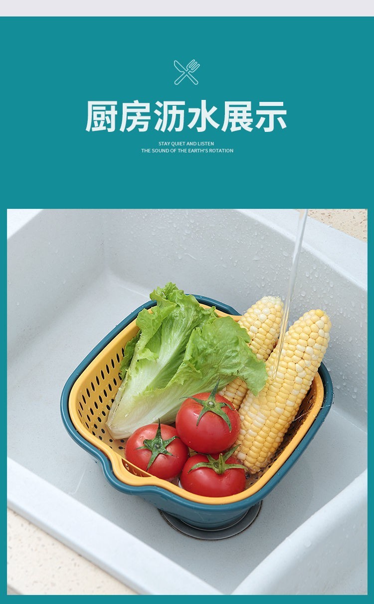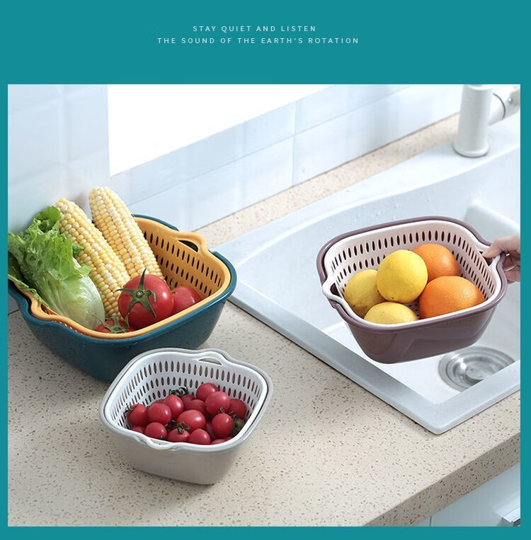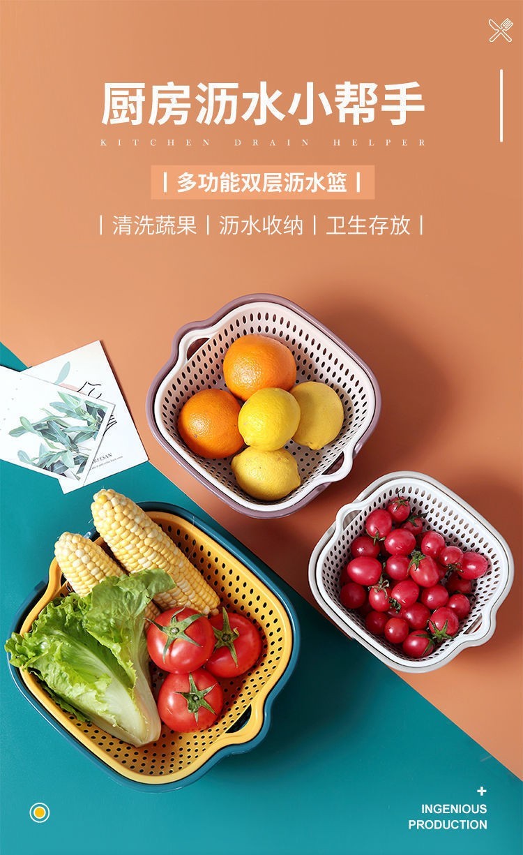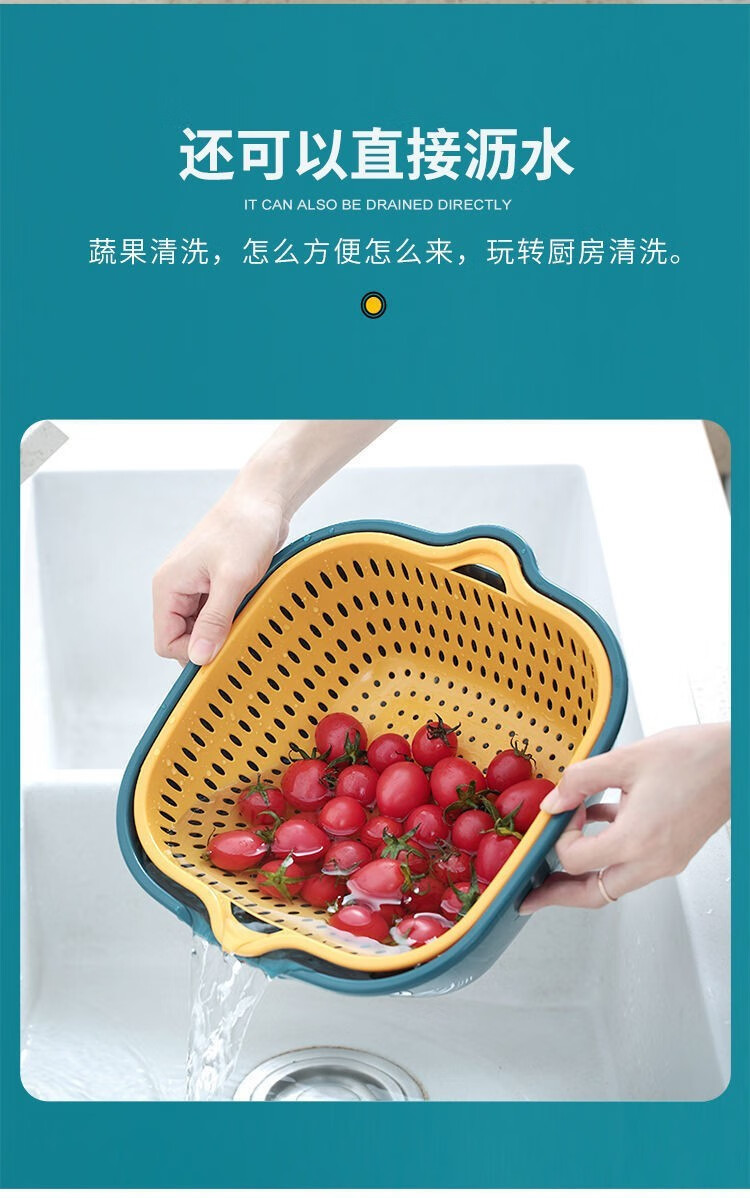 Chunshao kitchen vegetable basket drain basket double layer vegetable basin drain basket fruit and vegetable basket leaking basin 6-piece set extra large + large + medium blue and yellow two colors