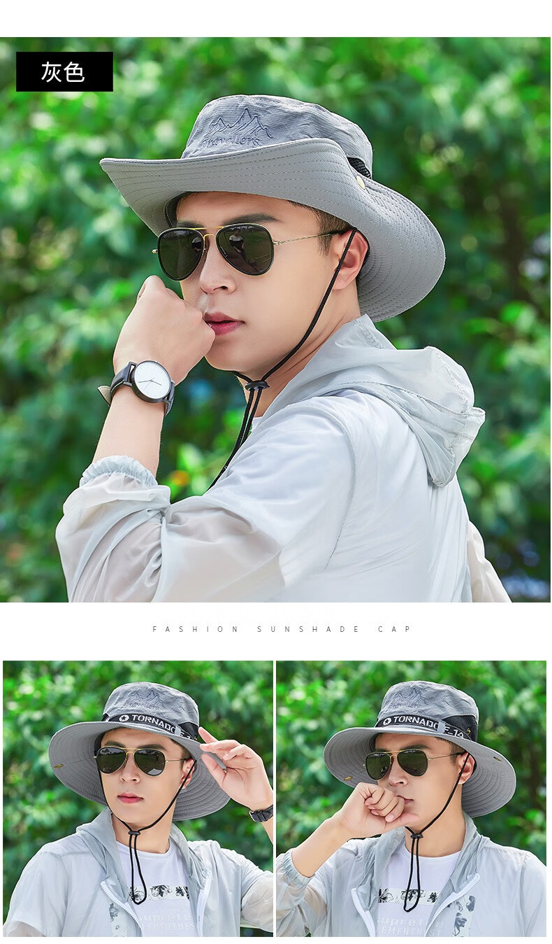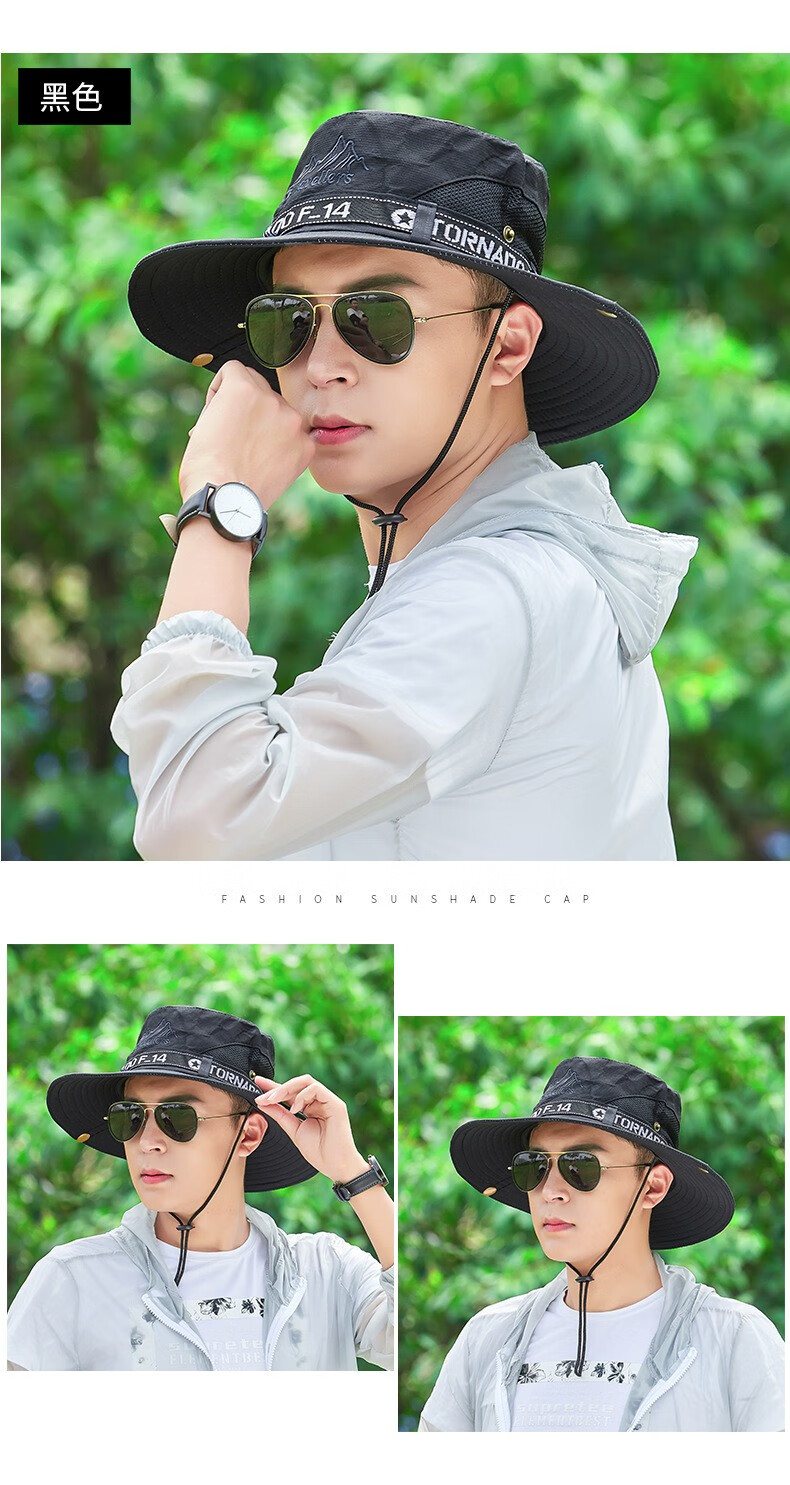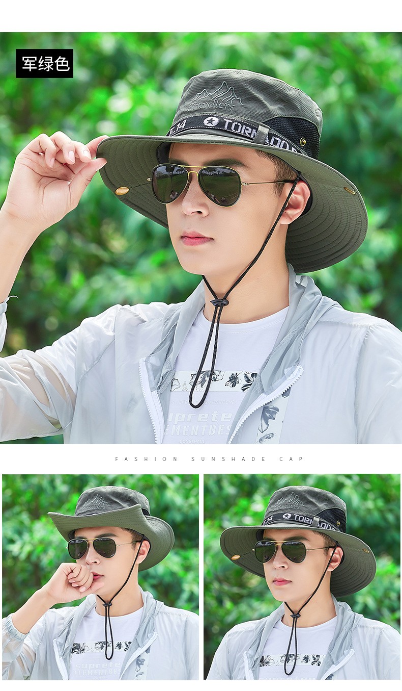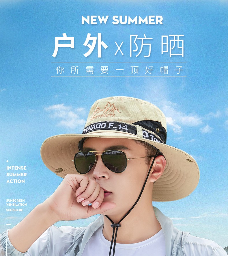 Shanta sun hat men's outdoor breathable large brim sun hat summer mountain climbing fisherman hat fishing hat sun hat khaki with random color sleeves