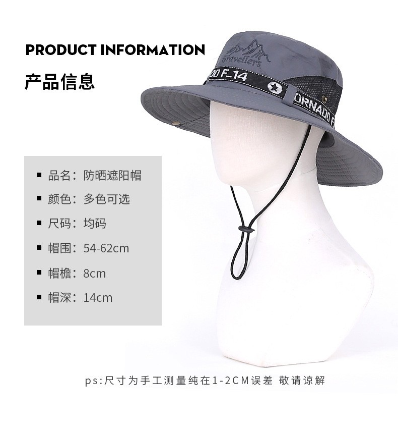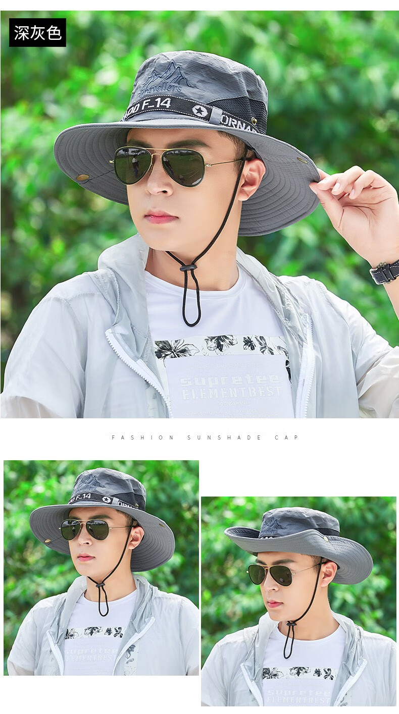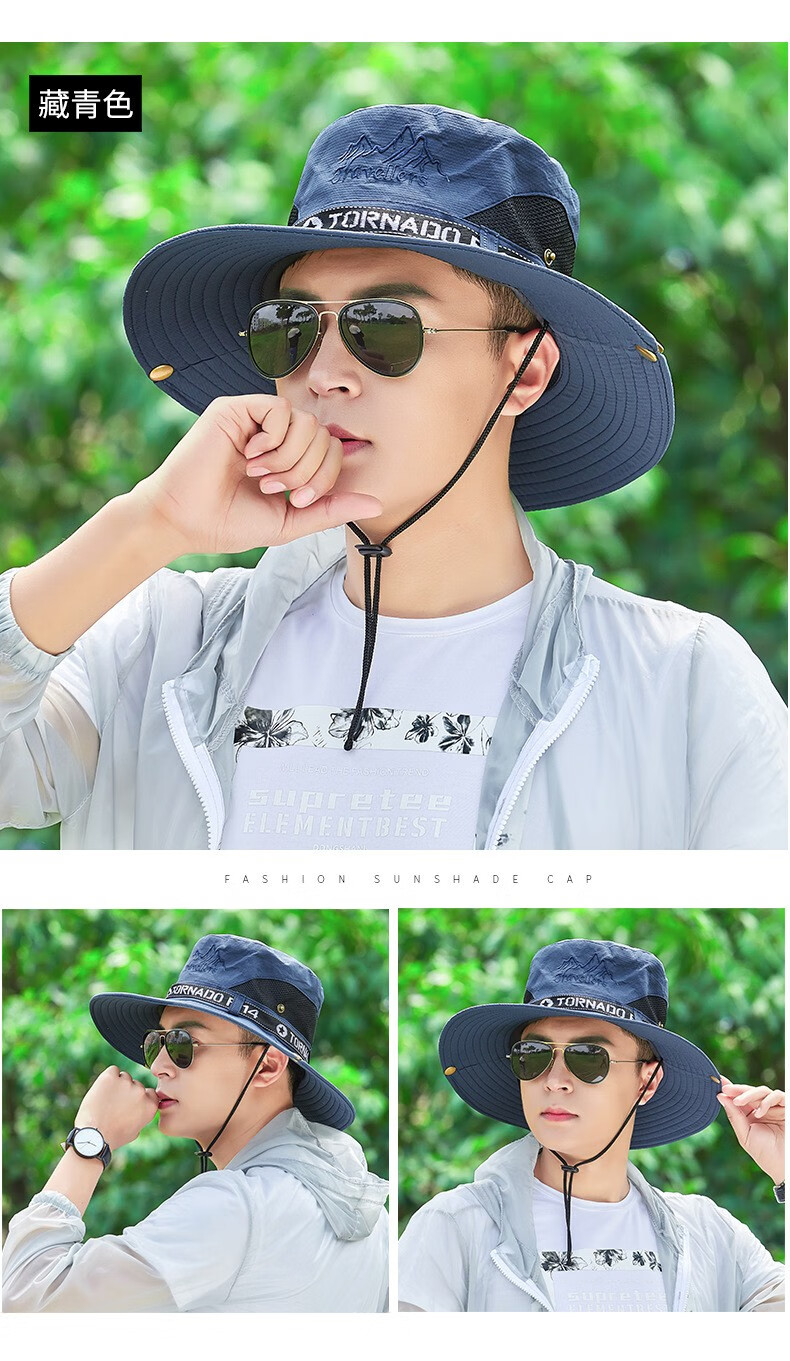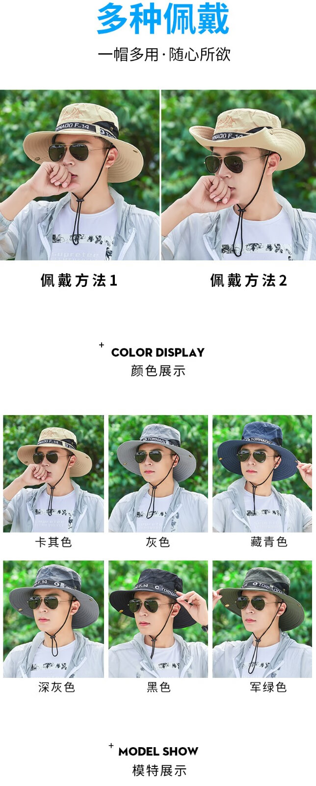 Shanta sun hat men's outdoor breathable large brim sun hat summer mountain climbing fisherman hat fishing hat sun hat khaki with random color sleeves