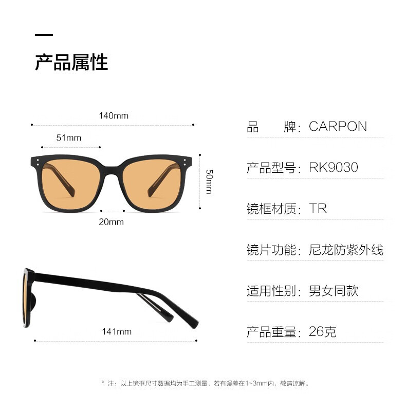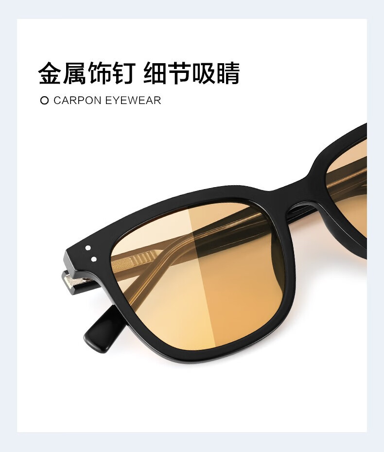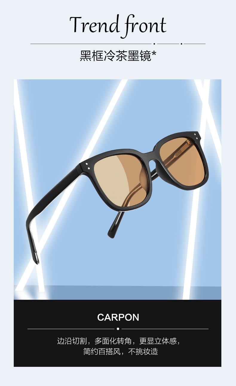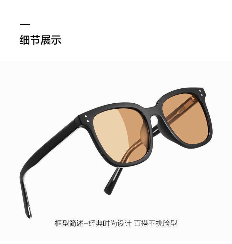 Caponi GM brown sunglasses for men and women, high-end sunglasses, anti-UV driving glasses, can be equipped with myopia photochromic lenses, black frame cold tea lenses - 0 degree high-definition nylon lenses
