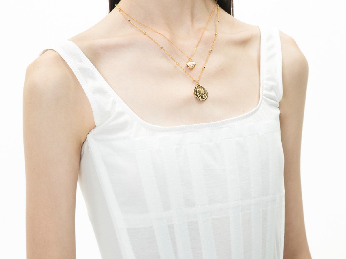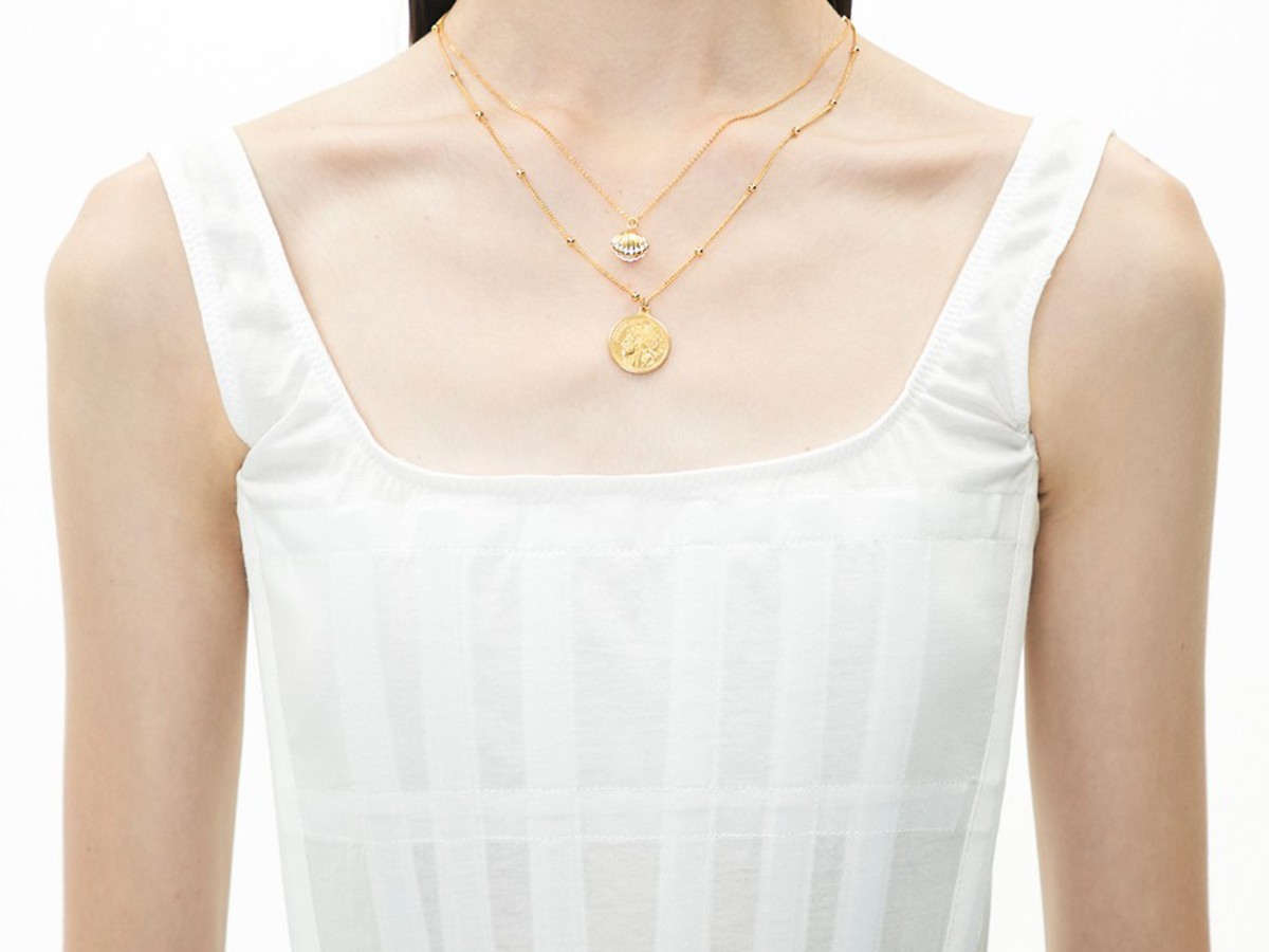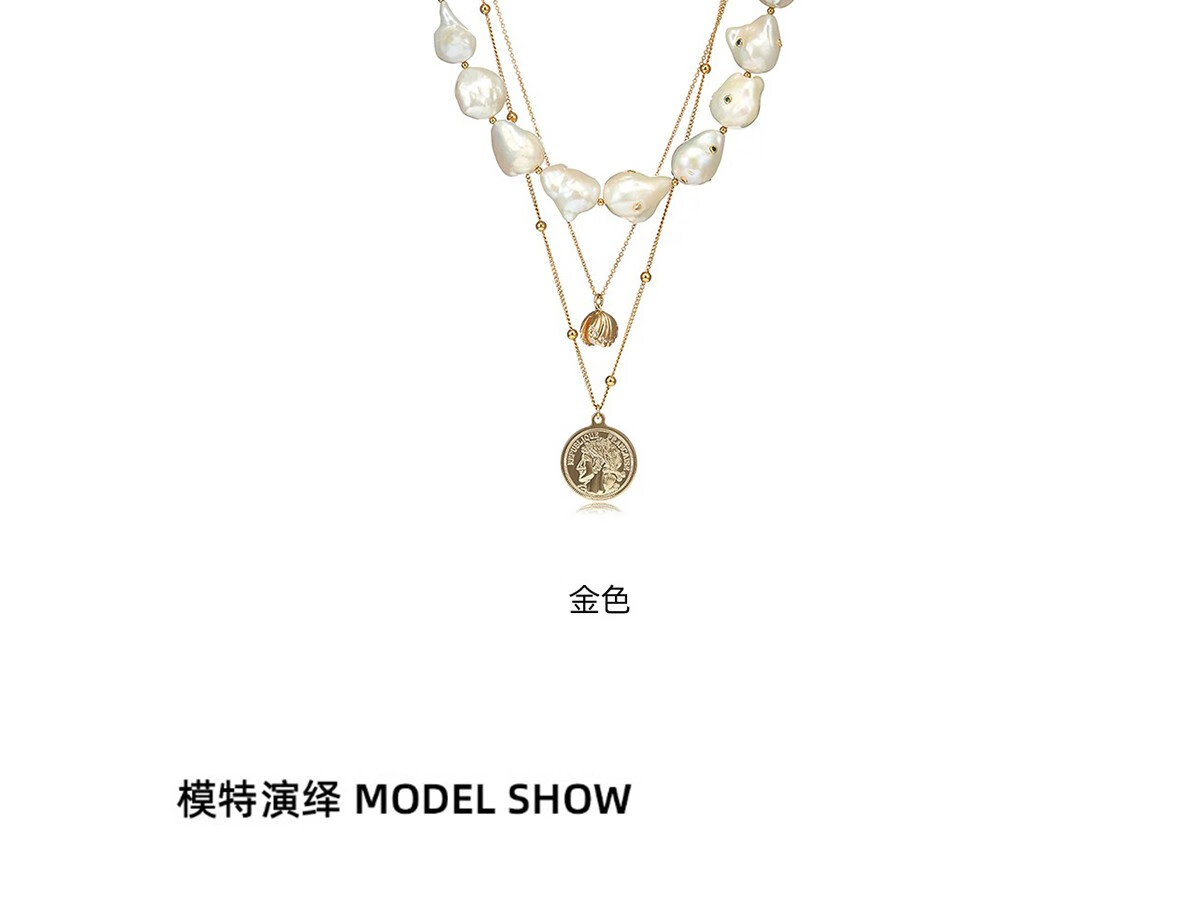 Lost in echo Chinese Valentine's Day gift Yang Zi's same original baroque pearl gold coin necklace set niche light luxury gift gold coin necklace
