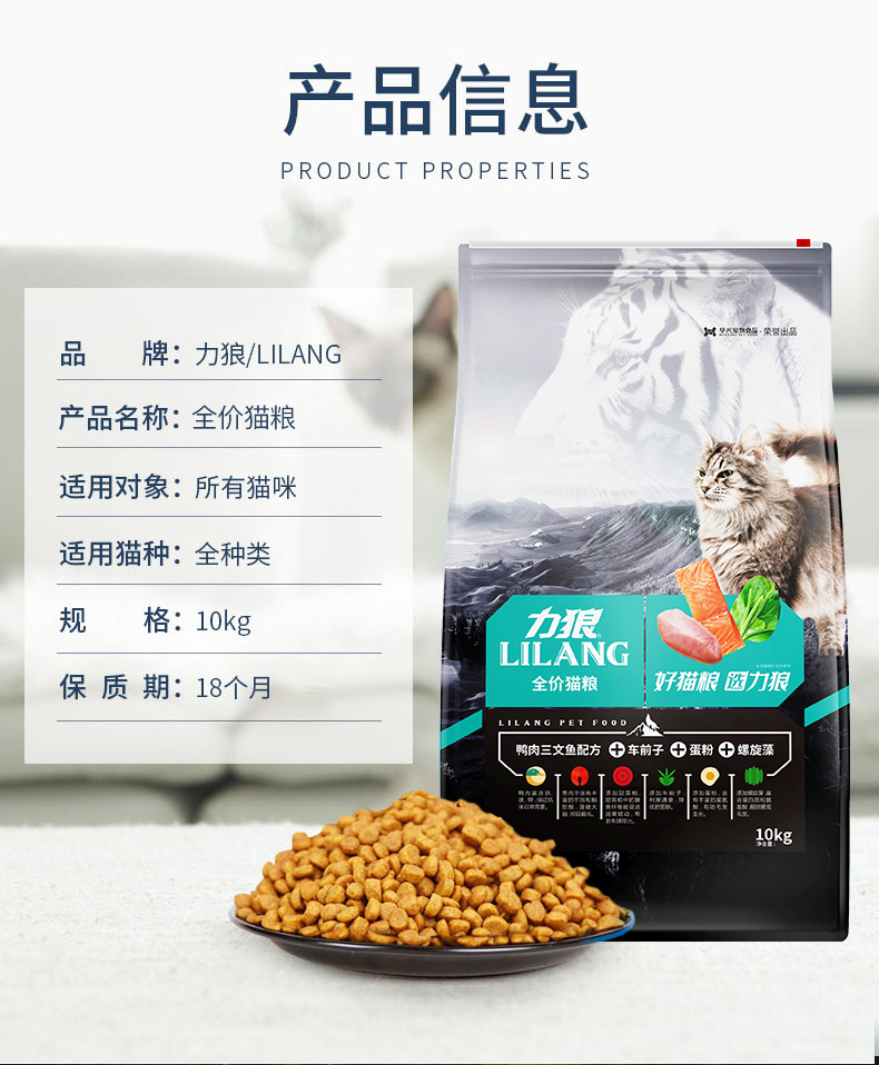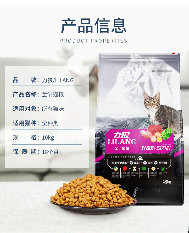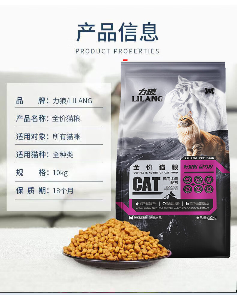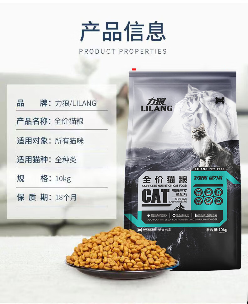 Корм для кошек Lilang 10 кг, корм для кошек по полной цене для всех возрастов и возрастов, 20 Джин Джин равен 0,5 кг смеси утки и говядины.