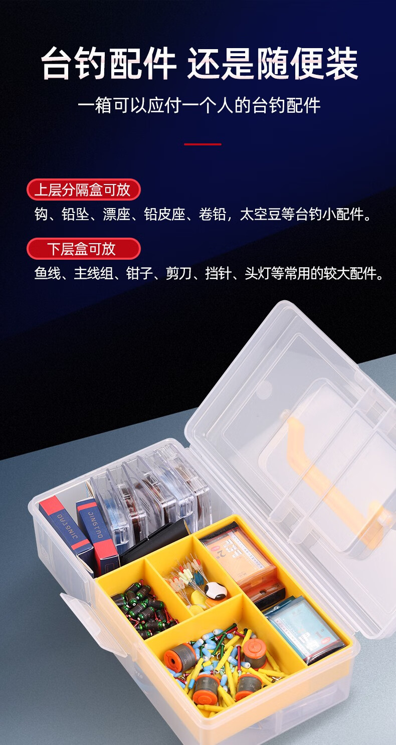 Tingpai Luya Double-layer Accessories Toolbox Fishing Gear Accessories Storage Box Portable Fishing Multi-Function Accessories Storage Tool Box Yellow Double-layer Accessories Suitcase