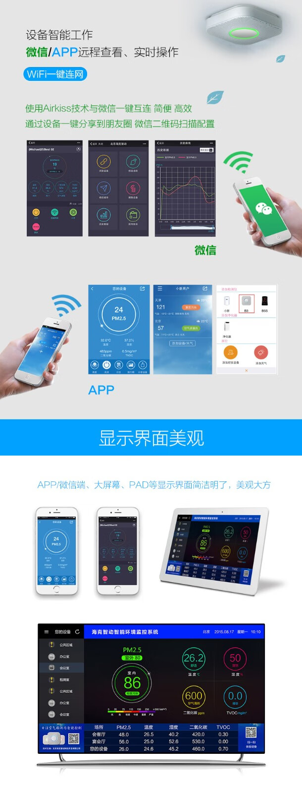 Haike Smart B3 Industrial Grade Air Quality Monitor PM2.5 TVOC Carbon Dioxide Temperature and Humidity WIFI TV Screen B3-L3 PM2.5 CO2 TVOC Temperature and Humidity
