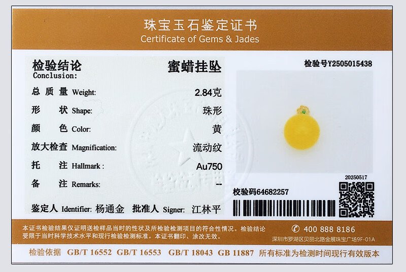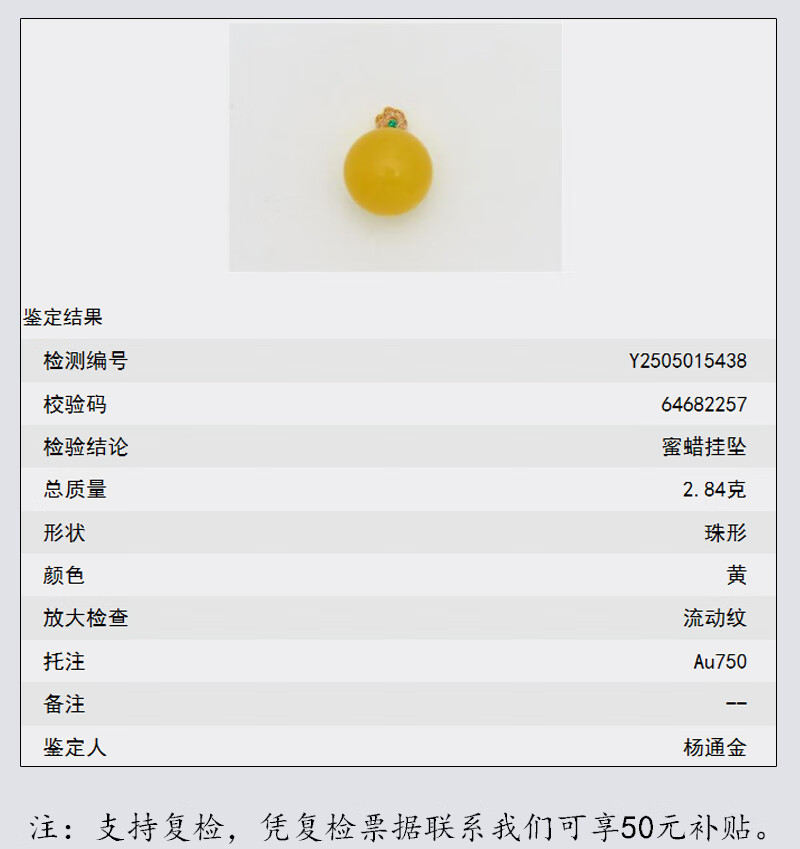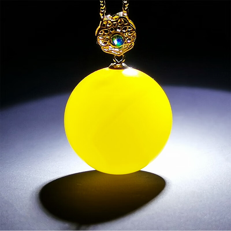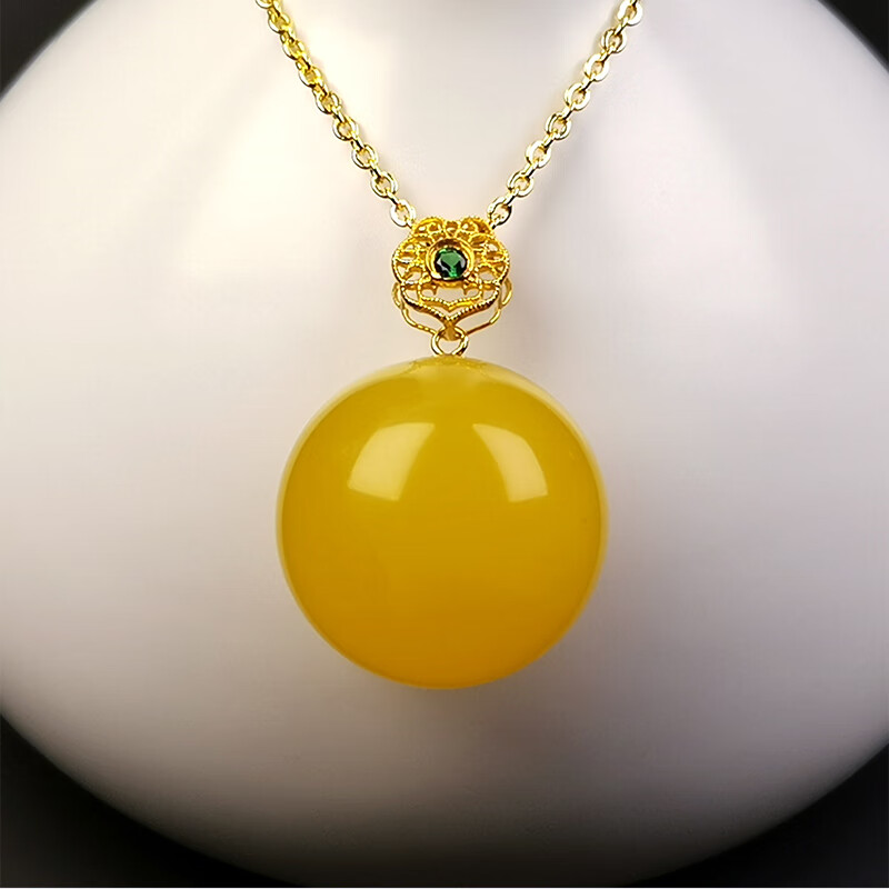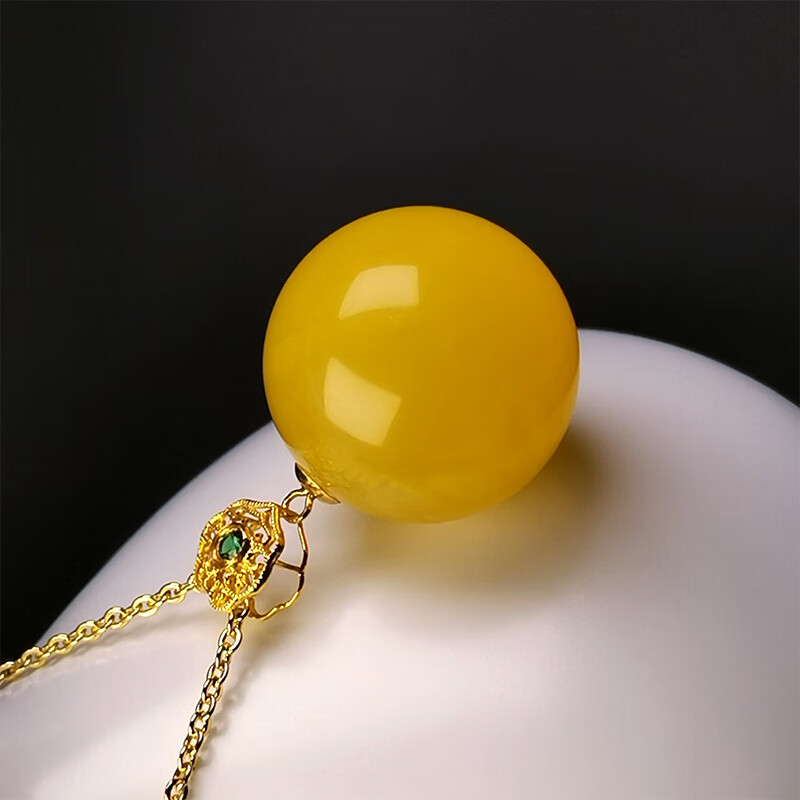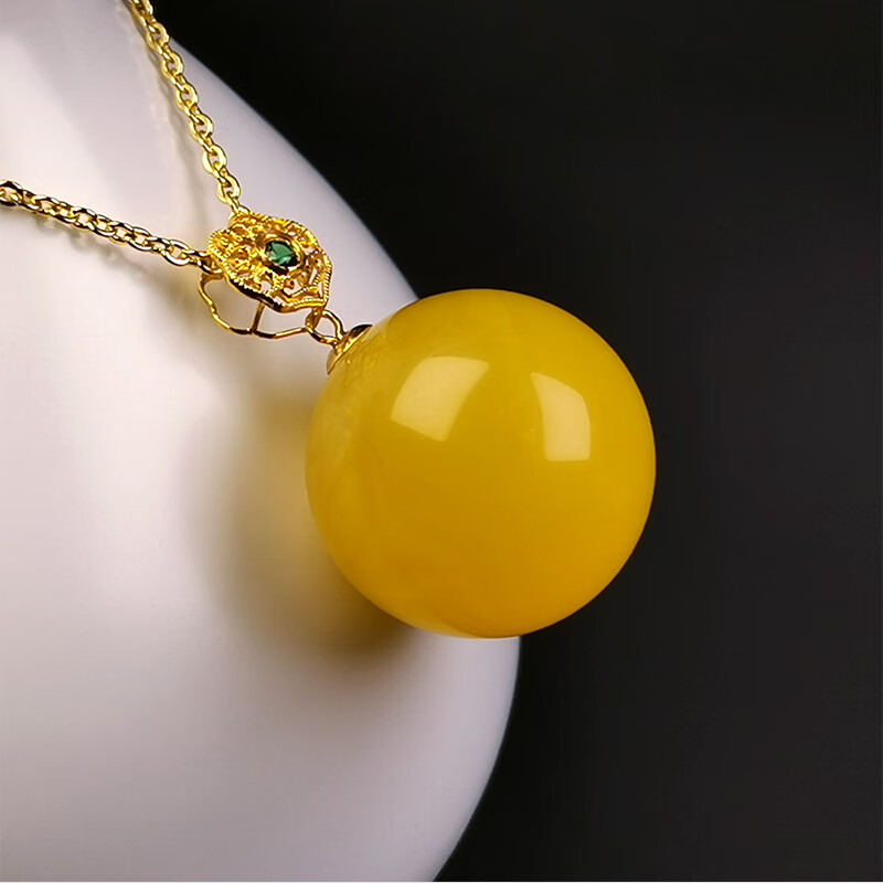 Amber School, one thing, one picture, one certificate, beeswax single bead, women's 925 silver gold-plated natural amber clavicle chain necklace, pendant, 2.84 grams, including chain diameter 16.6 mm