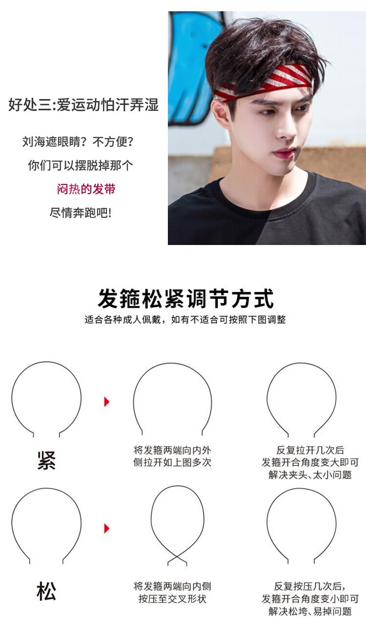 QUEENS JEWELRY men's hair hoops, trendy men's outing invisible sports headbands, boys' back hair, face wash hairpins, versatile Internet celebrity hair bundles 1# thickened wavy hair hoops