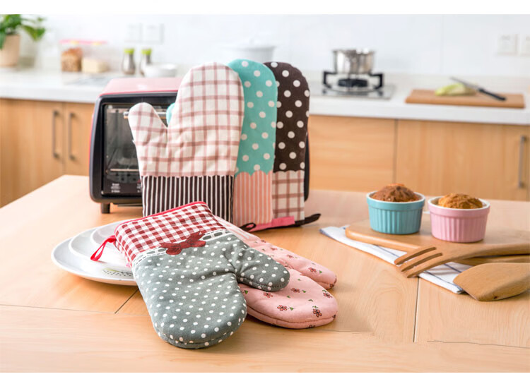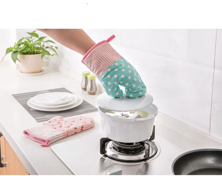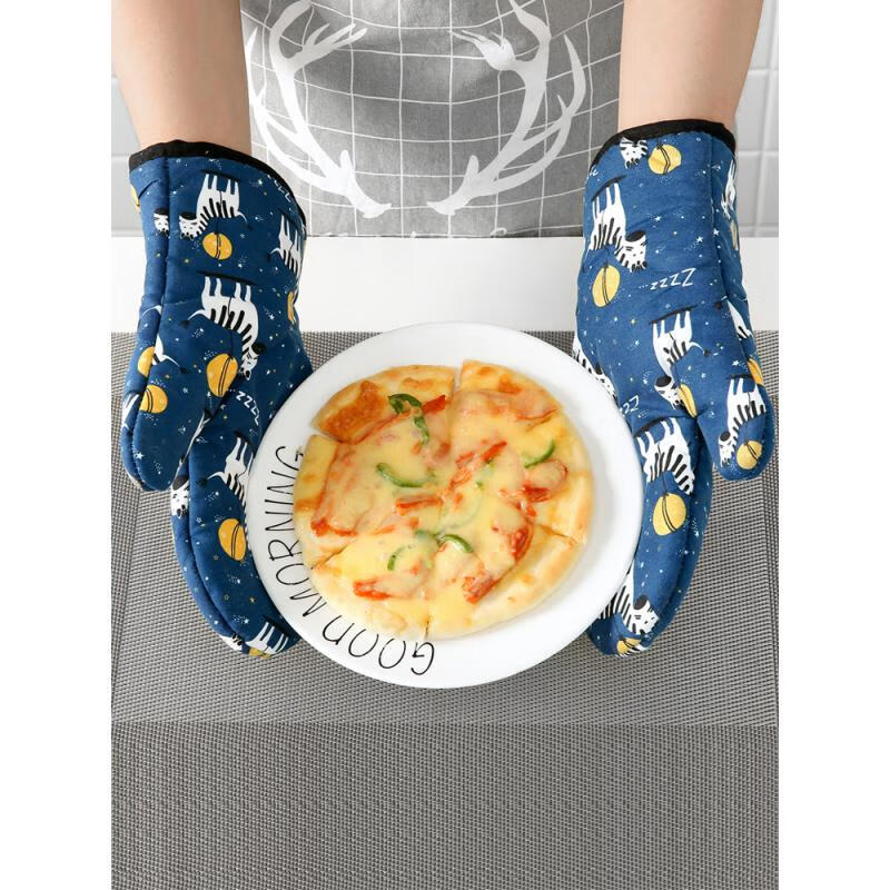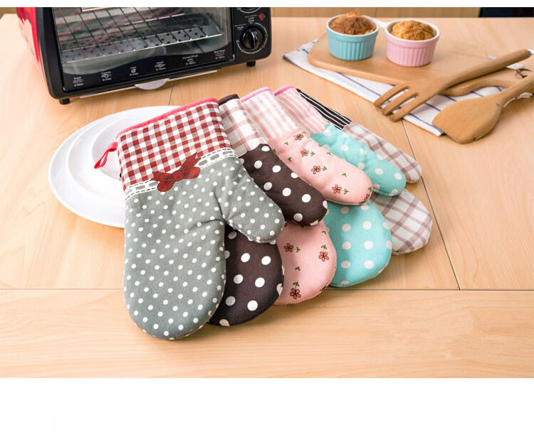 Feizhichu Thickened Anti-scalding Gloves Insulated Oven Gloves Microwave Oven Kitchen Baking Heat-Resistant High Temperature Household Gloves Bow Tie Gloves 2 Pack