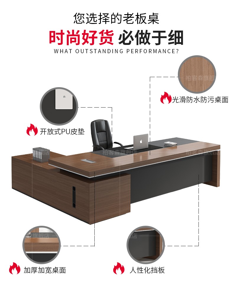 Boxen Boss Desk Simple Modern Executive Desk Single President Desk Manager Desk Manager Desk Supervisor Desk and Chair Combination 2.0 Meter Boss Desk (with Vice Cabinet)