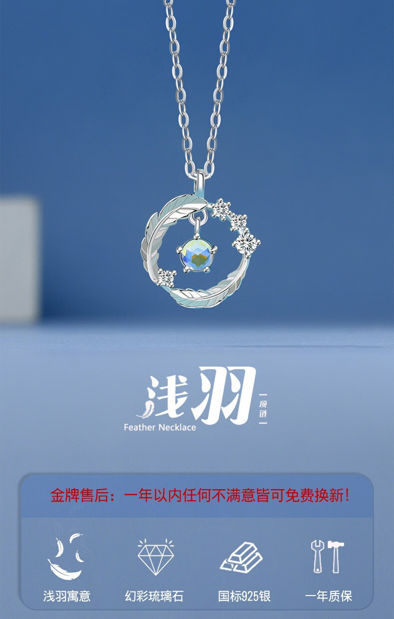 Farcoko Yu You Accompanying Necklace Women's Fashion Accessories Glazed Stone Pendant Clavicle Chain Heartfelt Birthday Gift for Girlfriend Glazed Stone Engraved Greeting Card Take this option