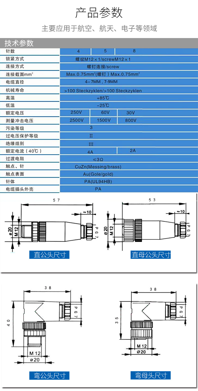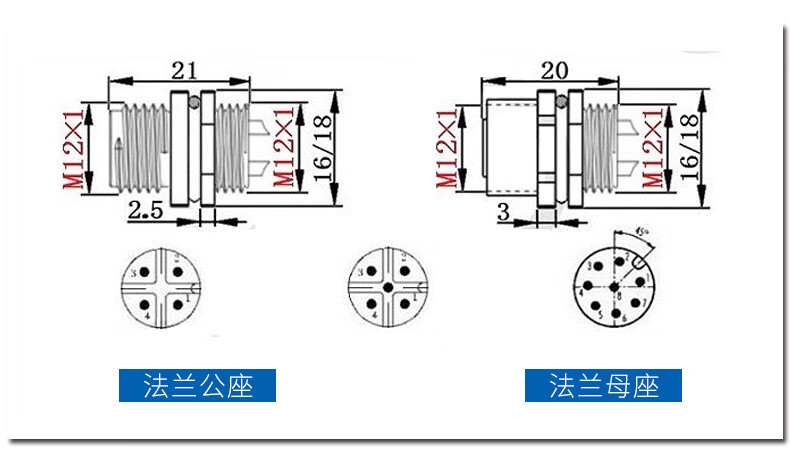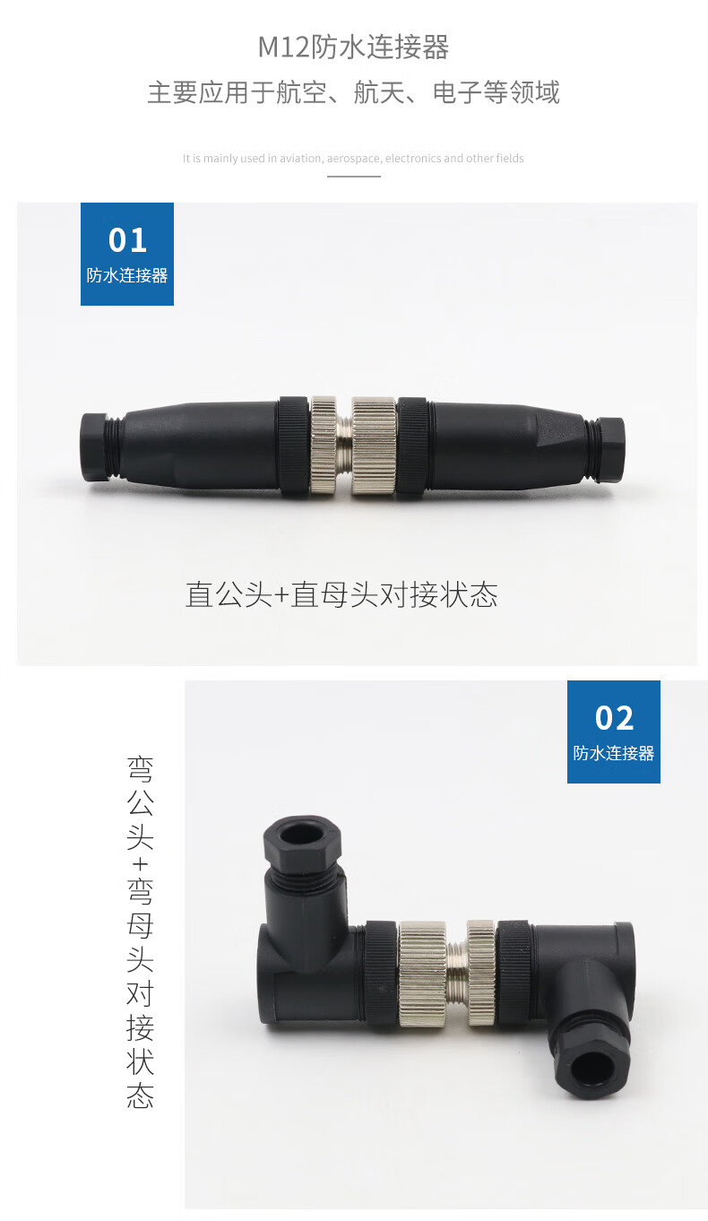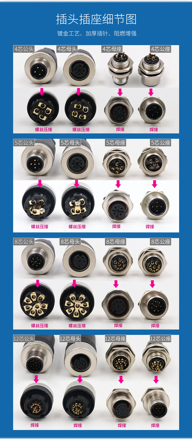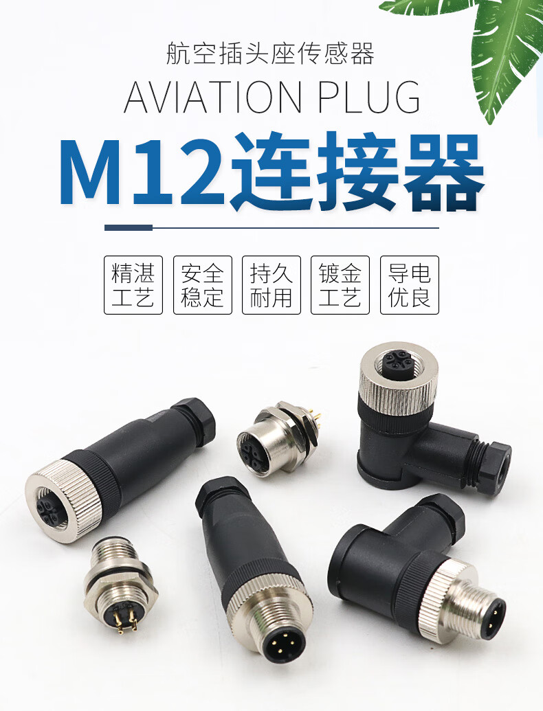 Aviation plug M12 waterproof connector 4-pin 5-hole 8 12-core plug-in socket sensor connector connector PG7 M12-4 core straight male connector