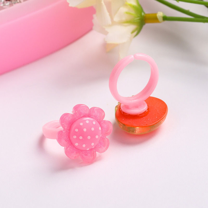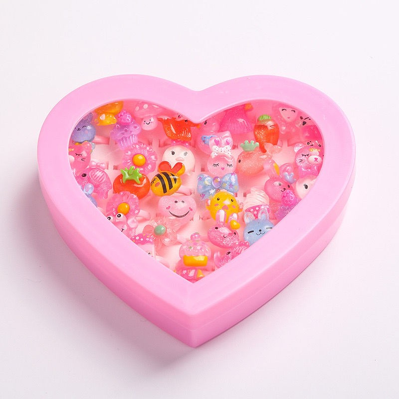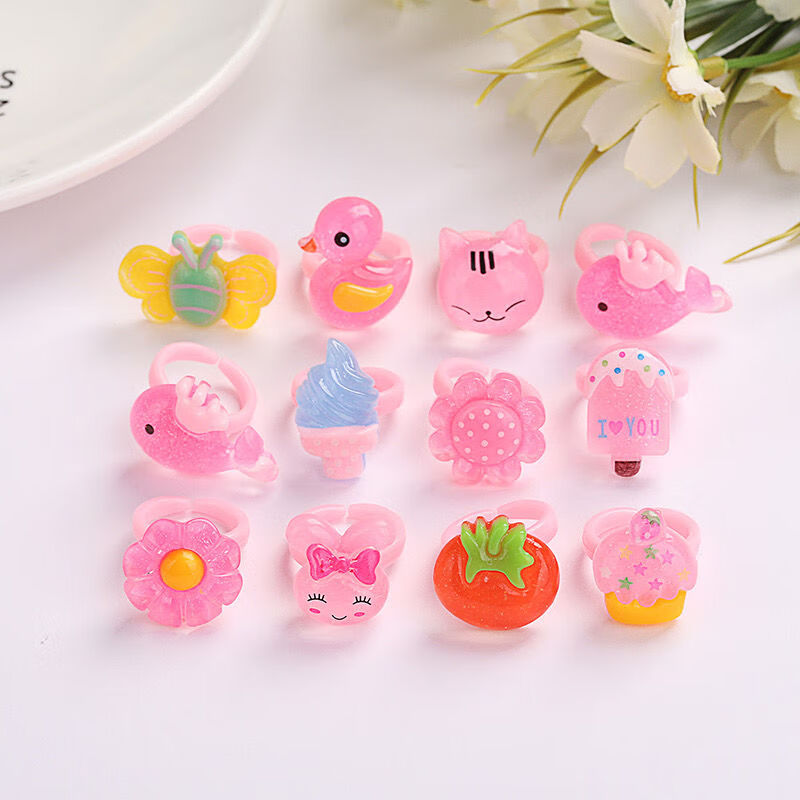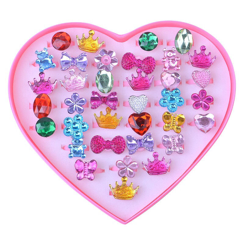 Qumeisi new children's ring ring cartoon girl princess jewelry imitation crystal gemstone girls jewelry gemstone style 36 mix and match box