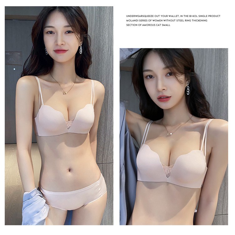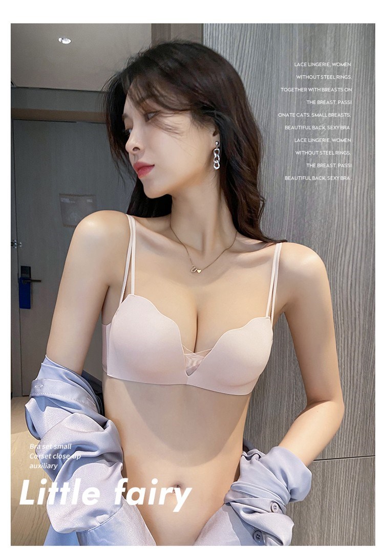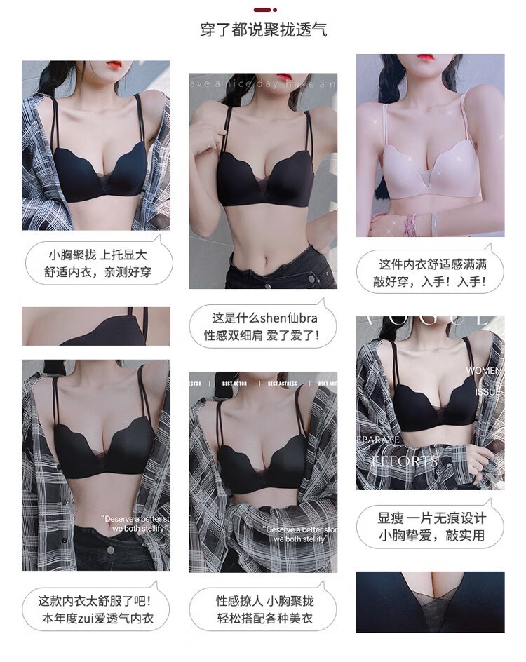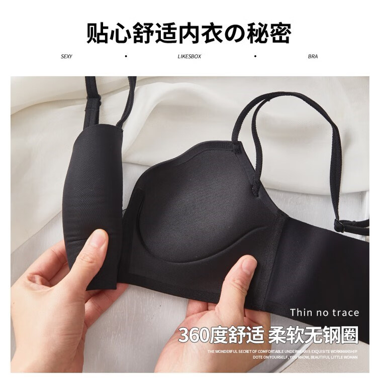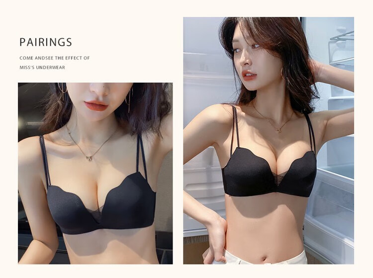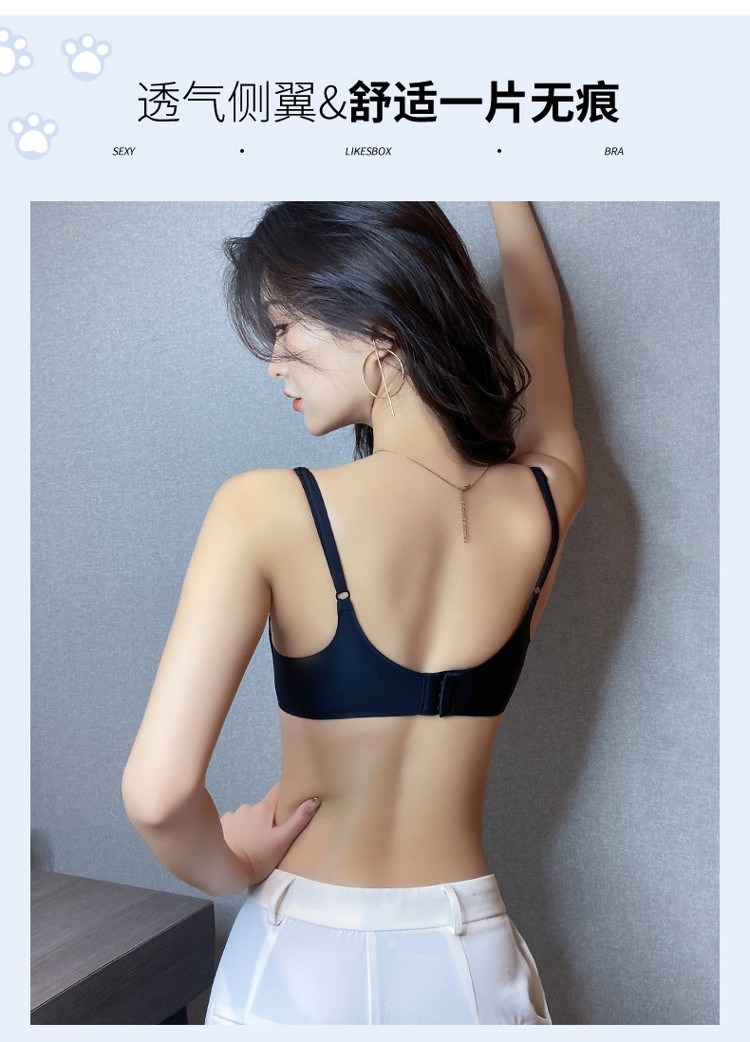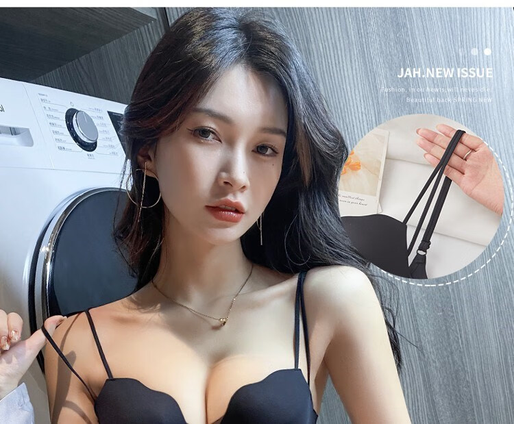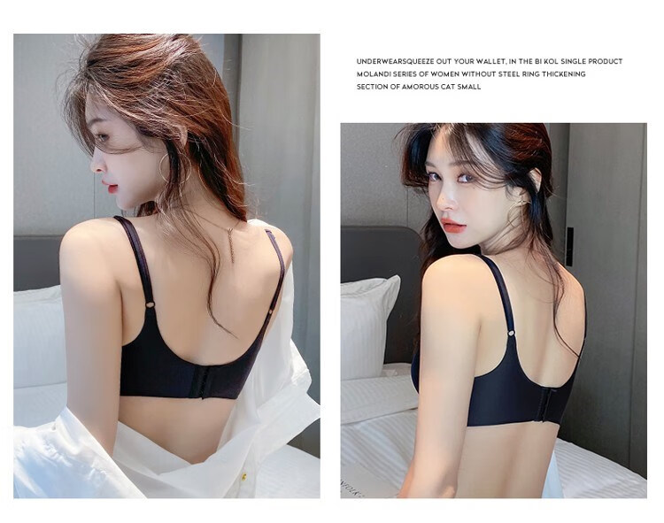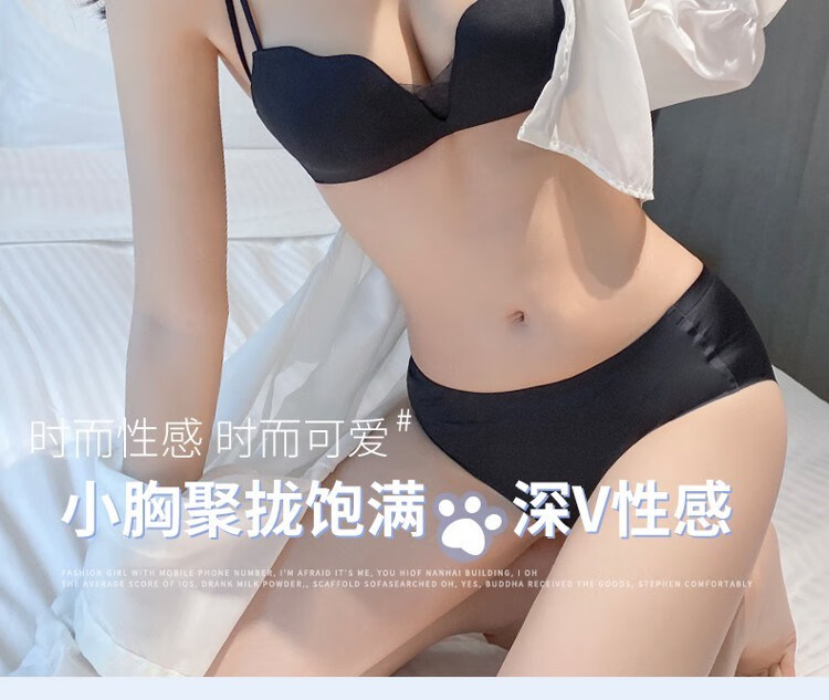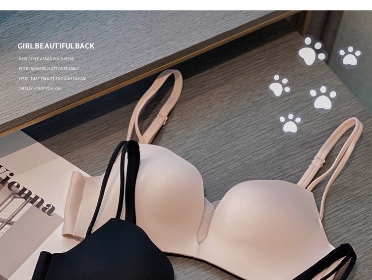 Victoria's elegant new beautiful backless bra for women with small breasts and push-up black sexy wire-free bra set with spaghetti straps black suit 75B =34B comfortable push-up