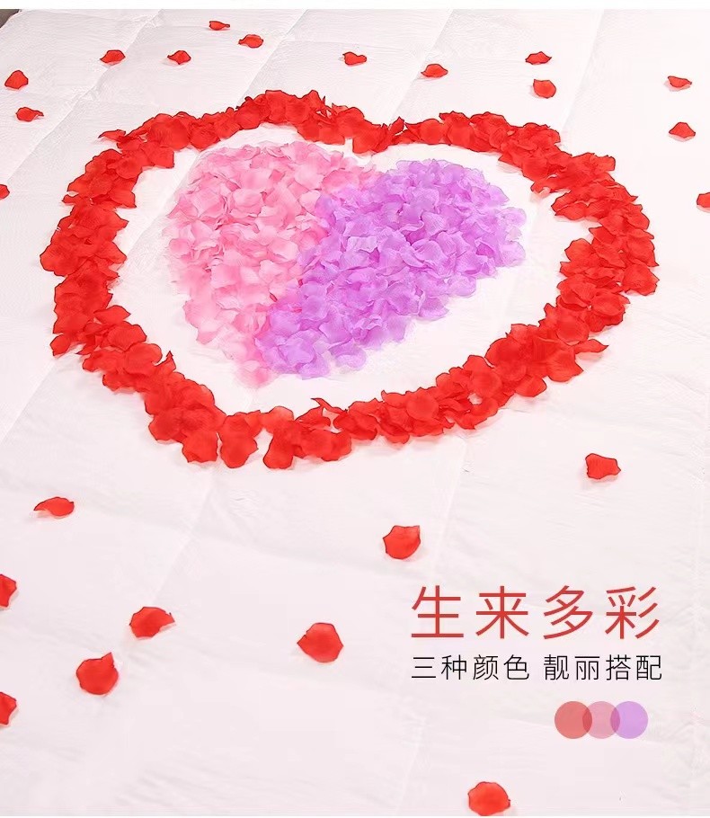 Toddler Maibao 1000 pieces of simulated rose petals, hand sprinkled flowers, romantic birthday bed, wedding, wedding room decoration, full pink simulated petals, 1000 pieces