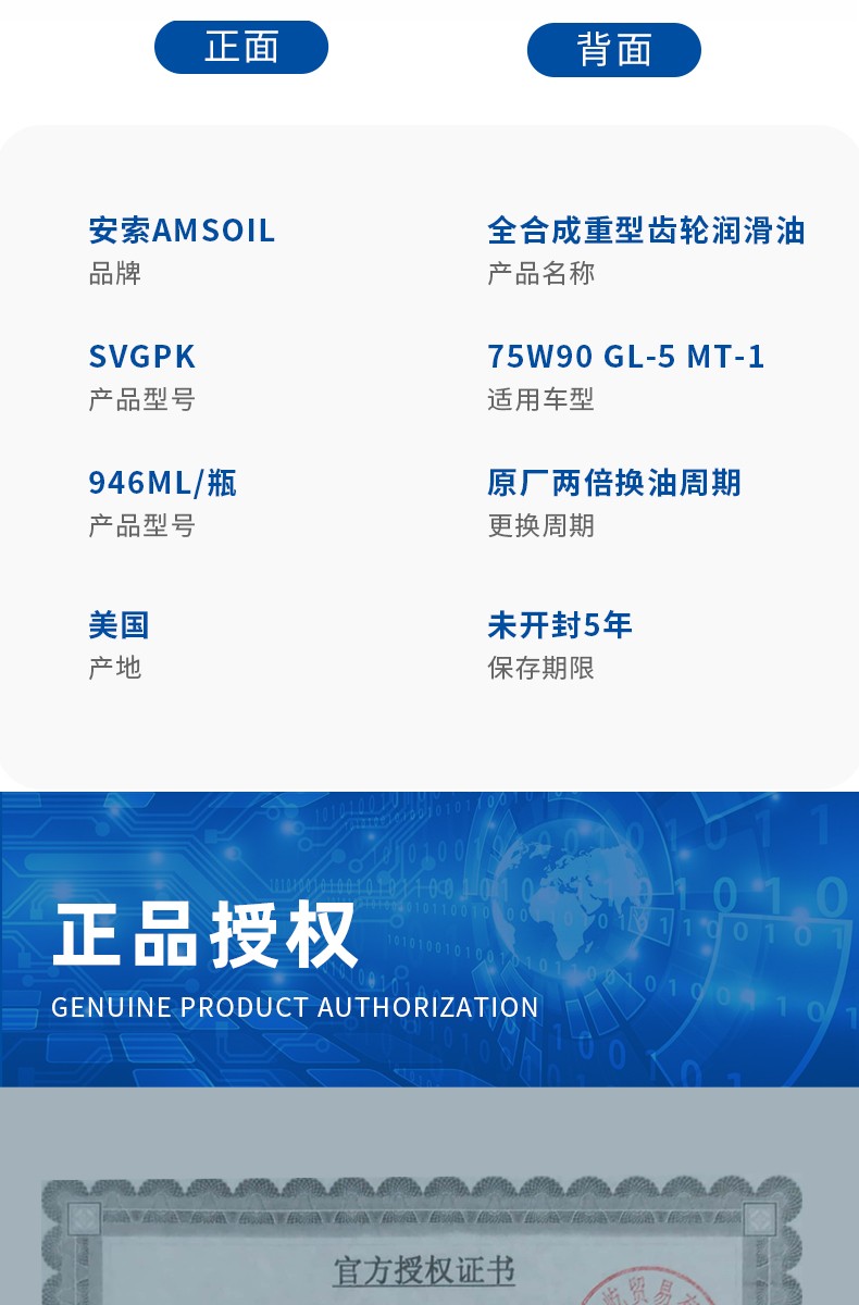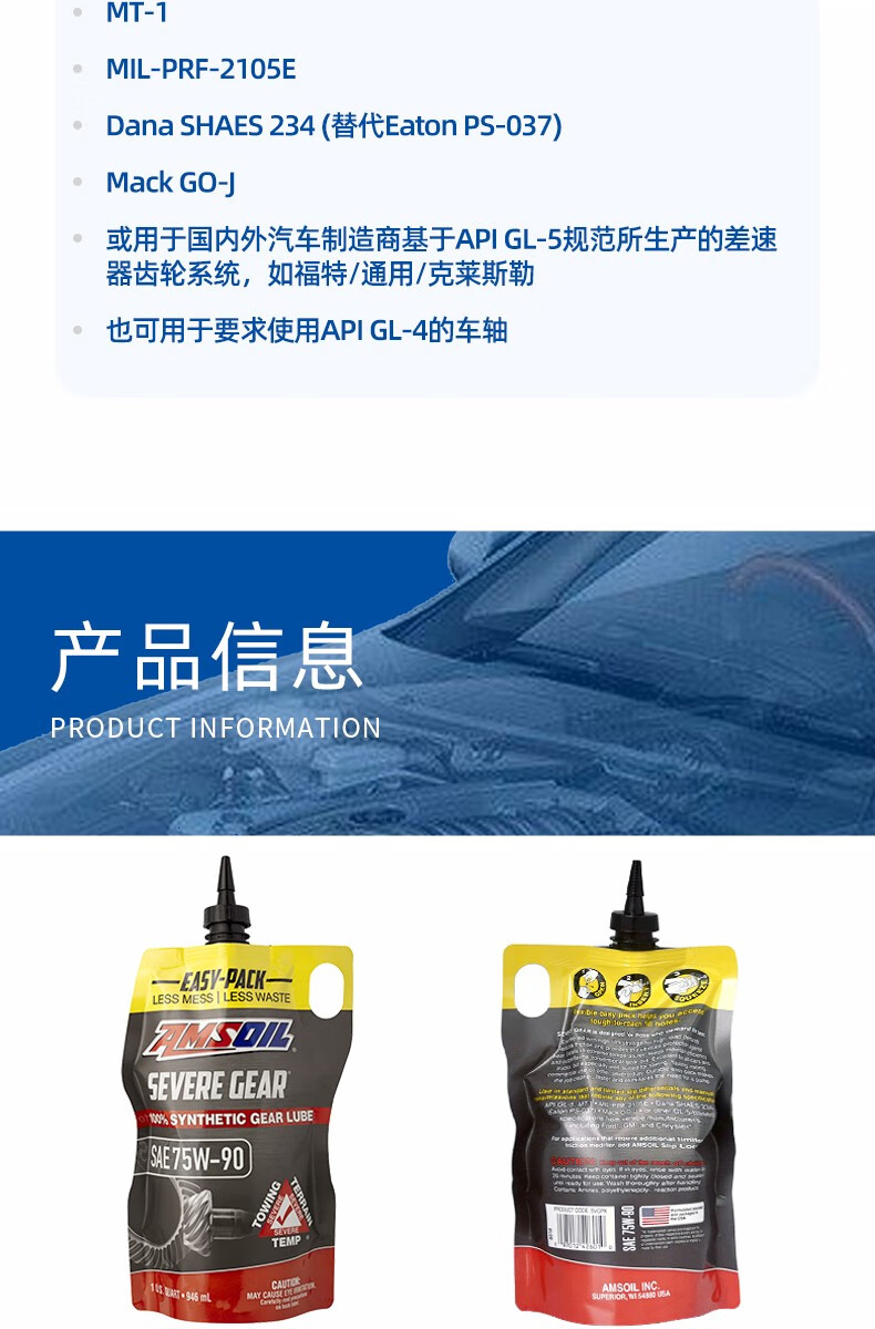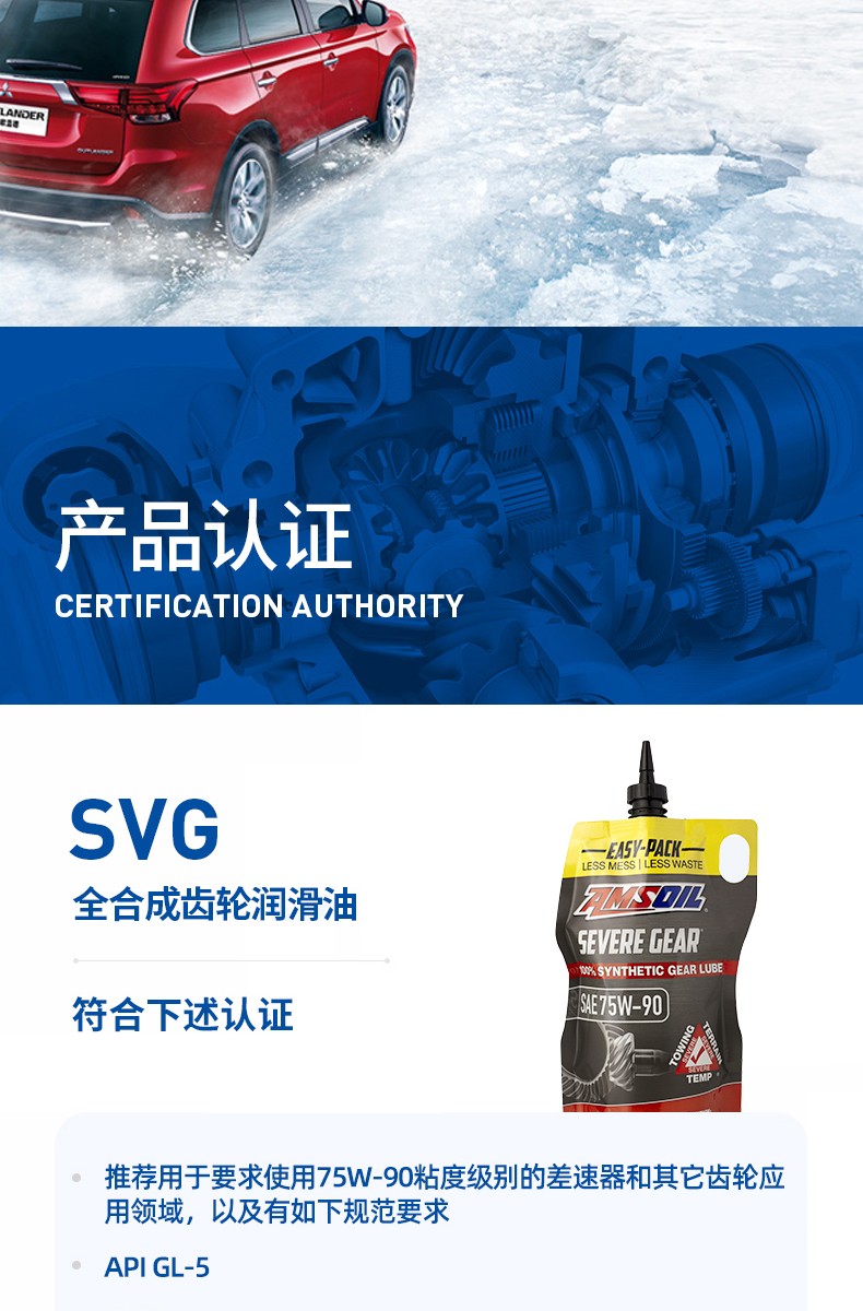 AMSOIL fully synthetic GL-5 rear axle oil SVG limited slip differential oil 75W90 front and rear axle gear oil 946ml compatible with LSD 75W-90