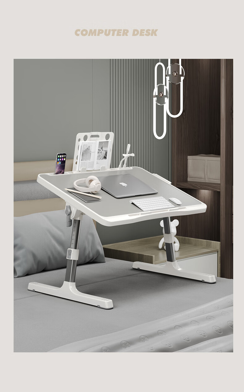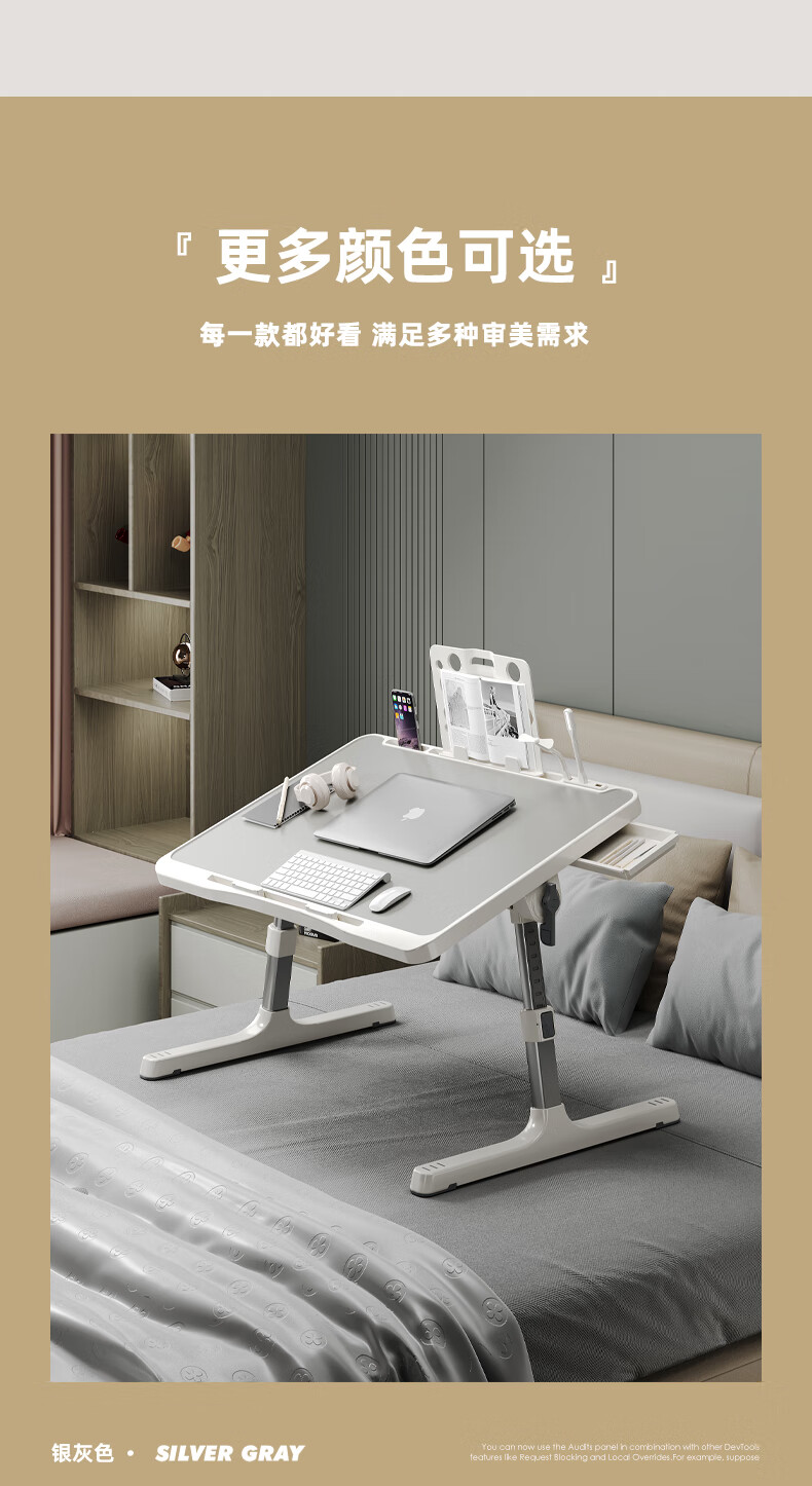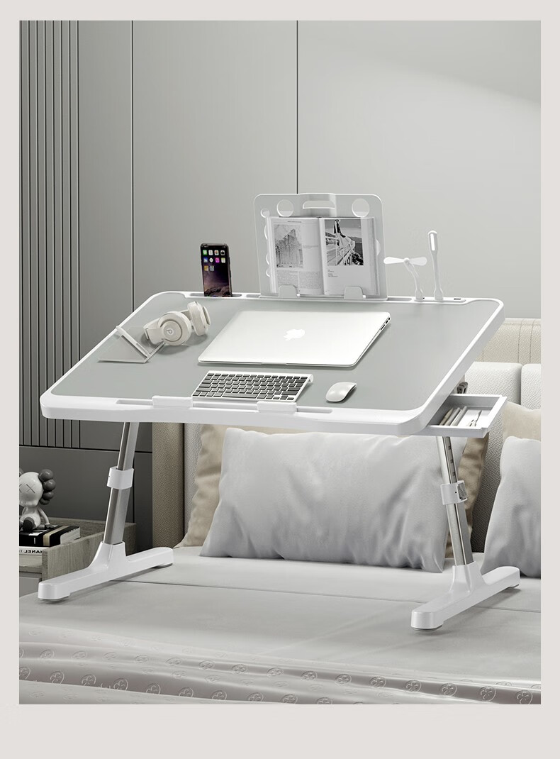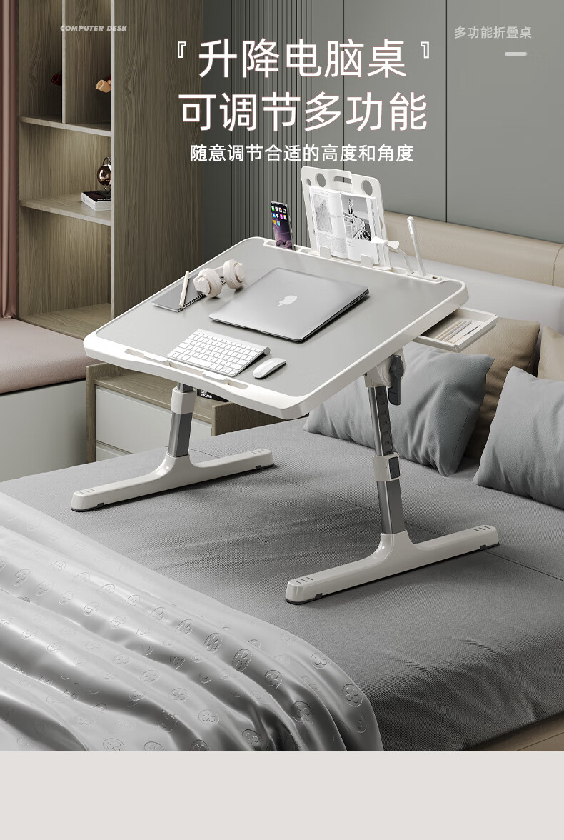 Dayijia bed computer table desk foldable small table laptop stand lazy person can lift dormitory student bay window table silver gray regular style + card slot + anti-slip tray