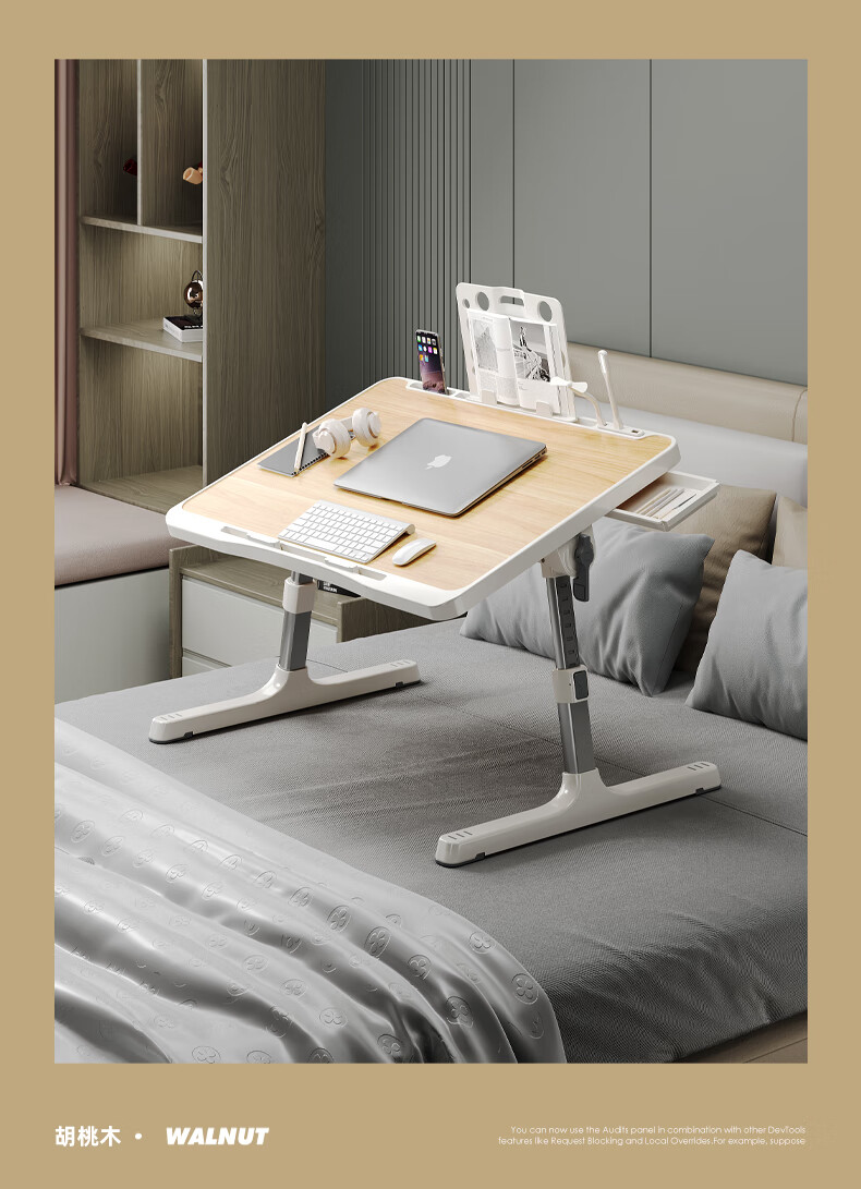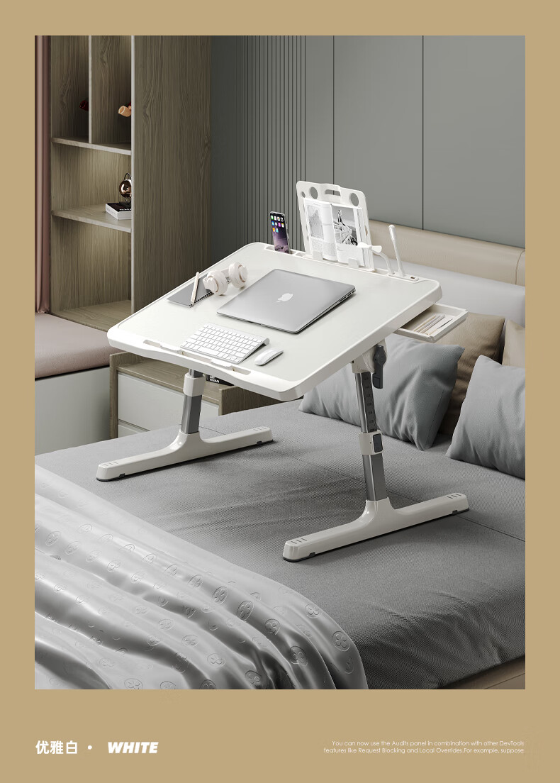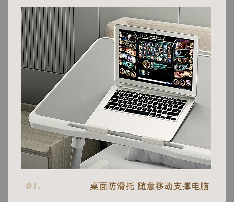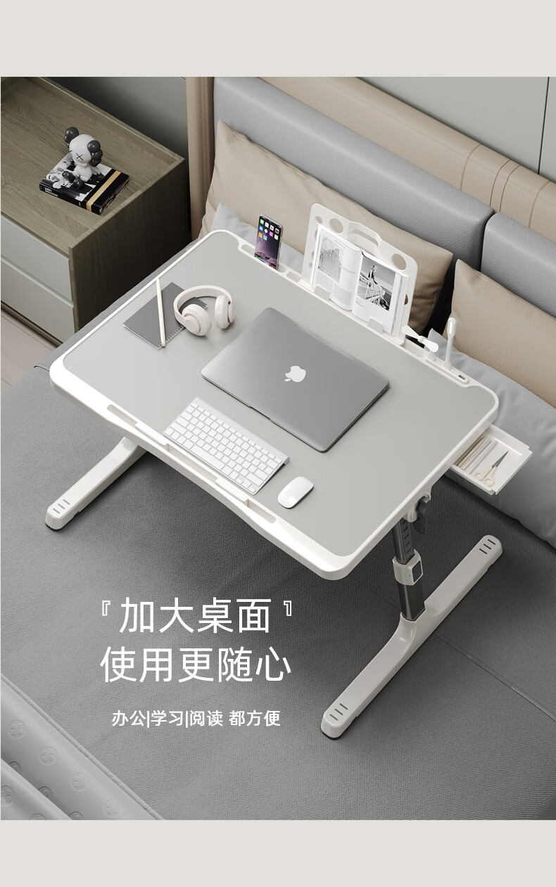 Dayijia bed computer table desk foldable small table laptop stand lazy person can lift dormitory student bay window table silver gray regular style + card slot + anti-slip tray
