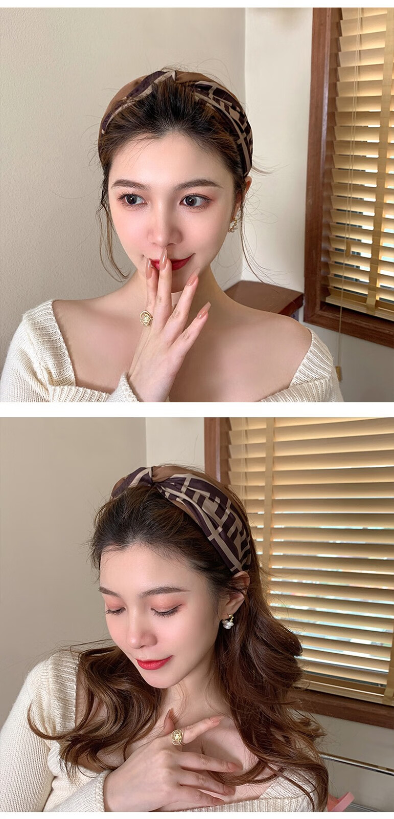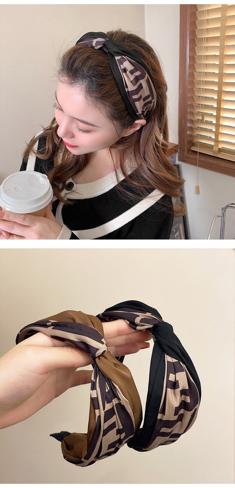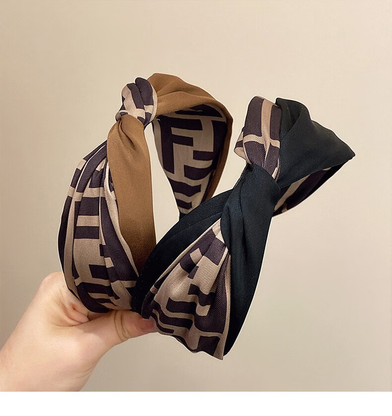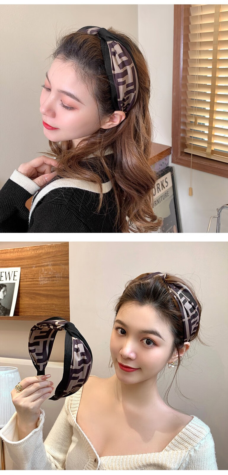 Camaron hairband for women to go out with versatile temperament hairpin headband fashionable retro wide-brimmed hair headband Chinese Valentine's Day gift letter F (black)