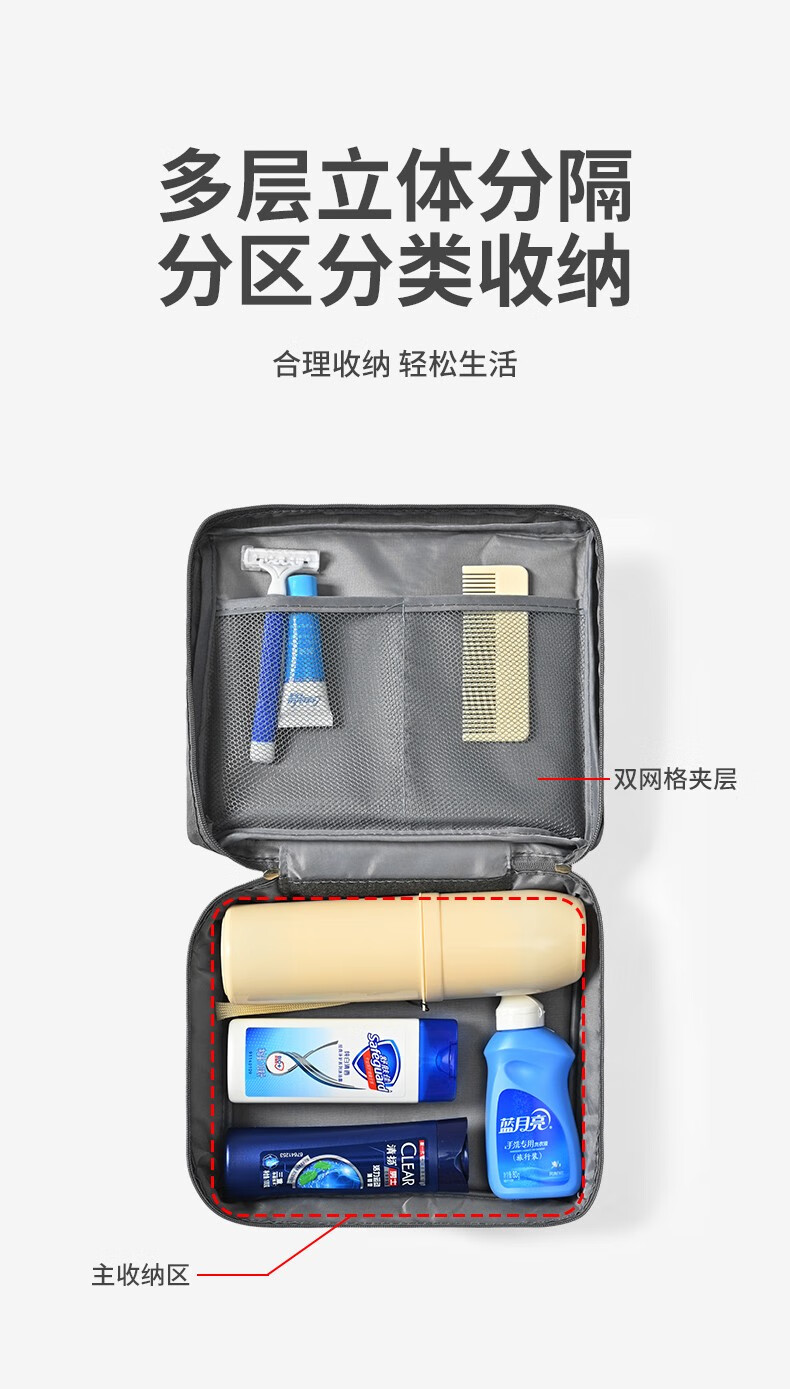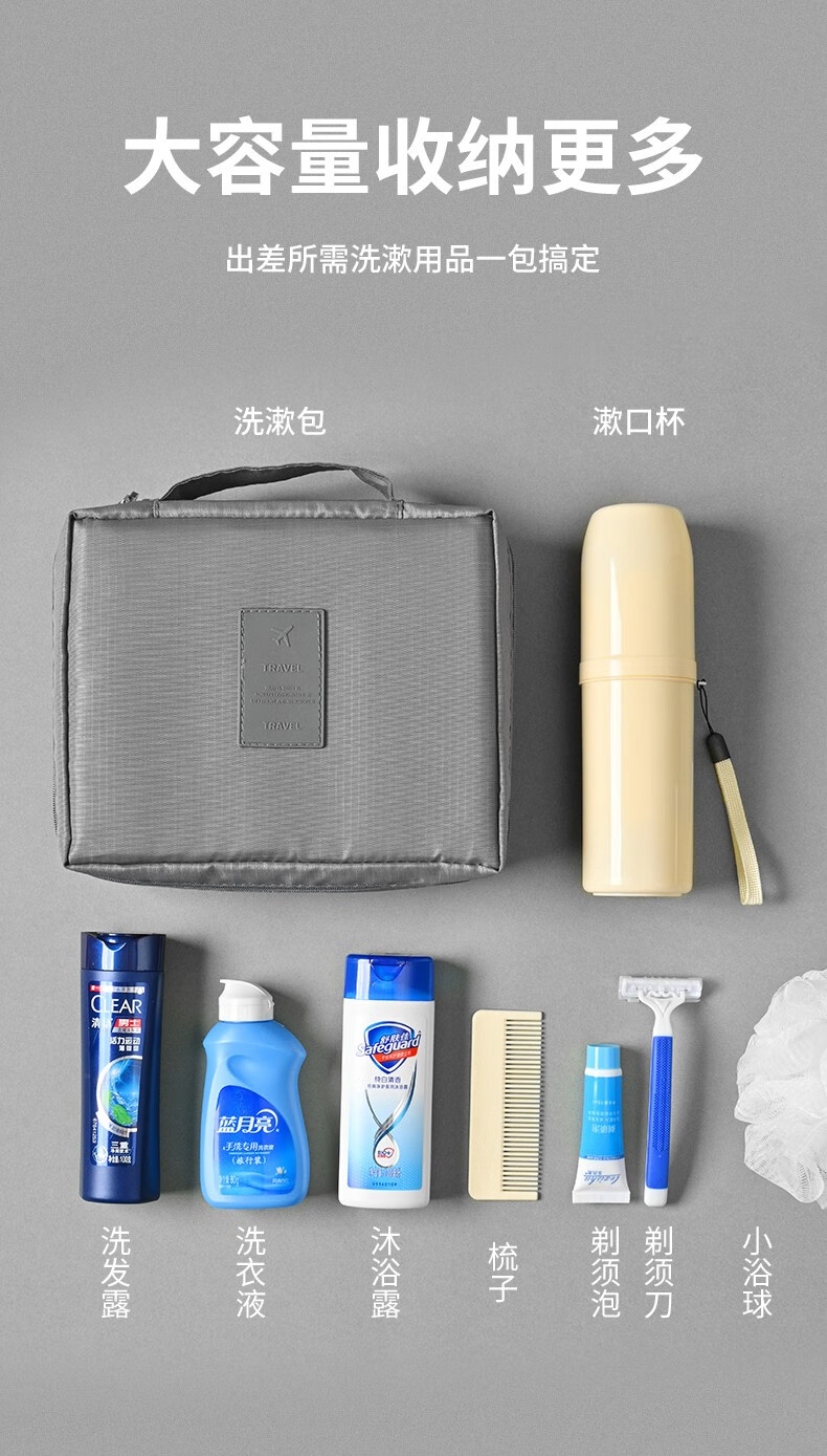 Qianmaren toiletry set, business trip toiletries, men's and women's shampoo and shower, portable hotel travel supplies, travel pack 2-Head and Shoulders ten-piece set + toiletry bag dark blue