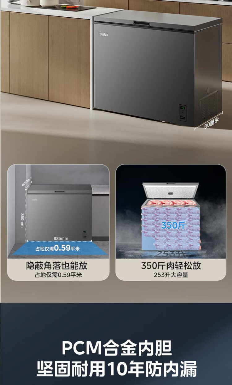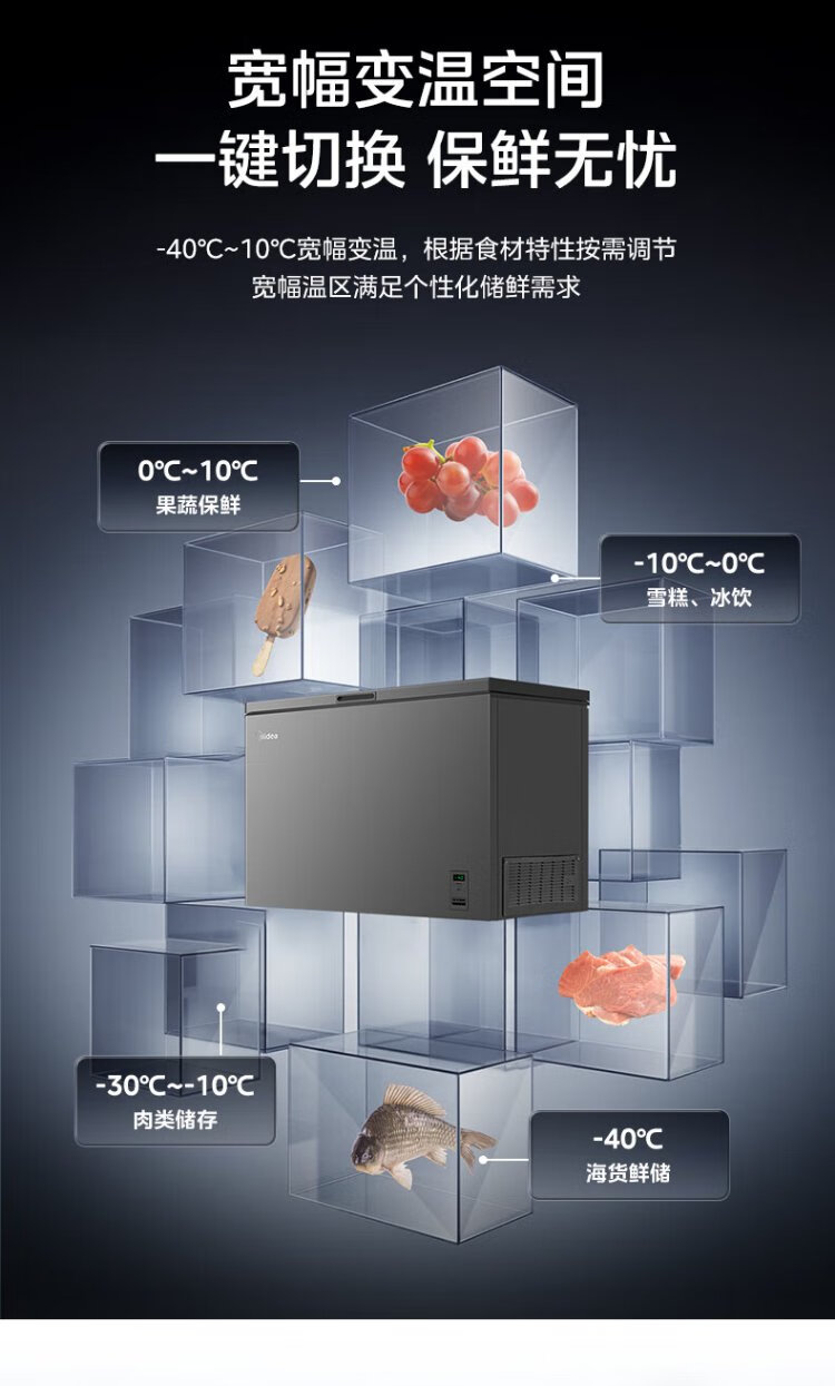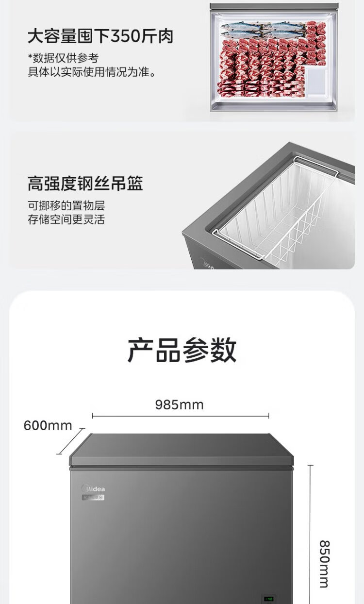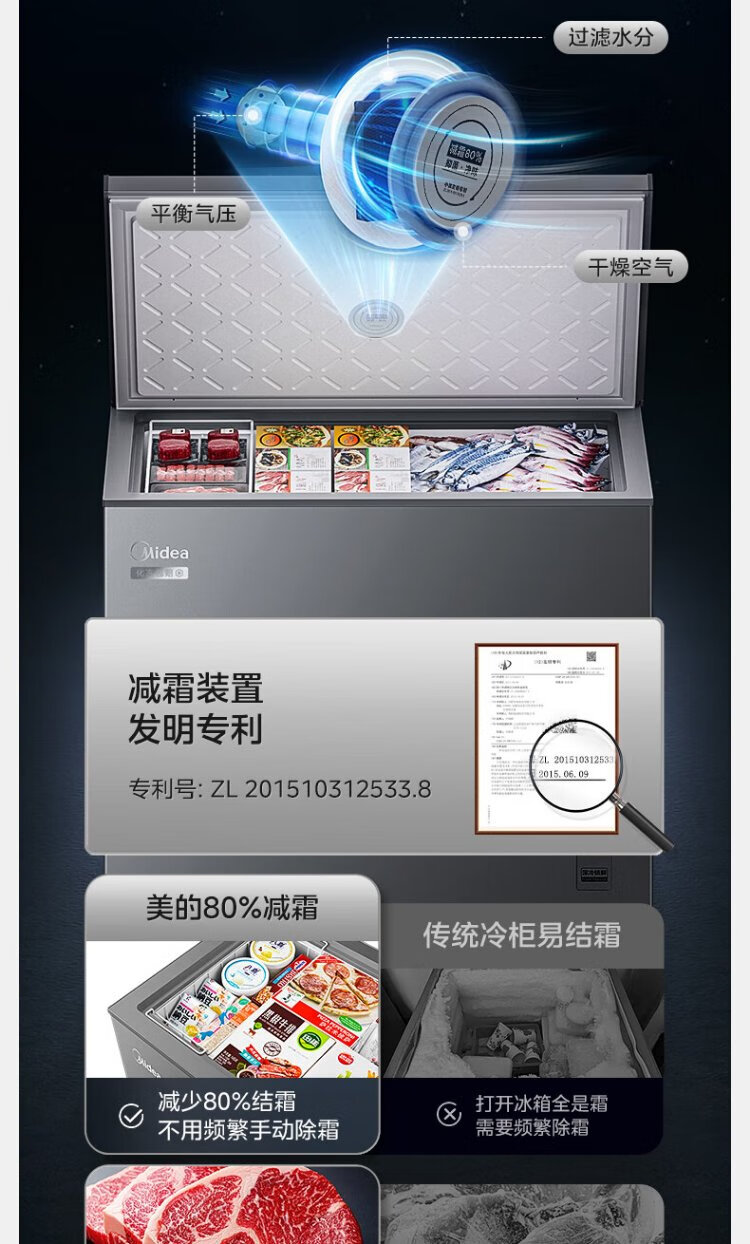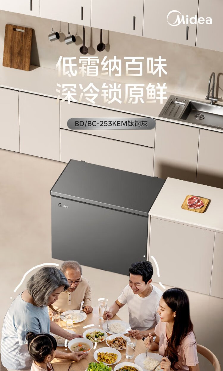 Midea Freezer Frequency Converter Household Freezer - 40°F, 80% Frost Reduction, Antibacterial, First Level Energy Efficiency 253L, Large Capacity Alloy Liner, Dual-Purpose Refrigeration and Freezing 253KEM 253L
