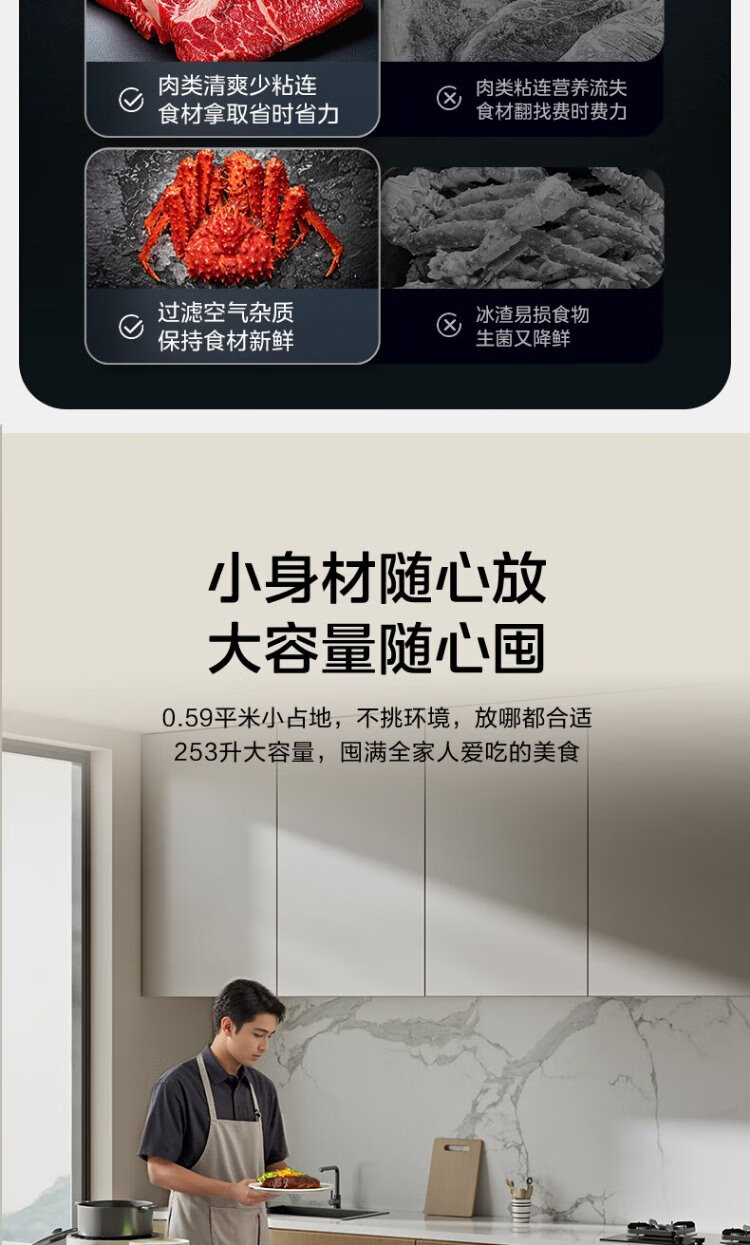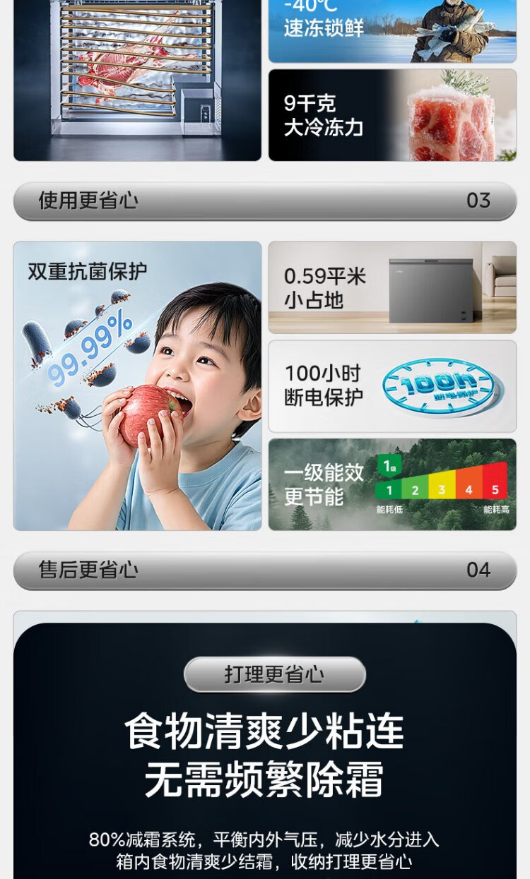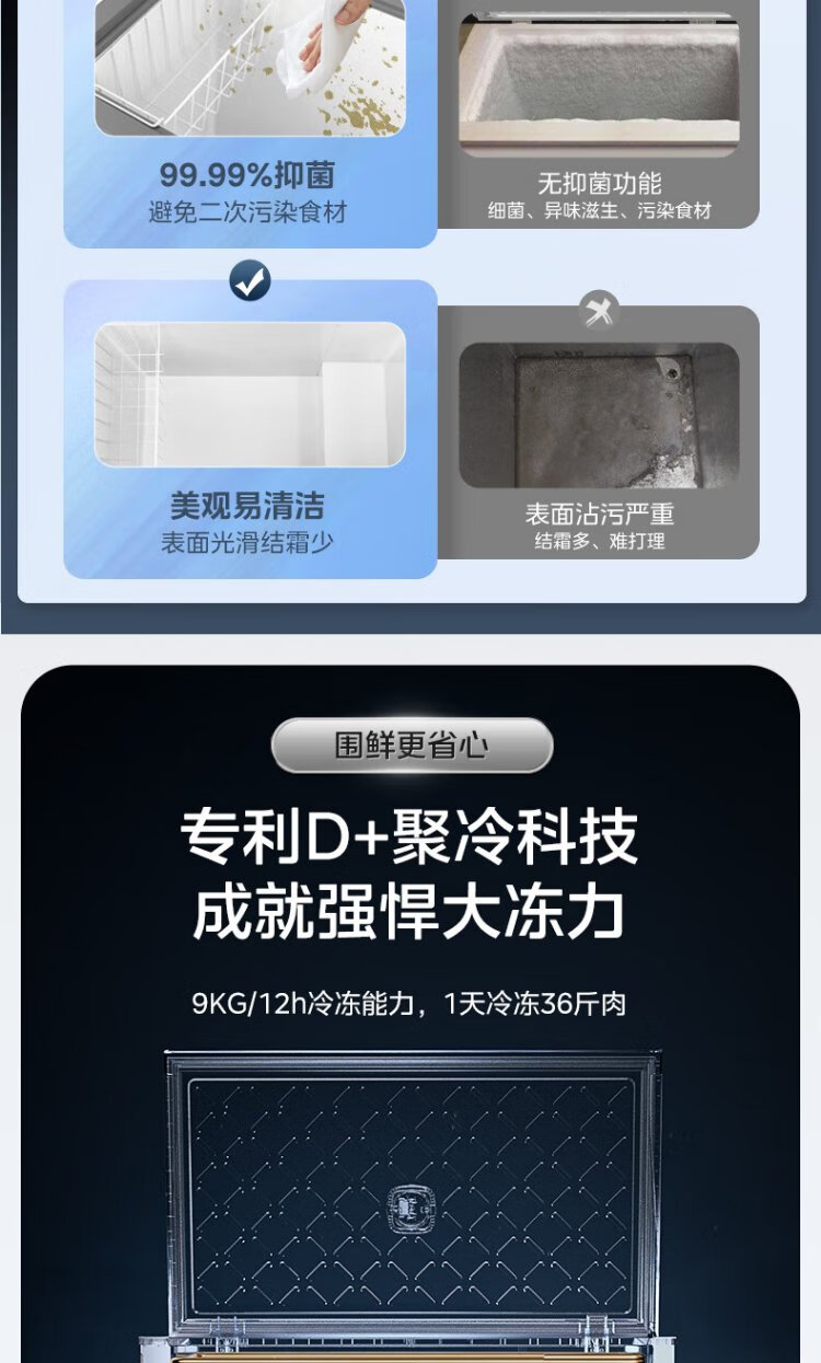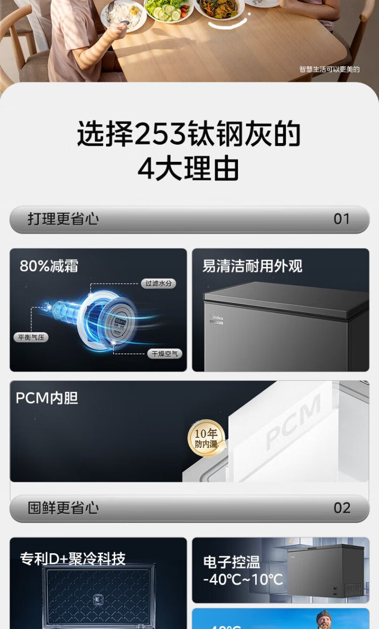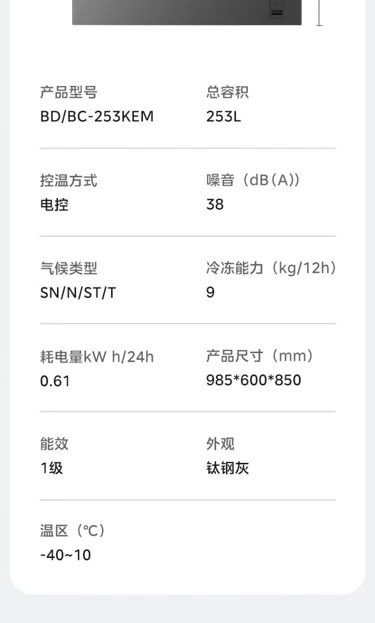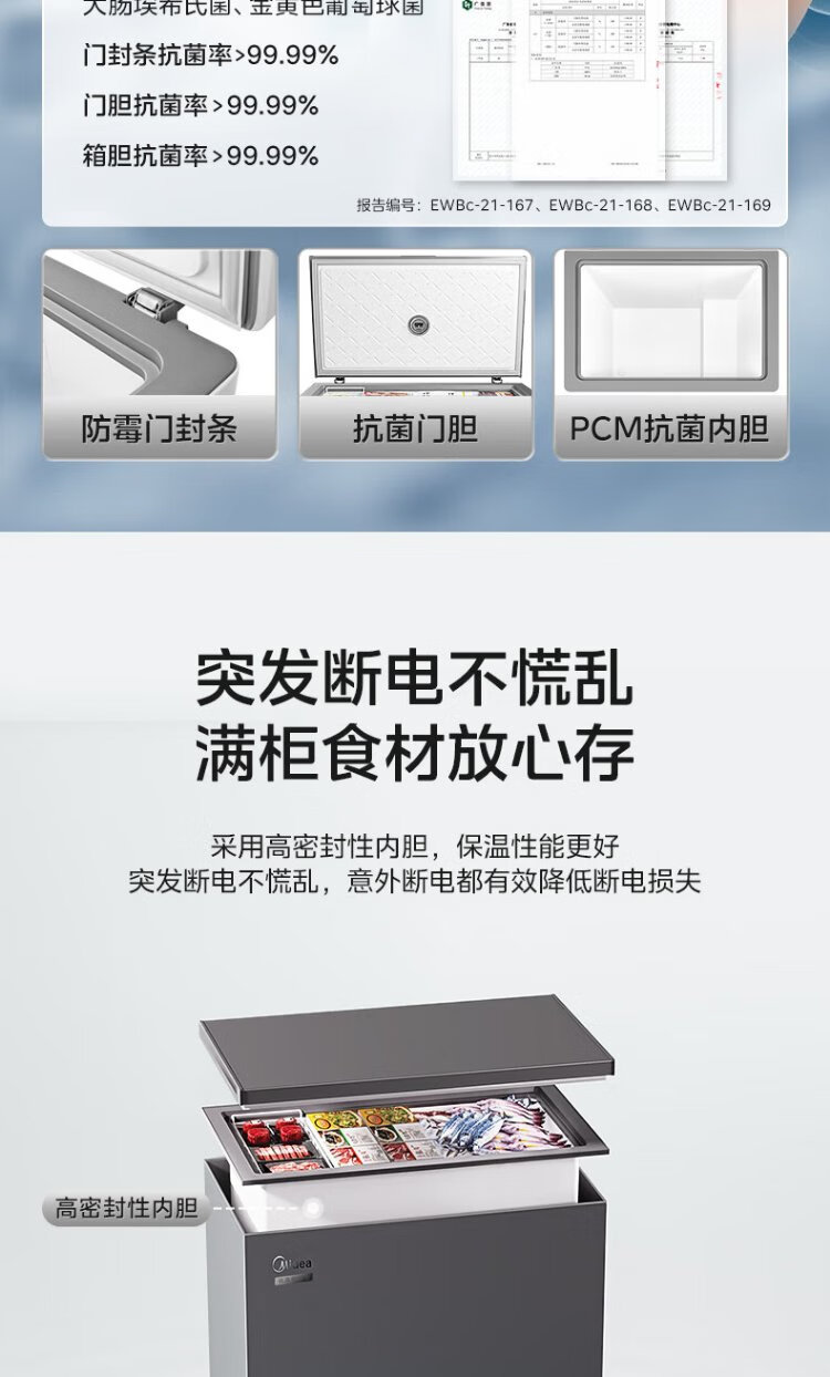 Midea Freezer Frequency Converter Household Freezer - 40°F, 80% Frost Reduction, Antibacterial, First Level Energy Efficiency 253L, Large Capacity Alloy Liner, Dual-Purpose Refrigeration and Freezing 253KEM 253L