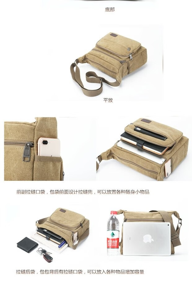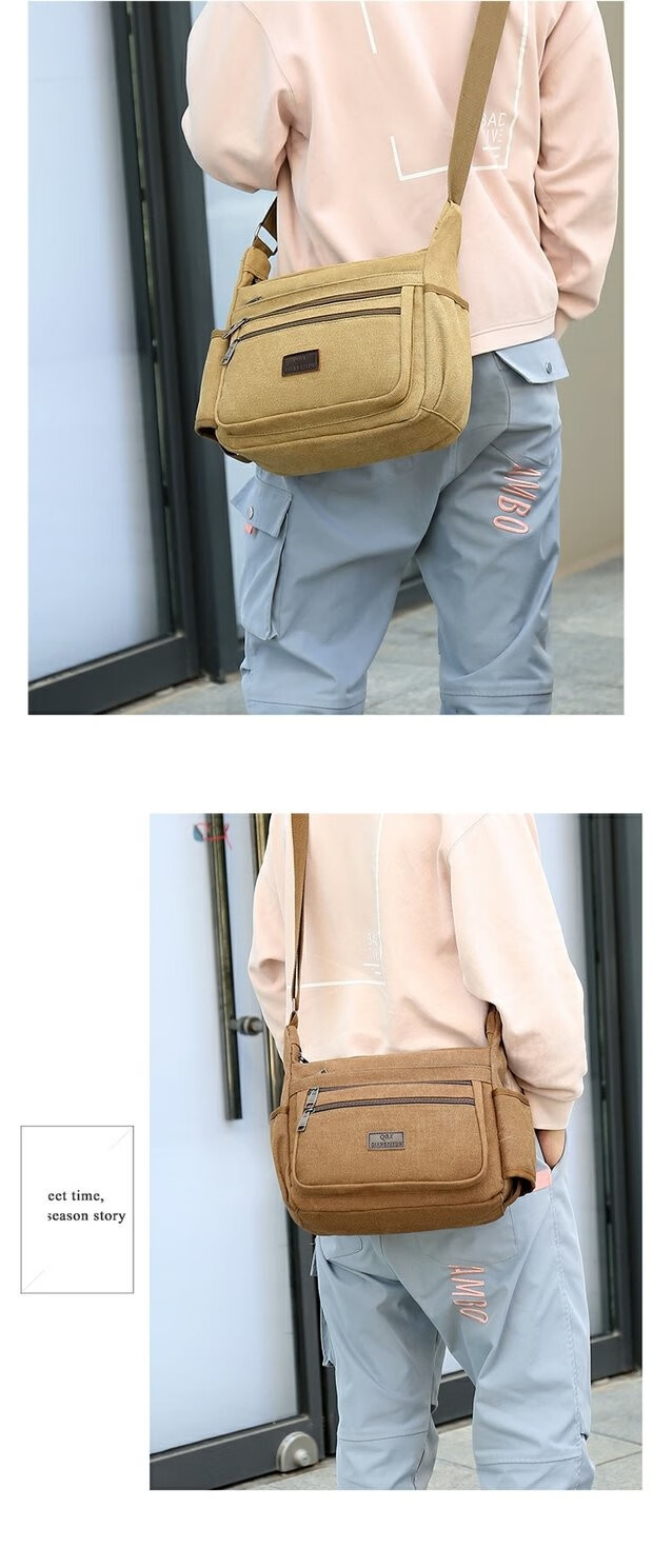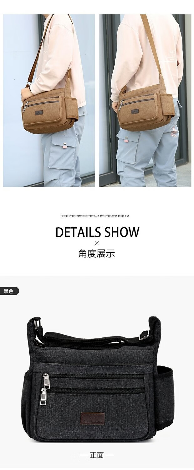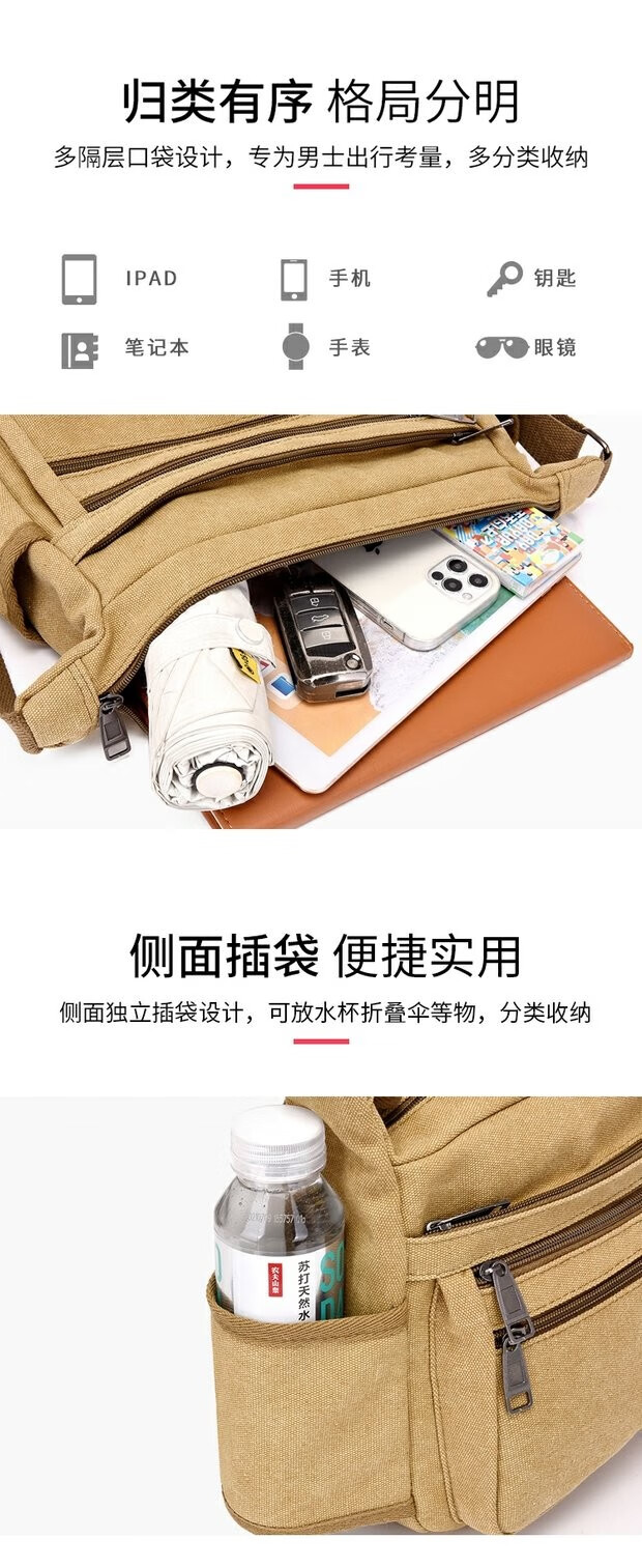 Sanyu (sanyut) canvas tool bag thickened and wear-resistant black construction site carpentry bricklayer multifunctional shoulder bag storage bag repair electrician bag large thickened canvas horizontal zipper khaki