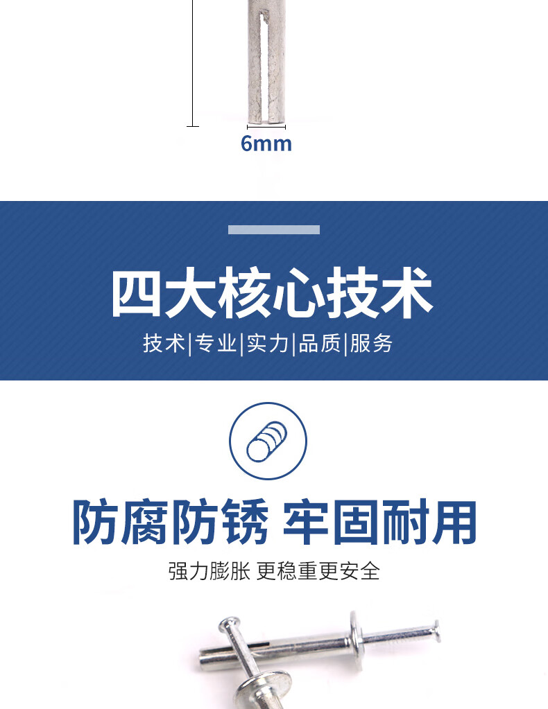 ZEIROU core-hit gecko fixed quick nail expansion insert piece American expansion nail quick nail expansion nail strong M6 6*60 mm 50 pieces