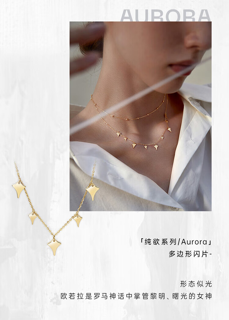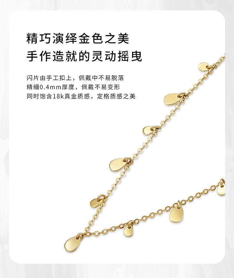 FENS Jewelry 18K Gold Necklace Women's Water Drop Pure Desire Necklace Colored Gold Chain Birthday Gift Small Water Drop Necklace