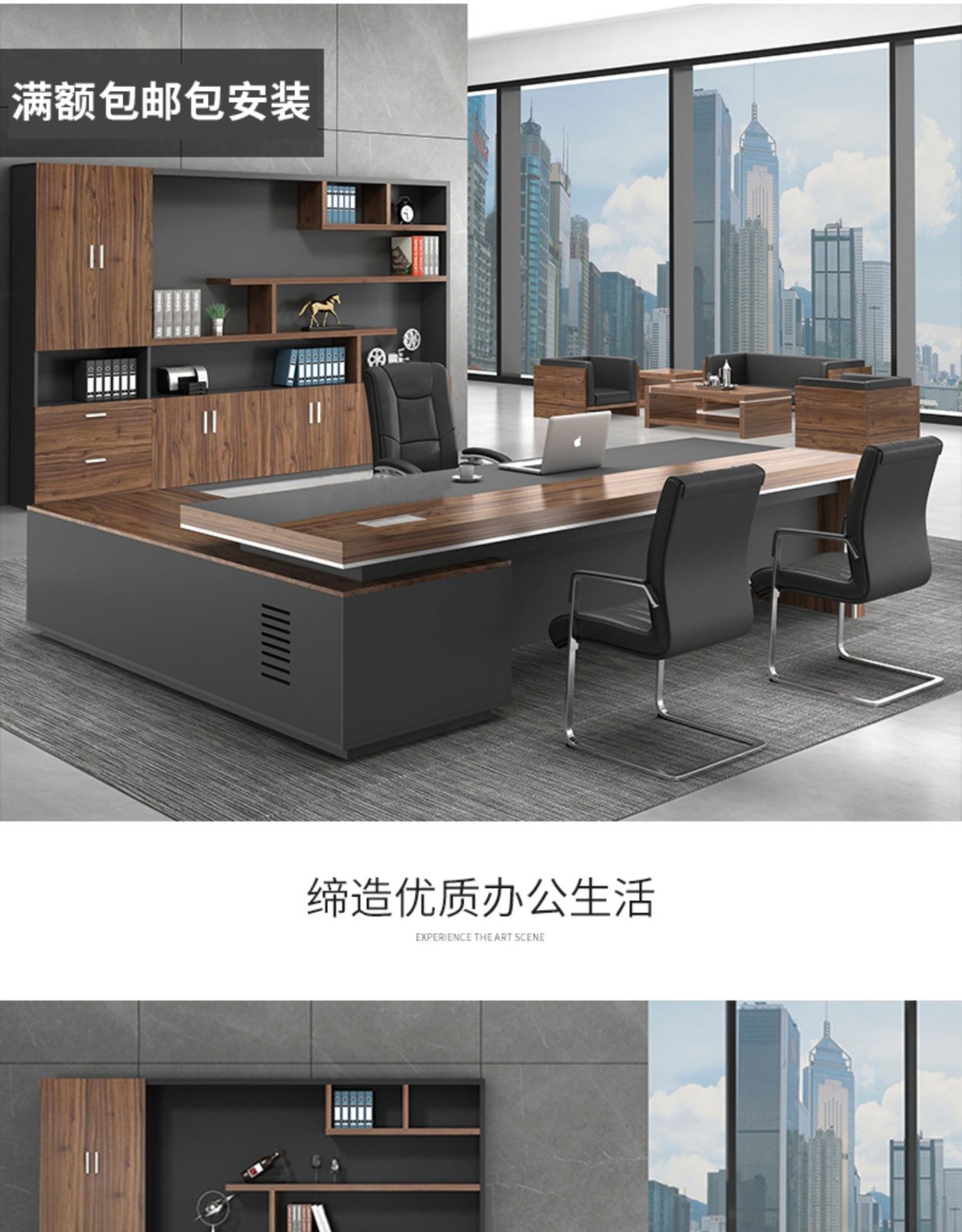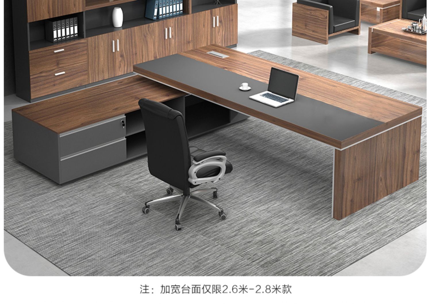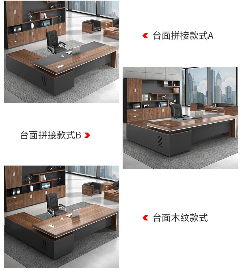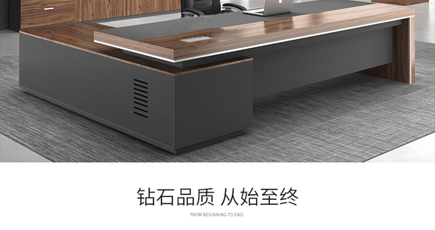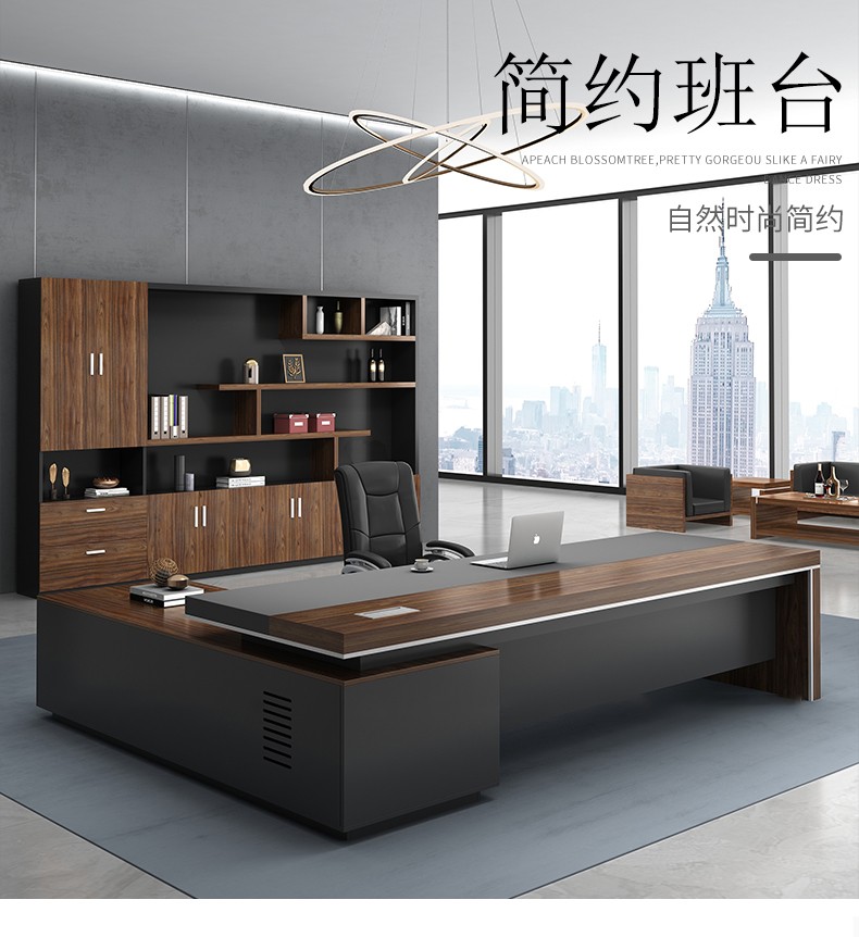 European wooden simple boss table CEO desk manager desk office combination manager room modern simple executive desk set class desk supervisor table big leaf walnut left side cabinet 1.8 meters boss table