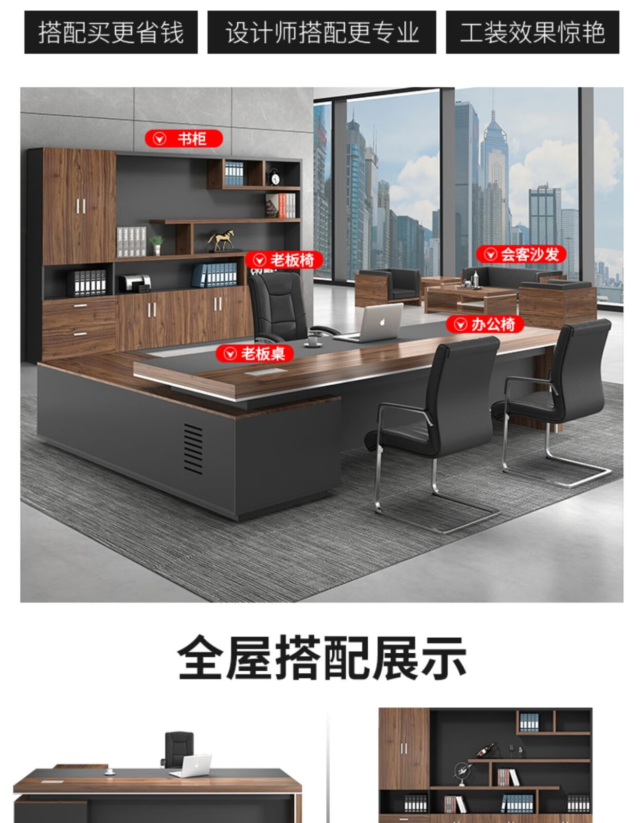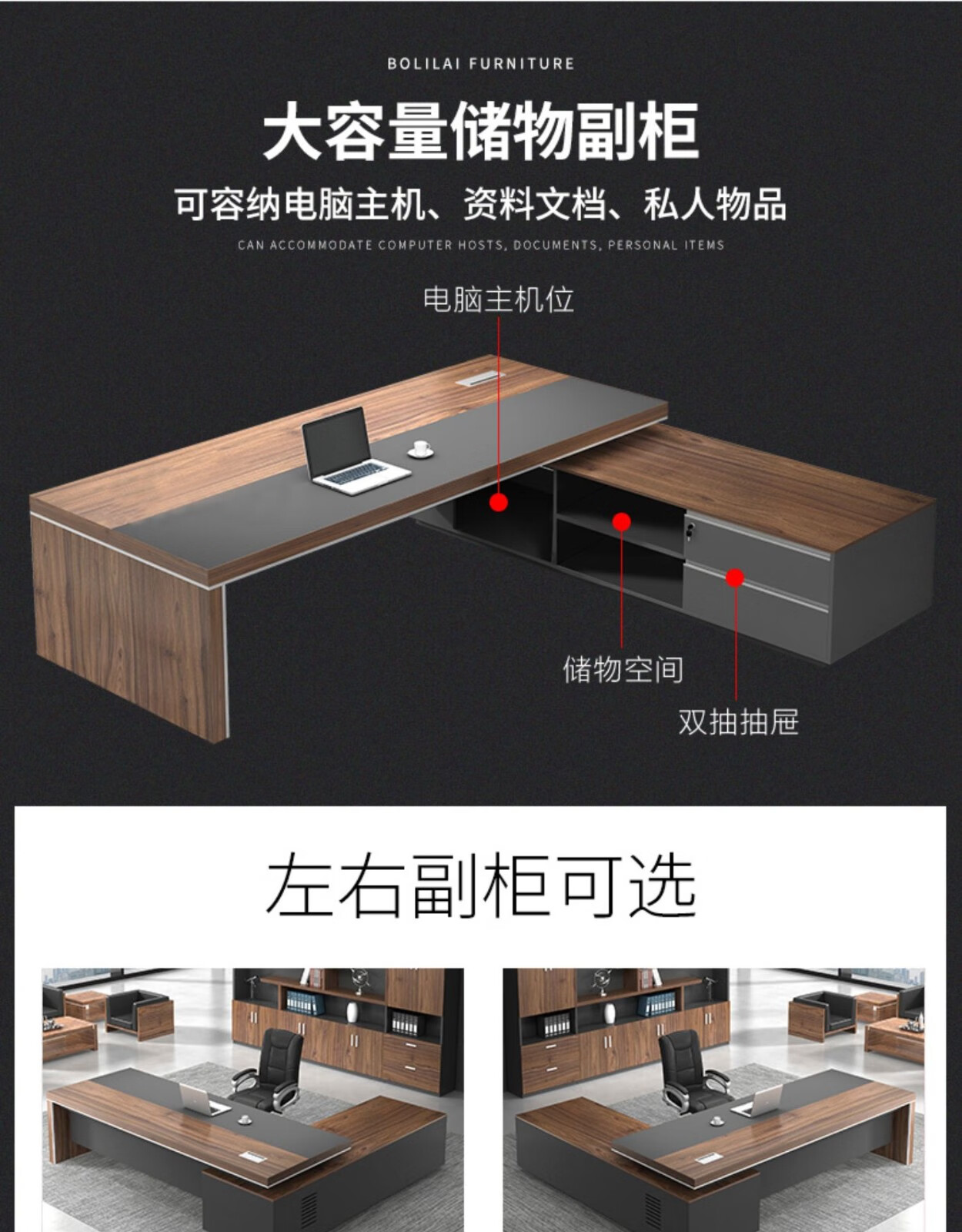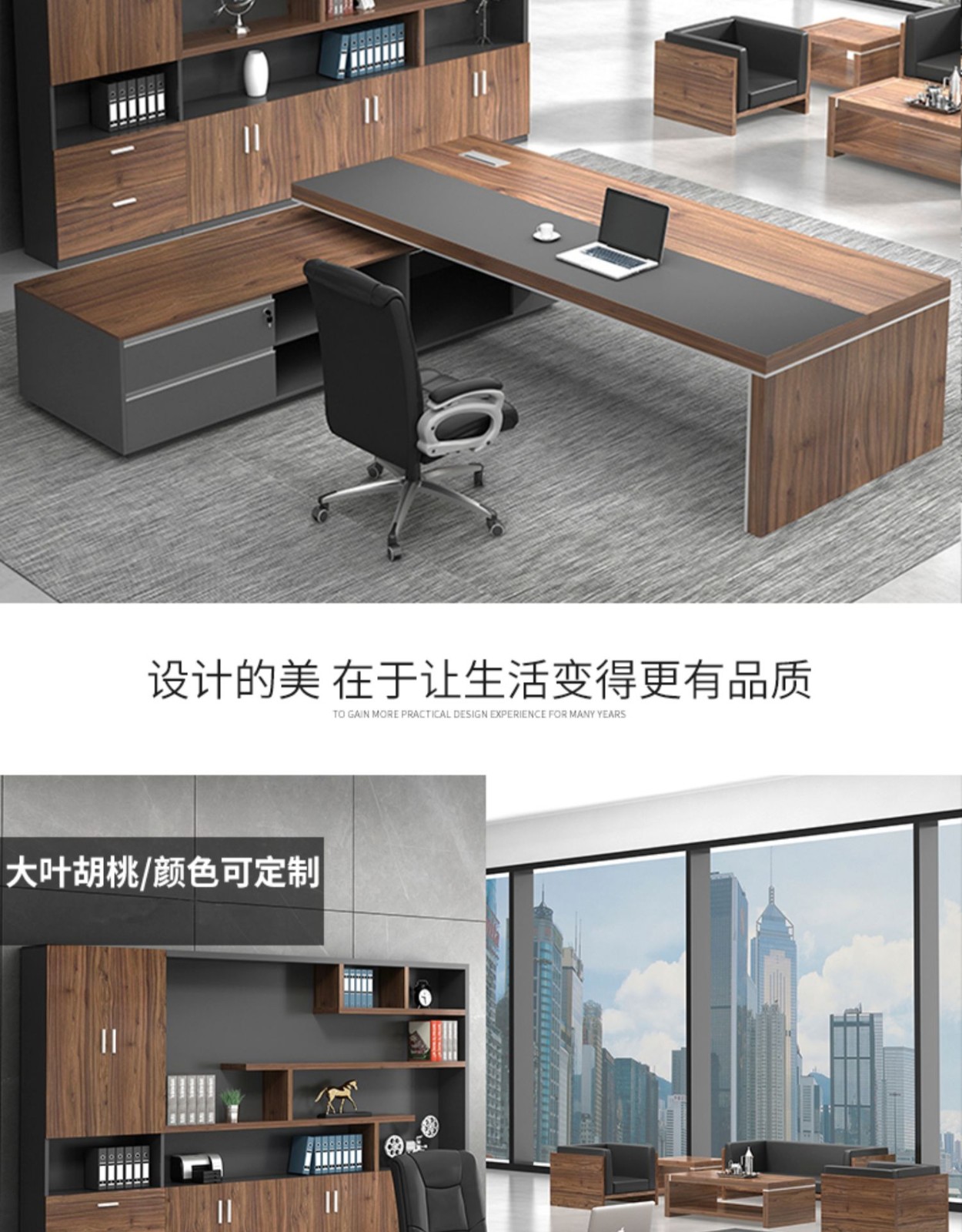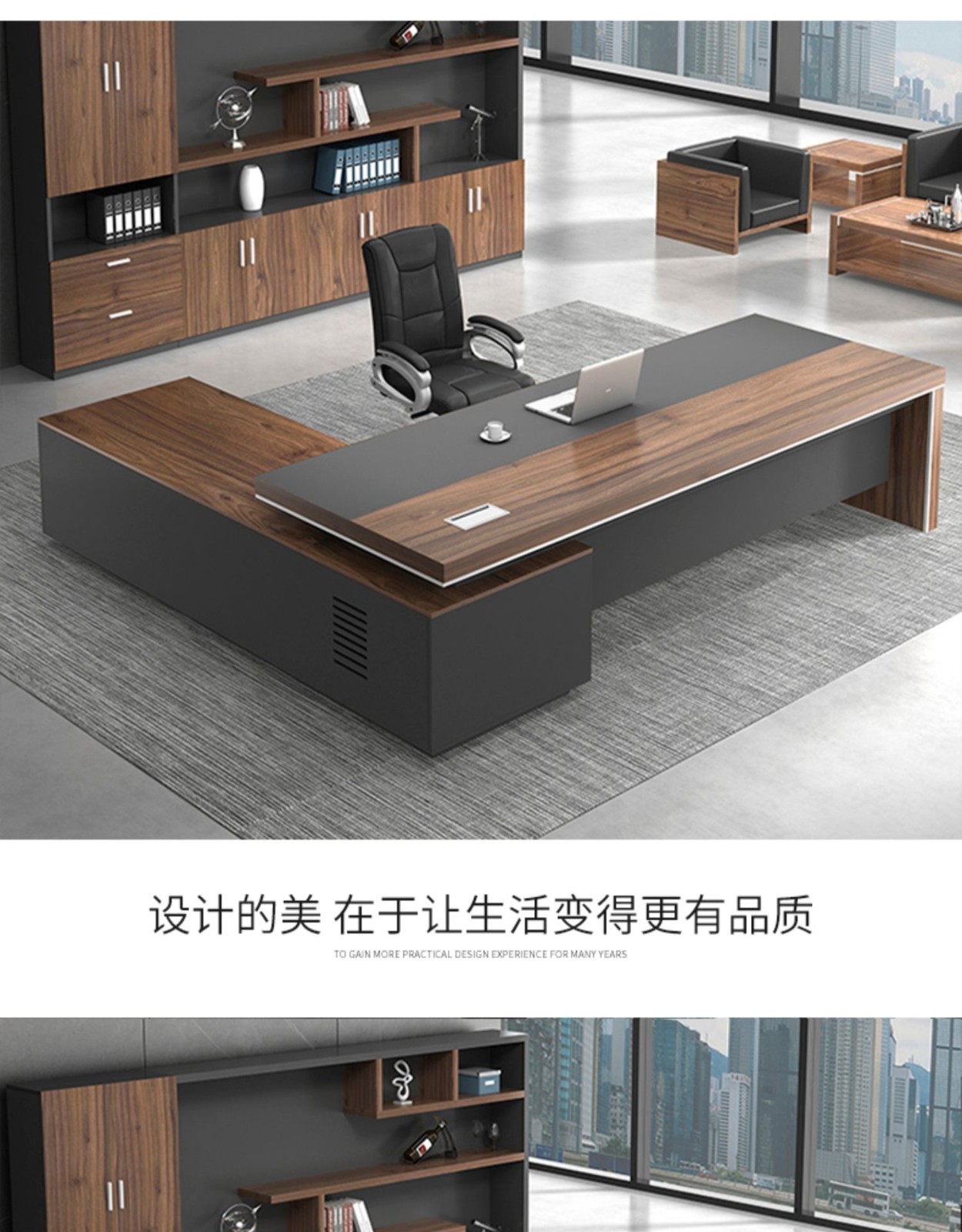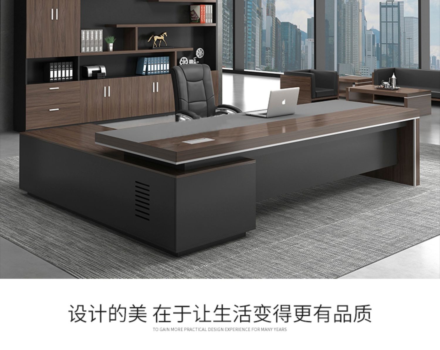 European wooden simple boss table CEO desk manager desk office combination manager room modern simple executive desk set class desk supervisor table big leaf walnut left side cabinet 1.8 meters boss table