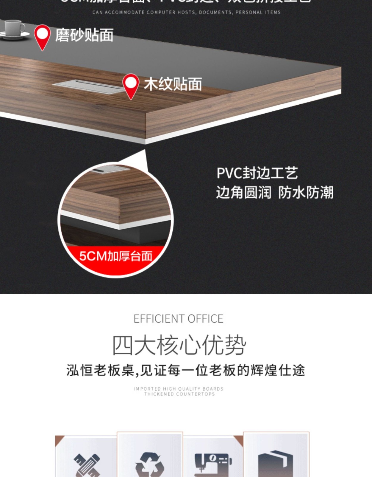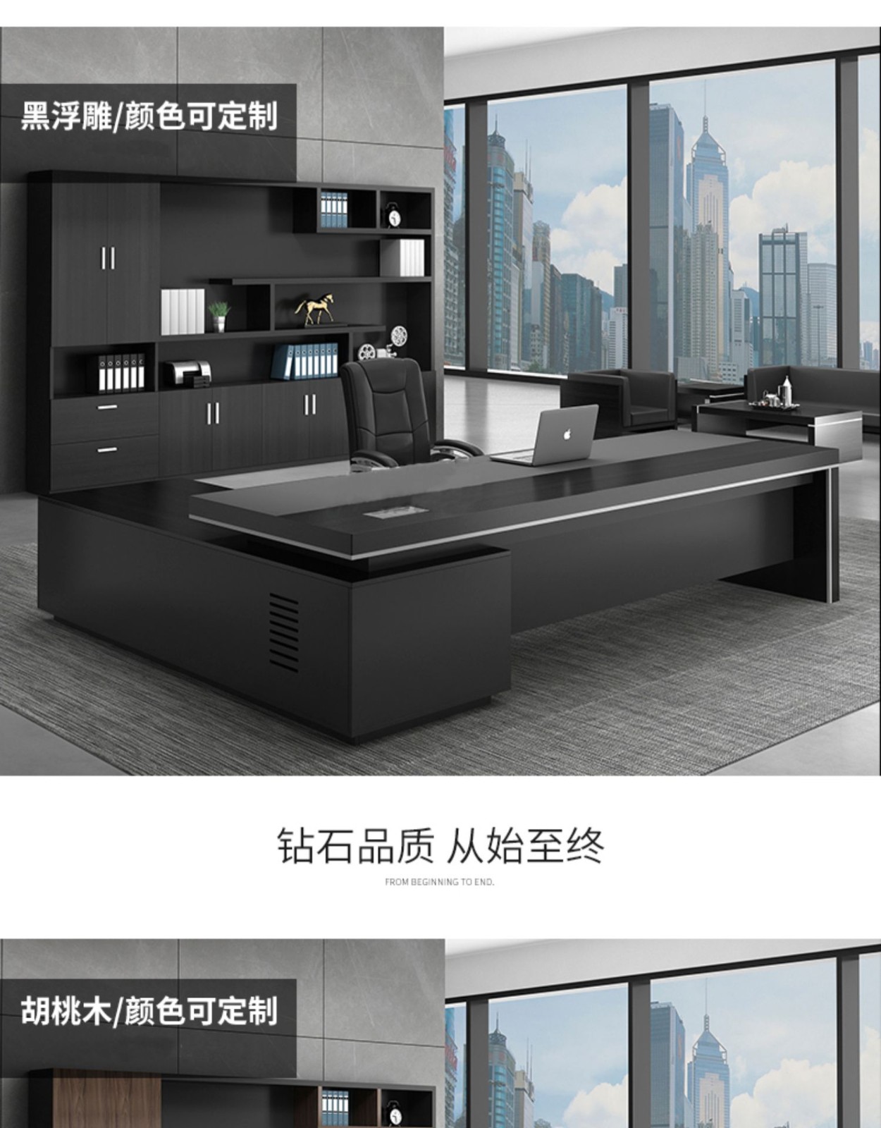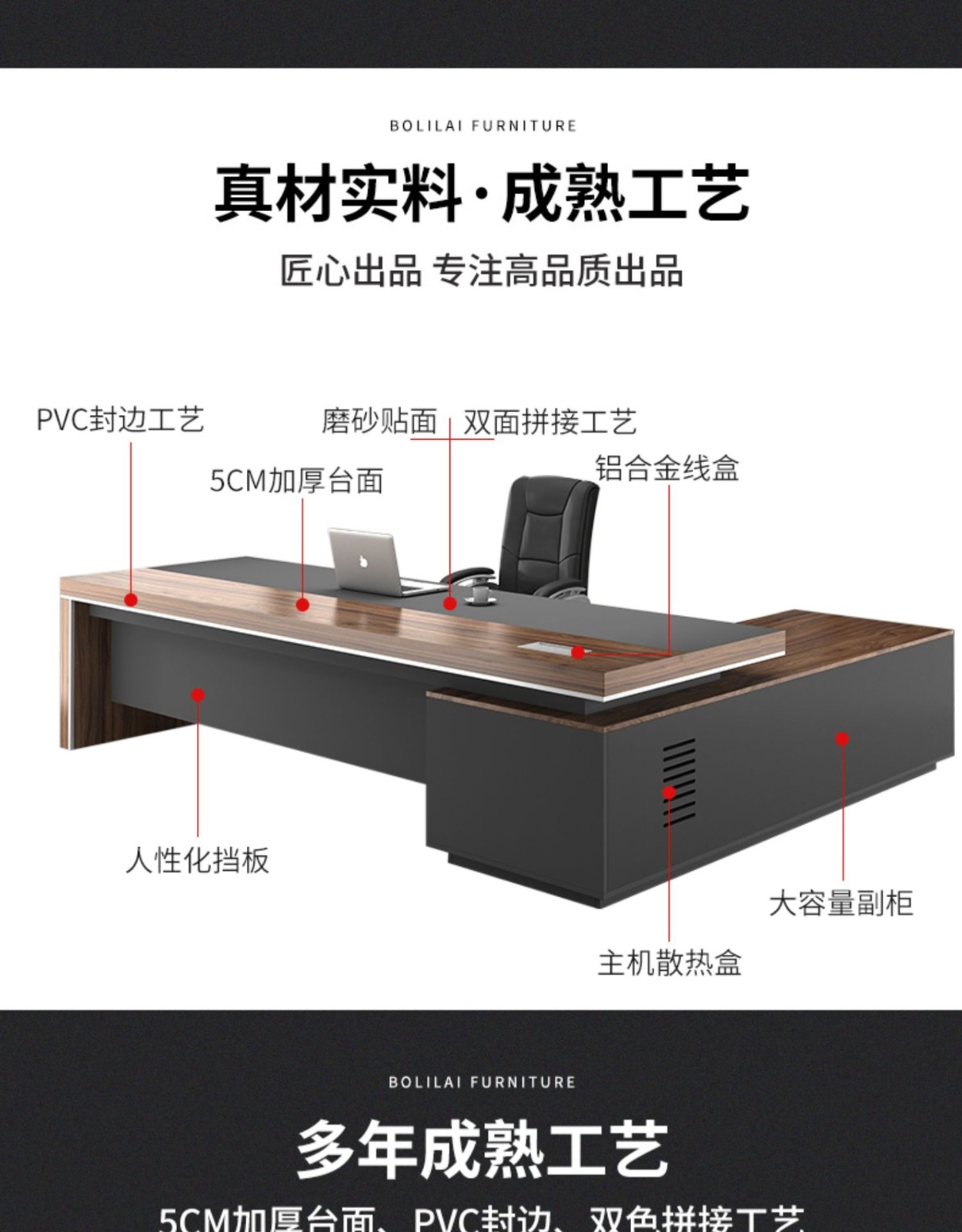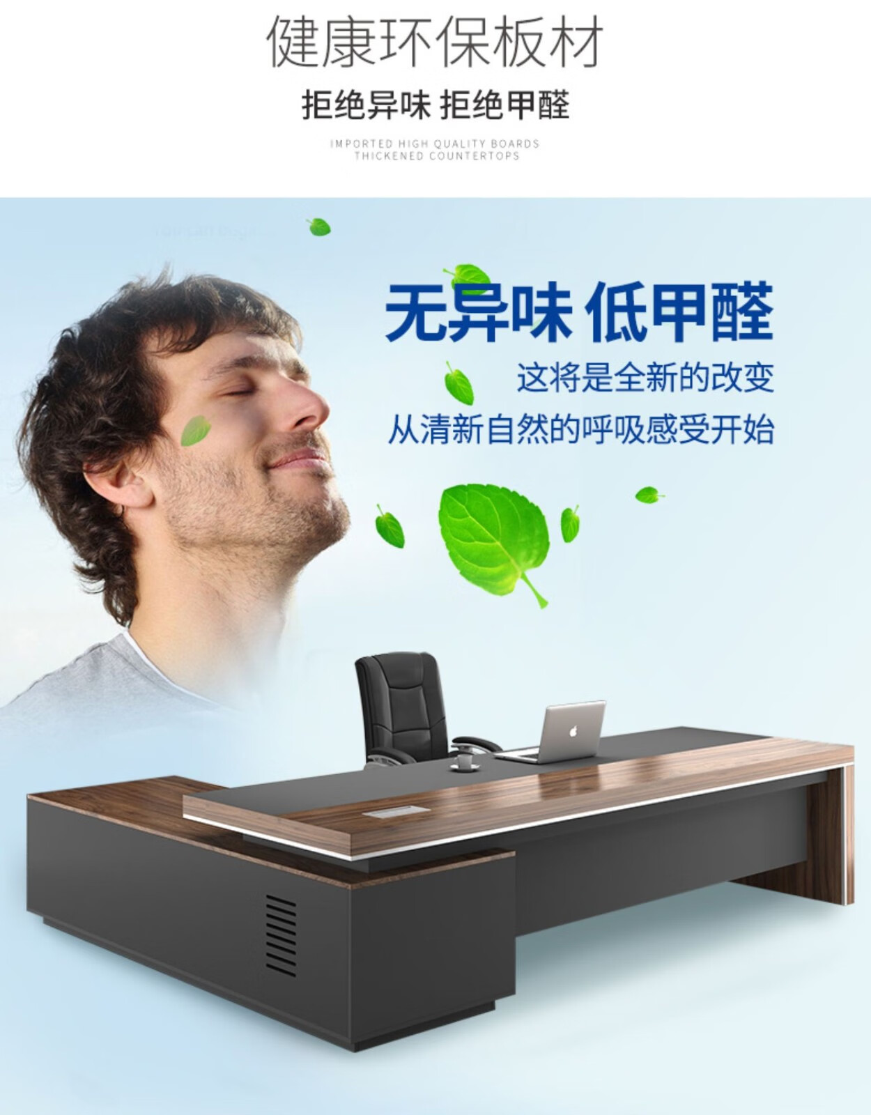 European wooden simple boss table CEO desk manager desk office combination manager room modern simple executive desk set class desk supervisor table big leaf walnut left side cabinet 1.8 meters boss table