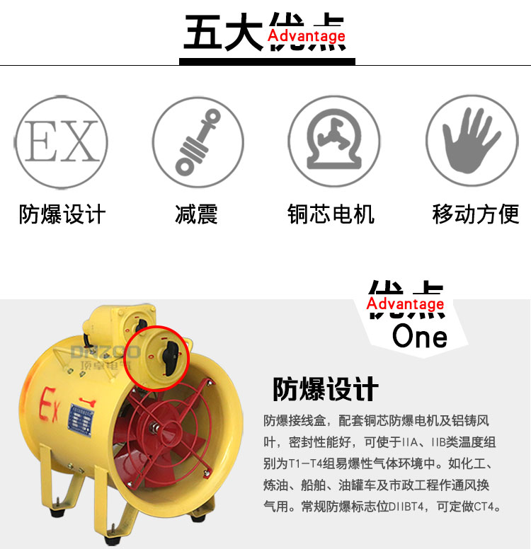 Dingzhuo Electric BSFT-200/250/10 explosion-proof portable exhaust fan order notes 220V or 380V 300 air duct 5 meters