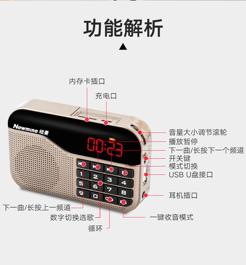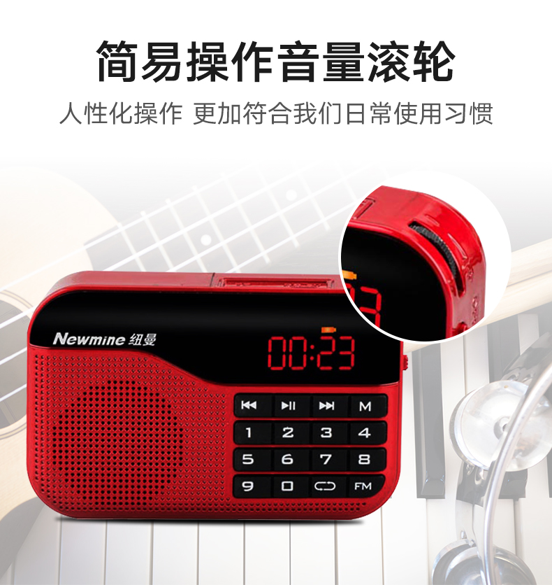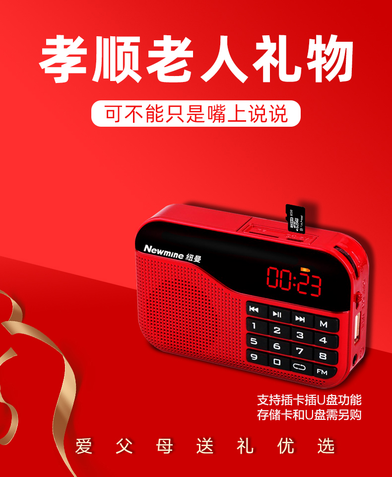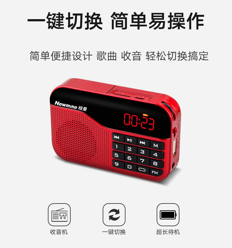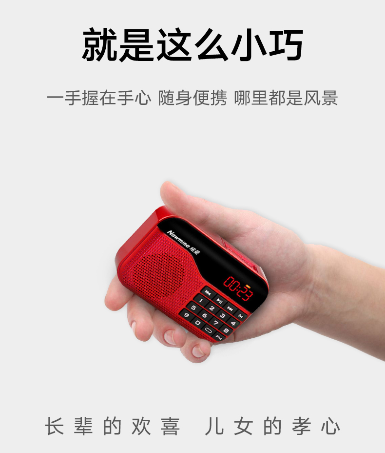 Newmine N63 radio portable player for the elderly, rechargeable radio, walkman, semiconductor listening song, small mini opera storytelling, multi-function red