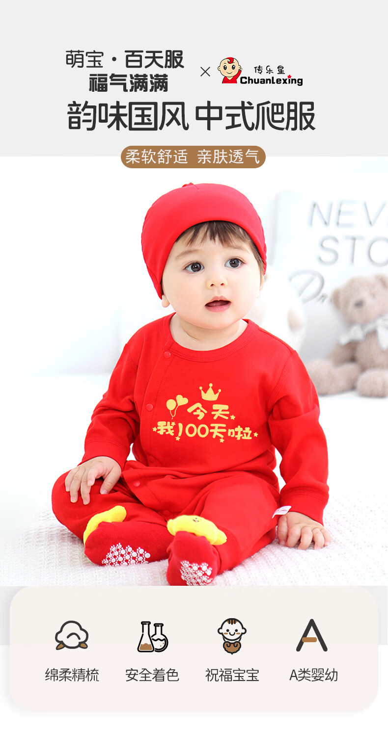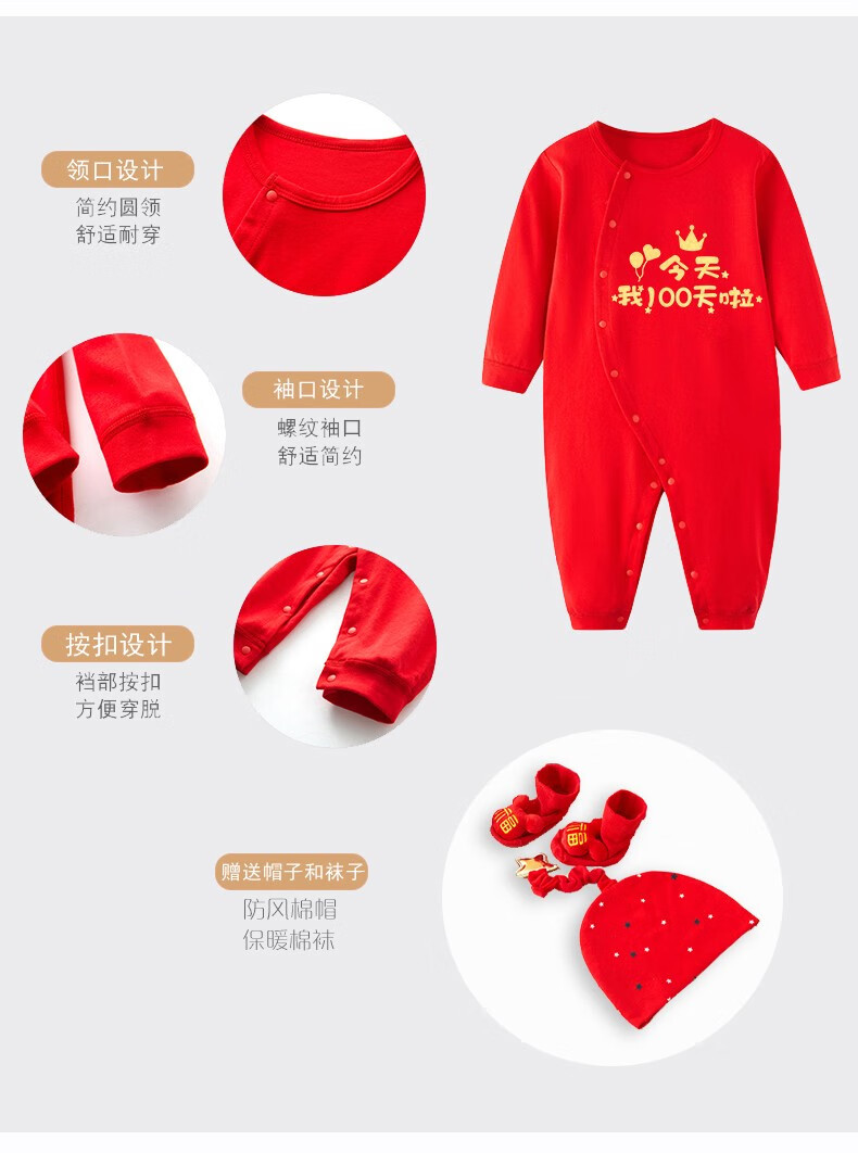 Chuanlexing (CHUANLEXING) baby clothes 100 days baby winter jumpsuit men and women 100 days banquet 100 days photo gift set lucky balloon 100 days hot stamping - autumn and winter thin cotton + hats and socks 59cm (9-12Jin Jin is equal to 0.5kg /0-3 months)
