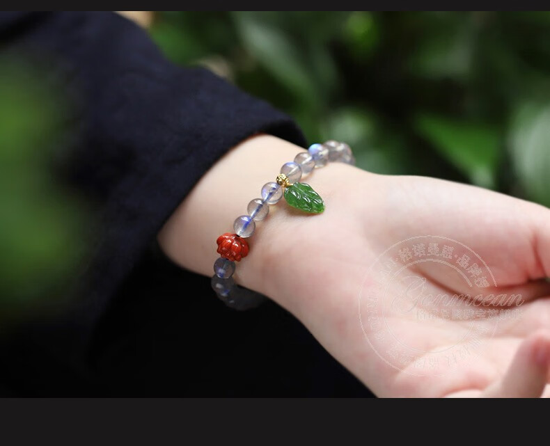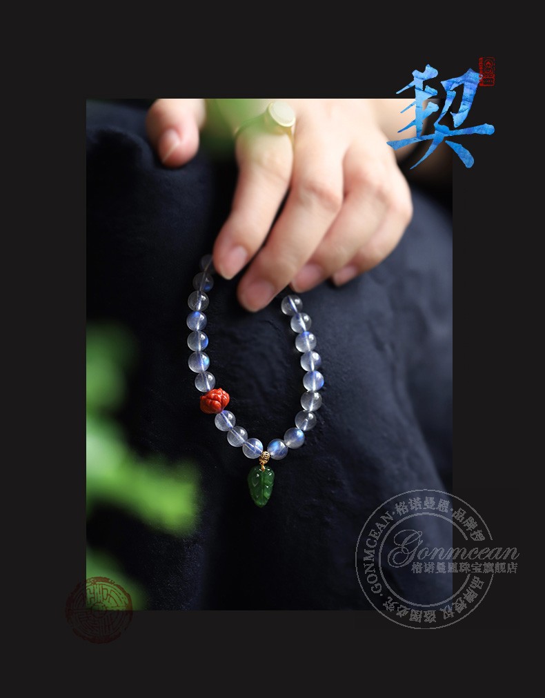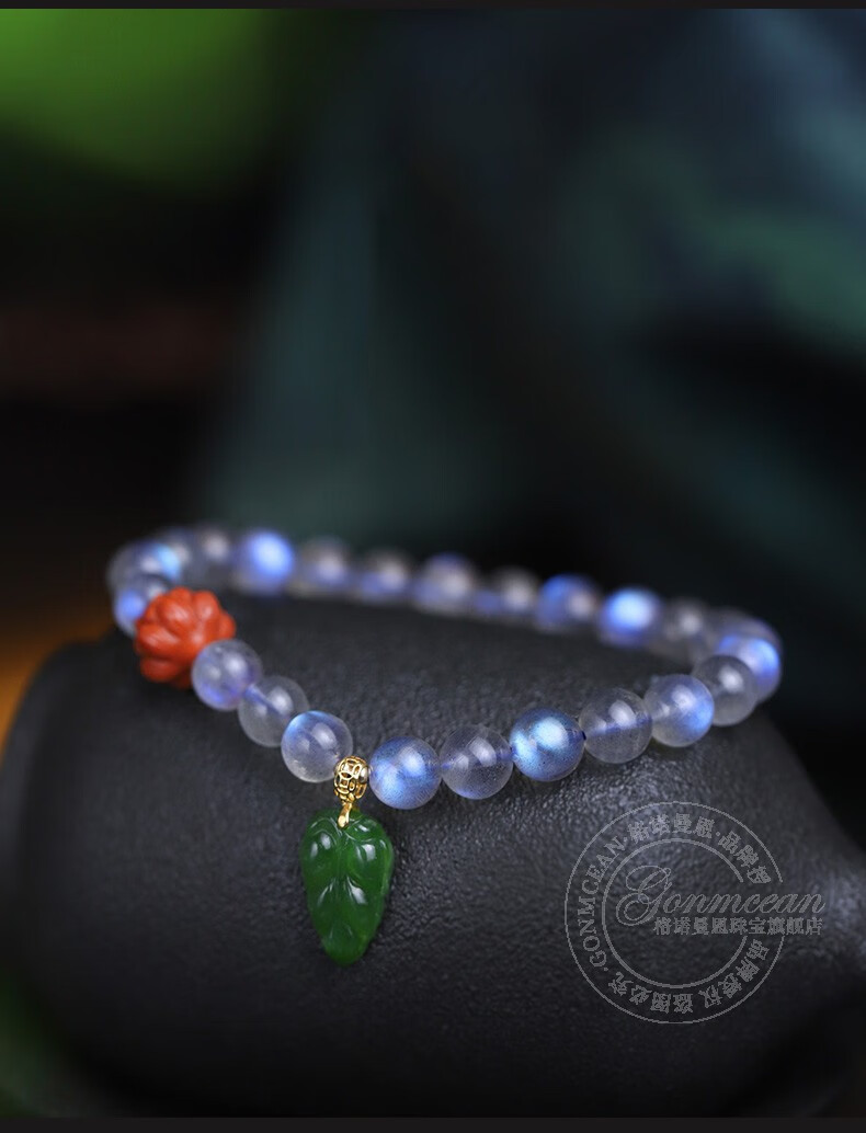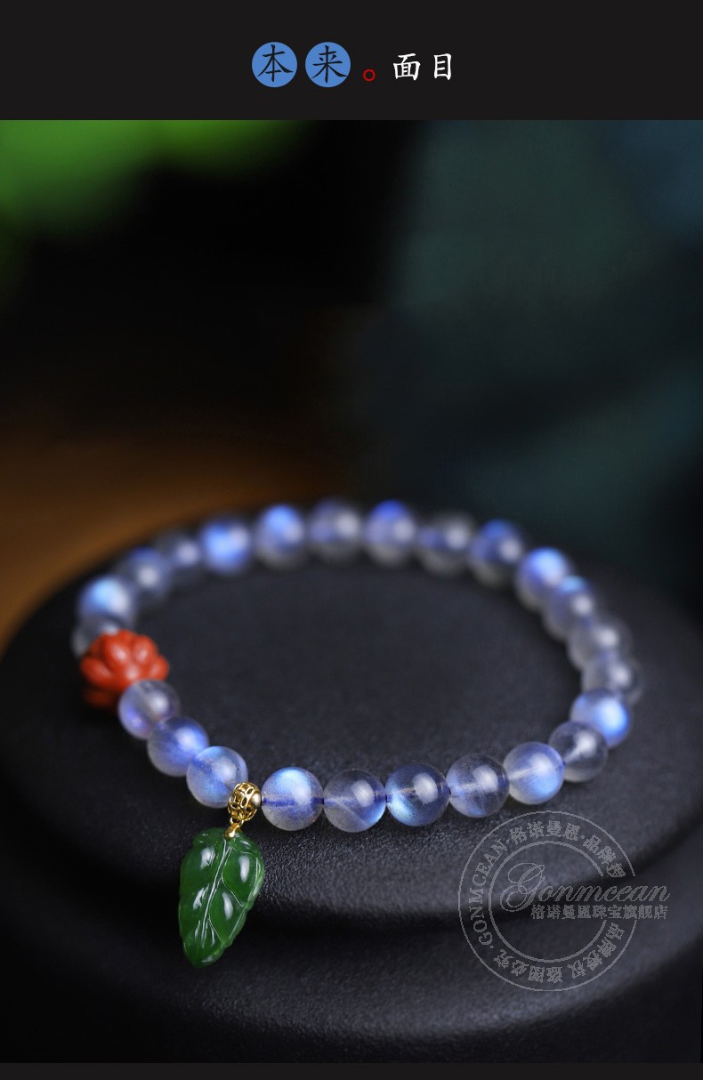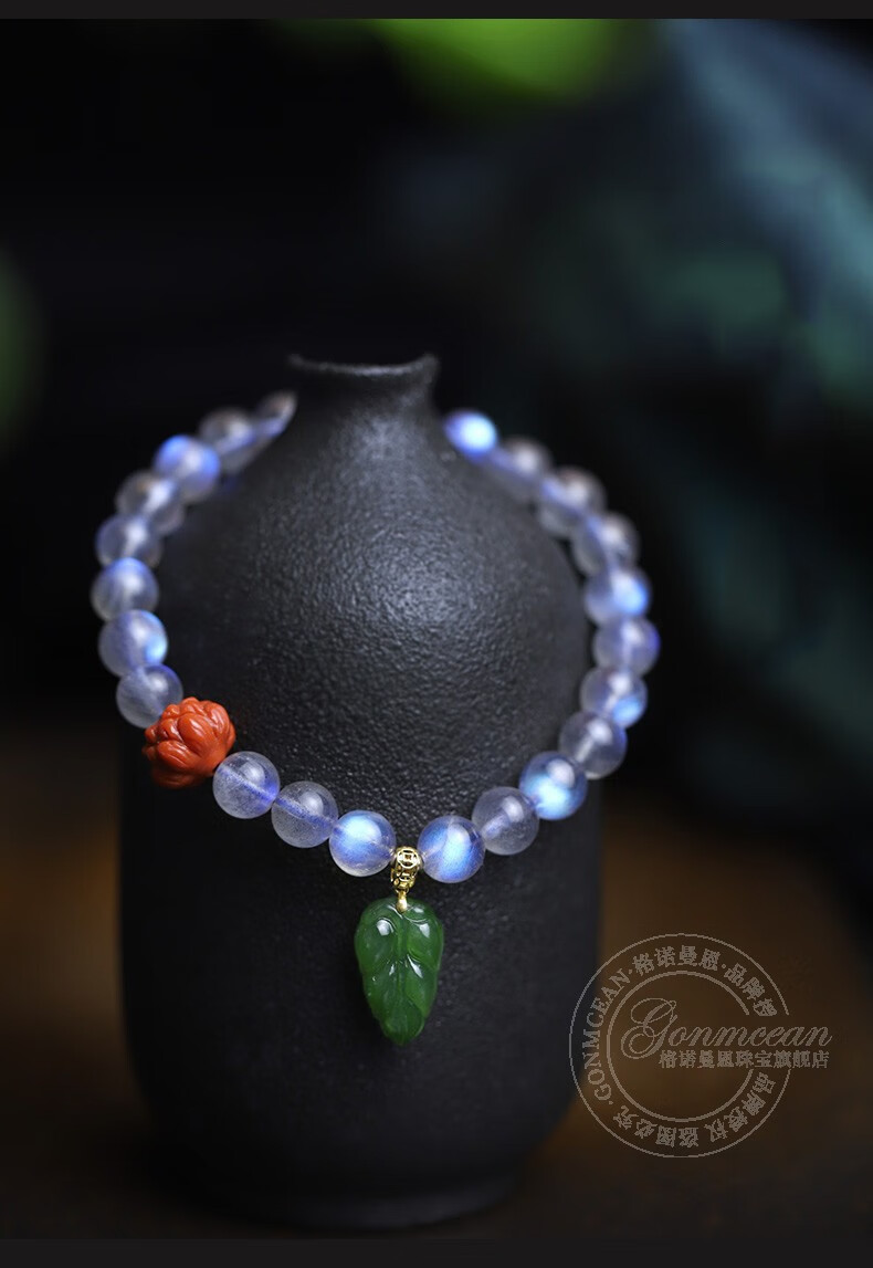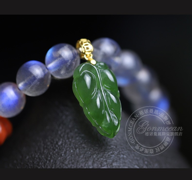 GONMCEAN ice transparent vitreous blue light moonstone bracelet 18K gold jasper leaf bracelet gift for women