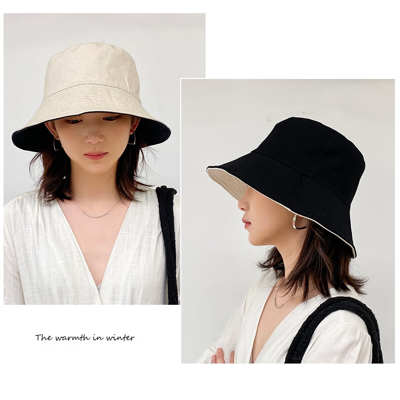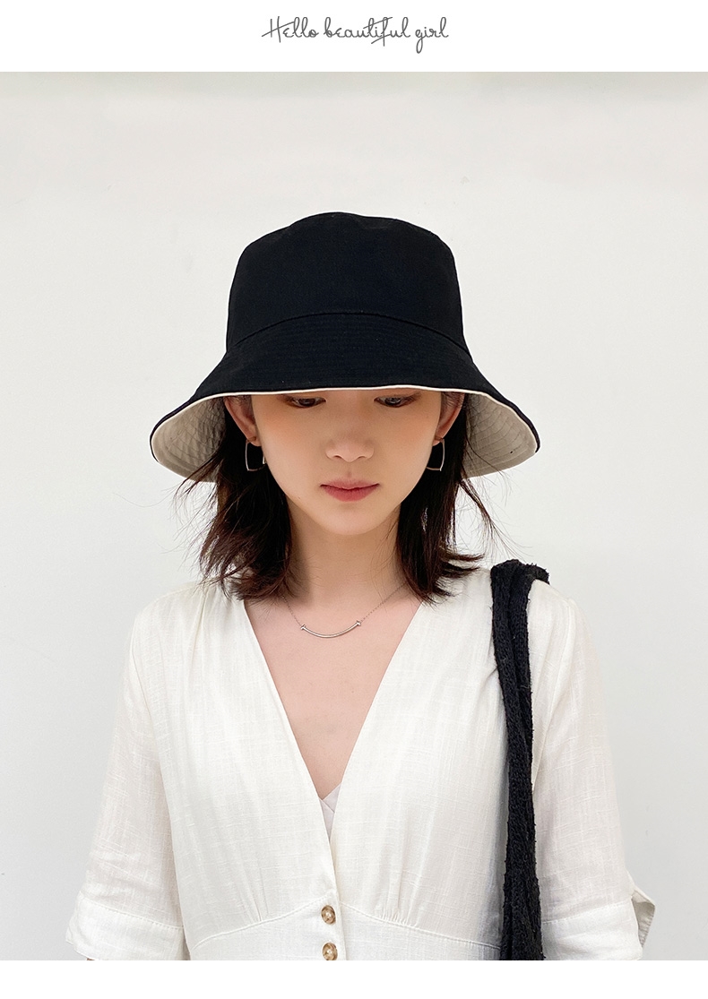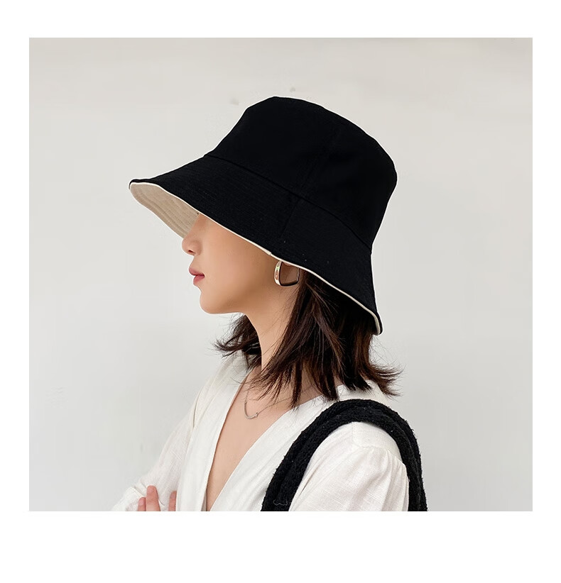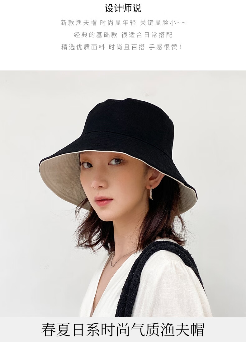 Levison fisherman hat women's summer popular hat spring and autumn women's hat trend fisherman sun protection double-sided fairy sun hat black rice (black + beige double-sided wear) one size