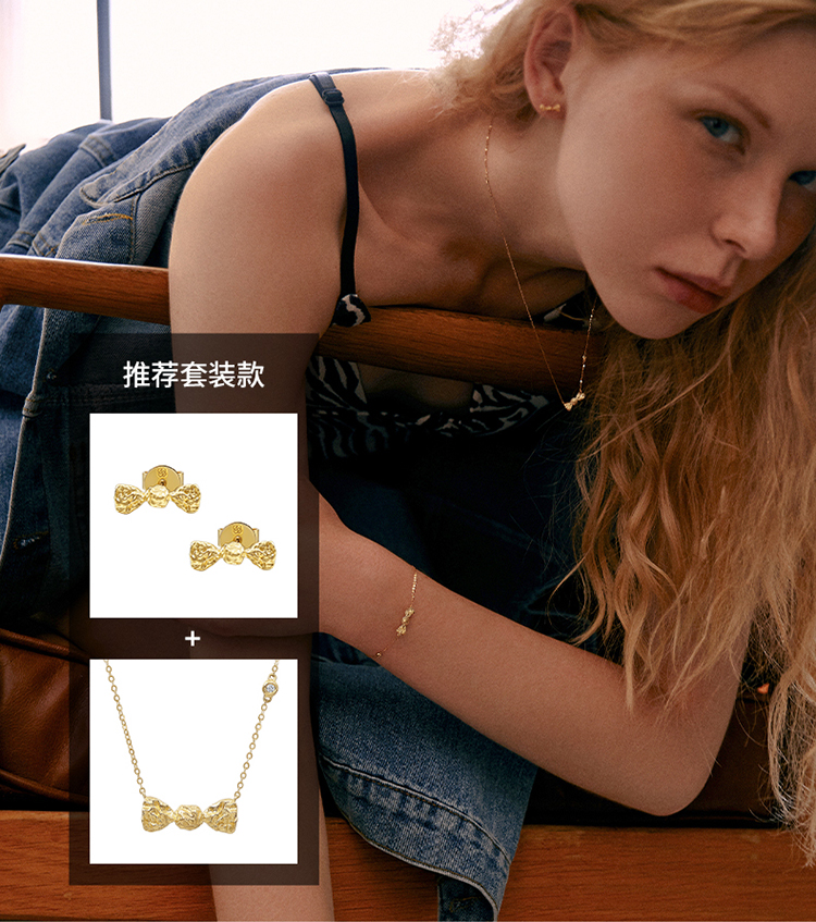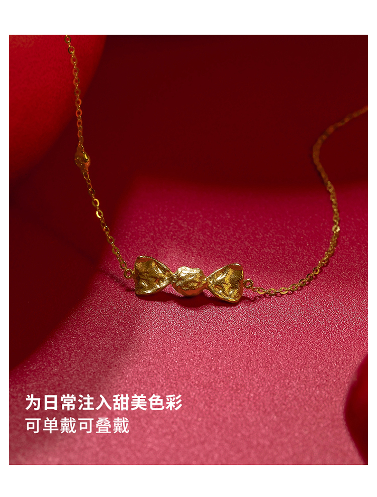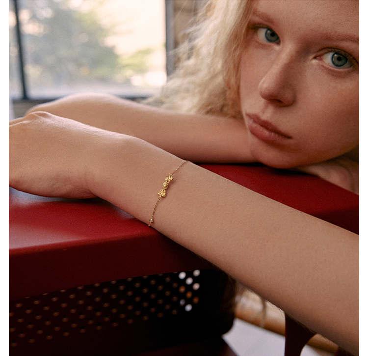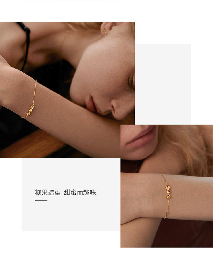 FENS Jewelry New Year Gift 18K Gold Diamond Bracelet Girl Bow Cute Hand Accessories Birthday Gift 18K Gold Diamond Bracelet (Total Length Approximately 18cm)