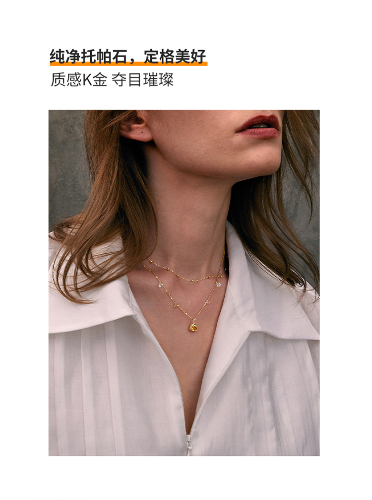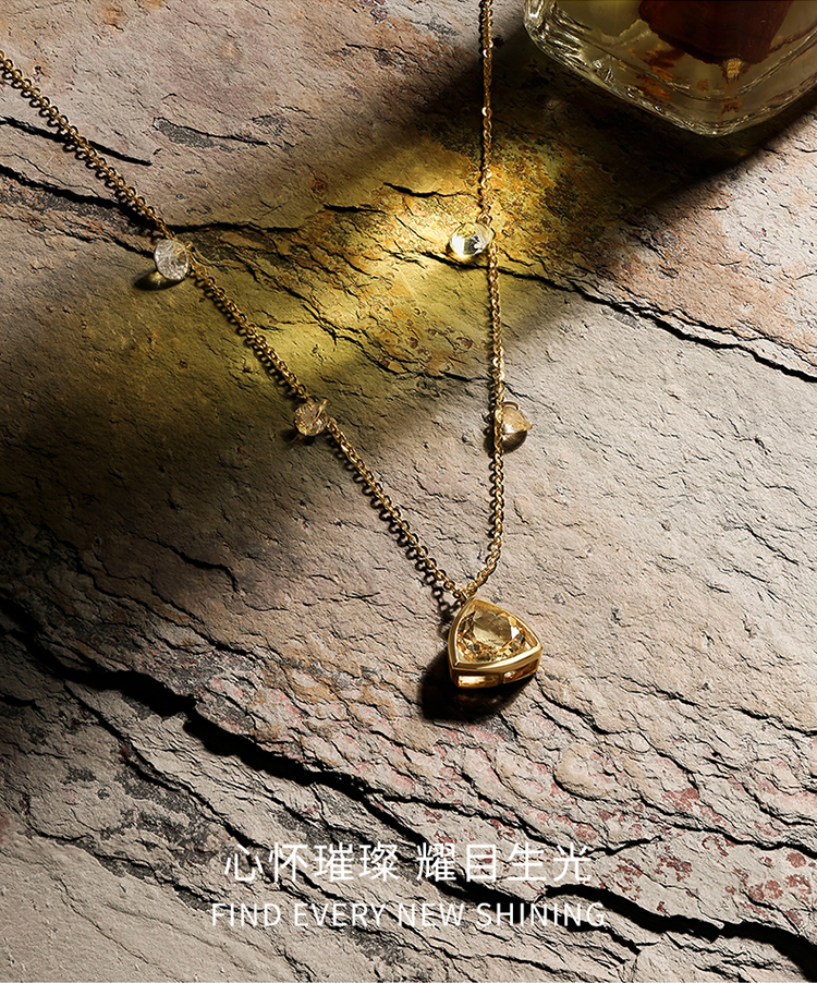 FENS Jewelry 18K Gold Necklace Women's Inlaid Citrine Topaz Neck Jewelry Birthday Gift 1 Carat