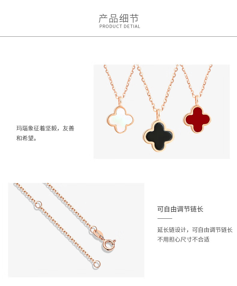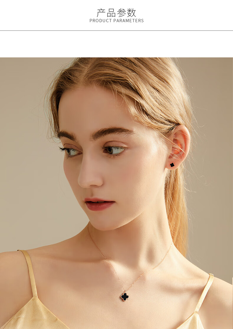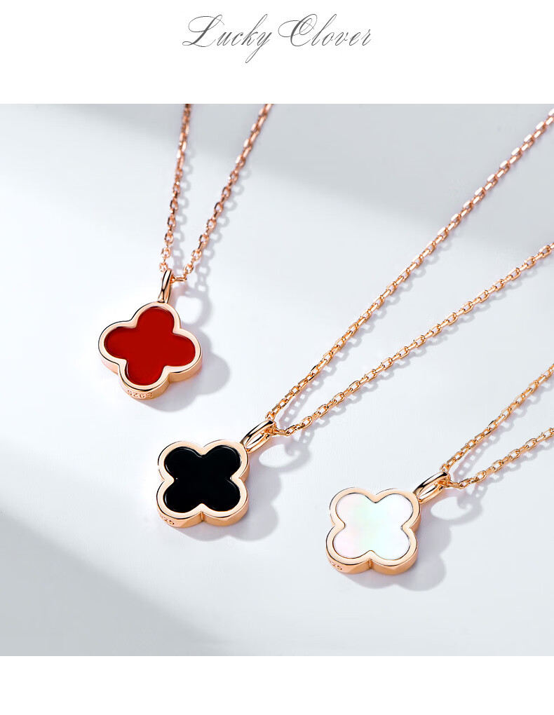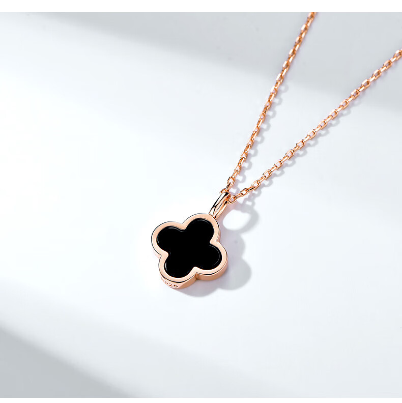 Ji Sifan light luxury necklace women's four-leaf clover 18K color gold jewelry Valentine's Day anniversary birthday gift for girlfriend and wife 18K rose gold black agate four-leaf clover necklace