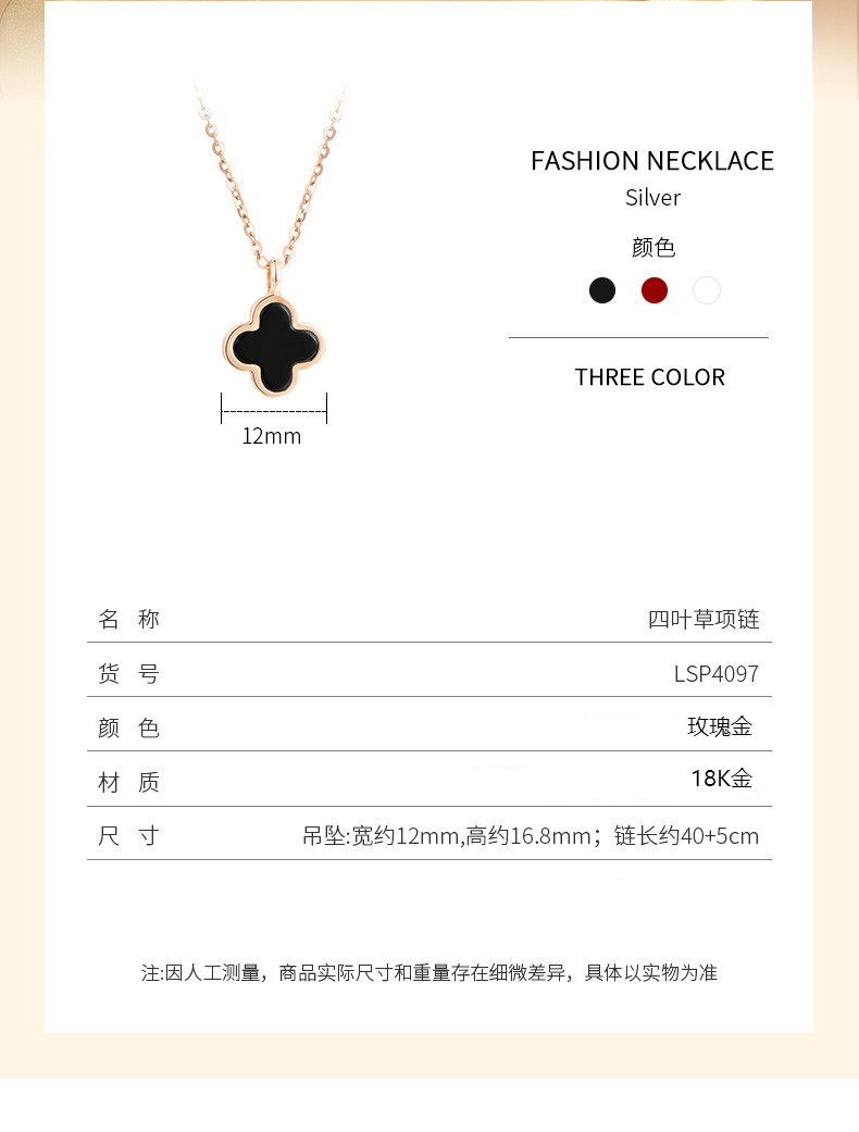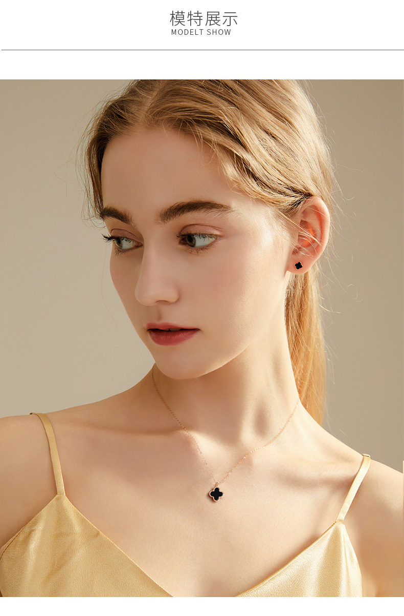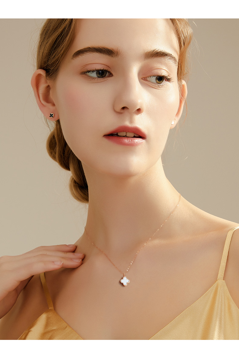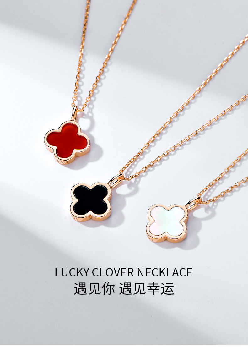 Ji Sifan light luxury necklace women's four-leaf clover 18K color gold jewelry Valentine's Day anniversary birthday gift for girlfriend and wife 18K rose gold black agate four-leaf clover necklace