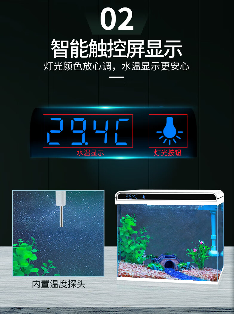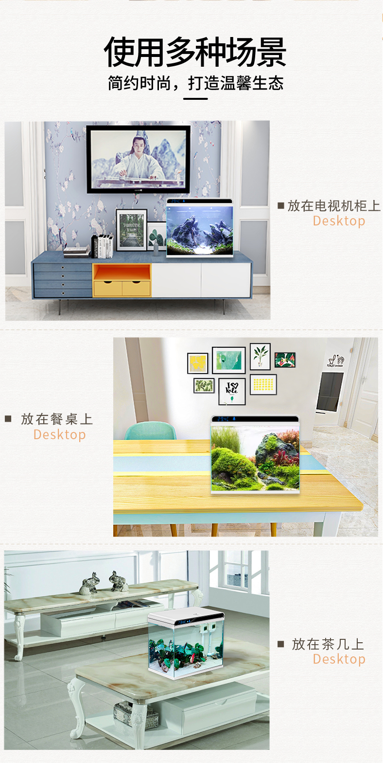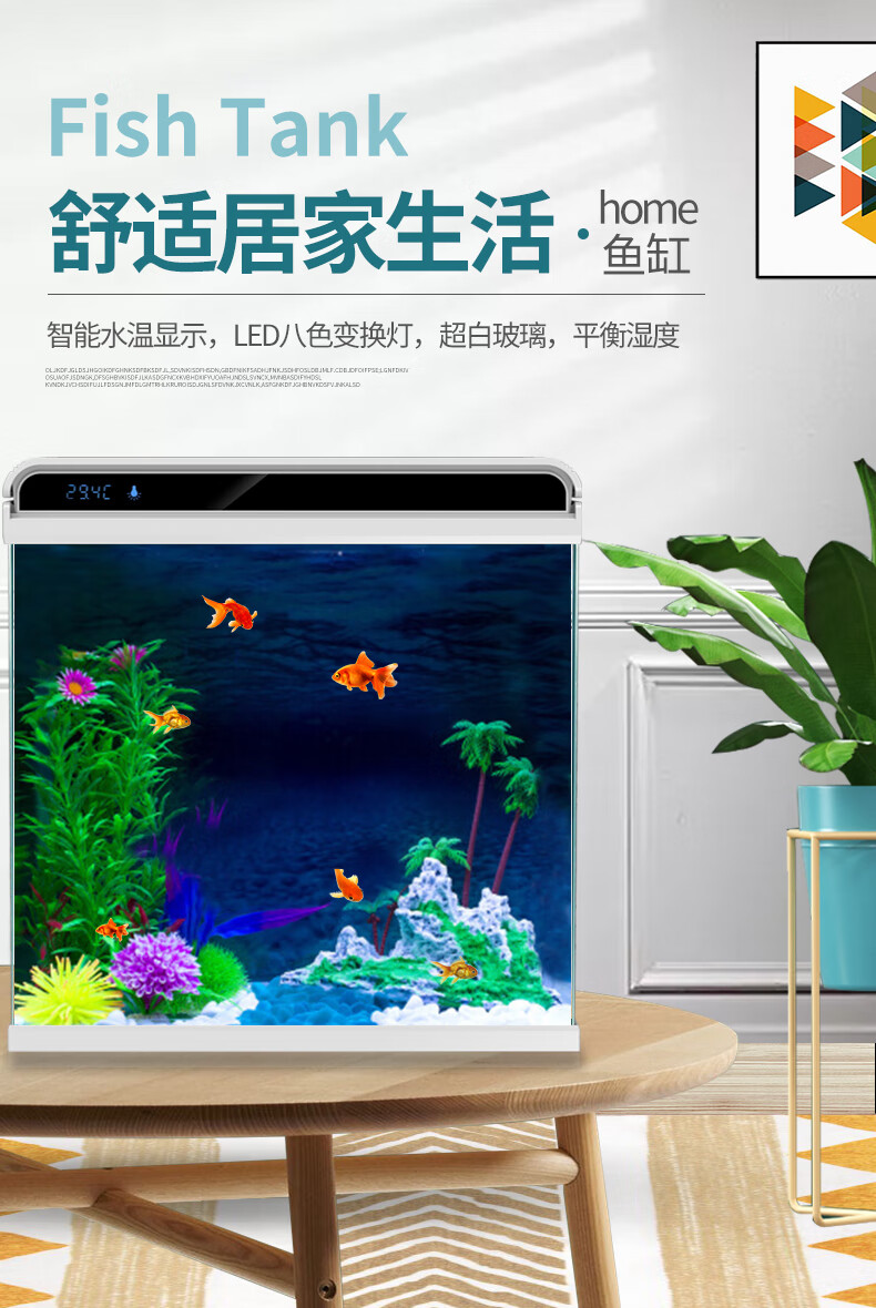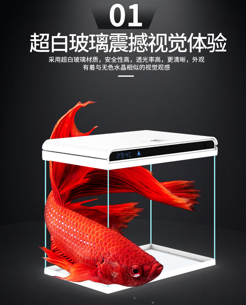 Sensen Fish Tank Living Room Small Desktop Ultra White Glass Home Aquarium Ecological No-Change Water Medium Goldfish Tank Black 380 Ultra White + Landscaping 46 (Built-in Cotton