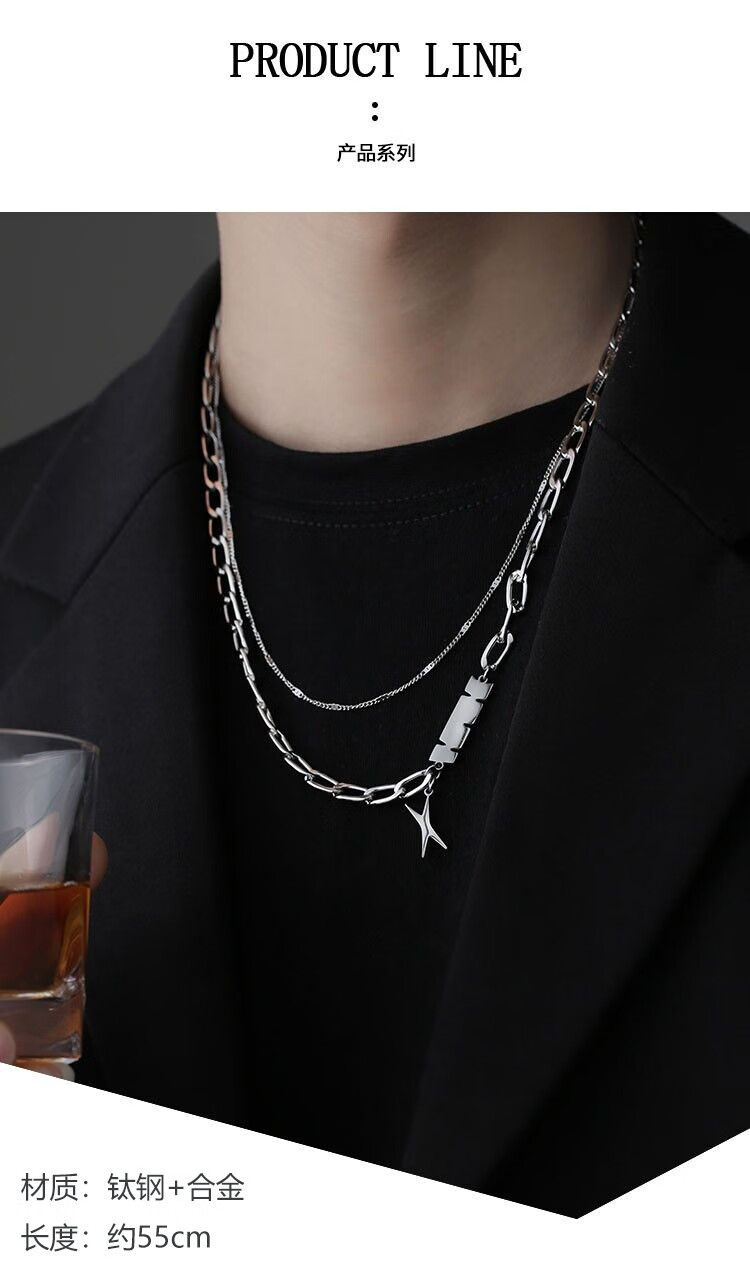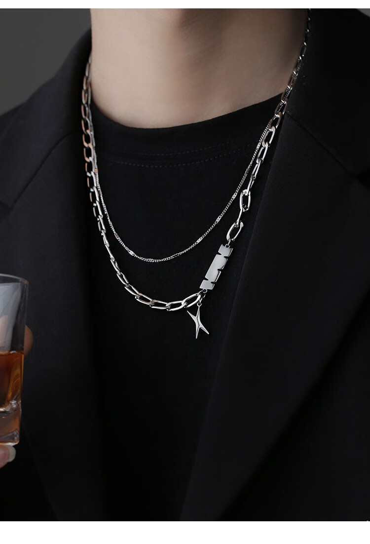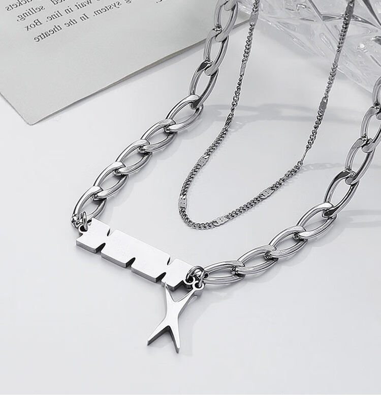 BJYL double-layer necklace for men's fashionable student letter pendant, versatile clavicle chain, personalized choker, clothing accessories, gift for boyfriend