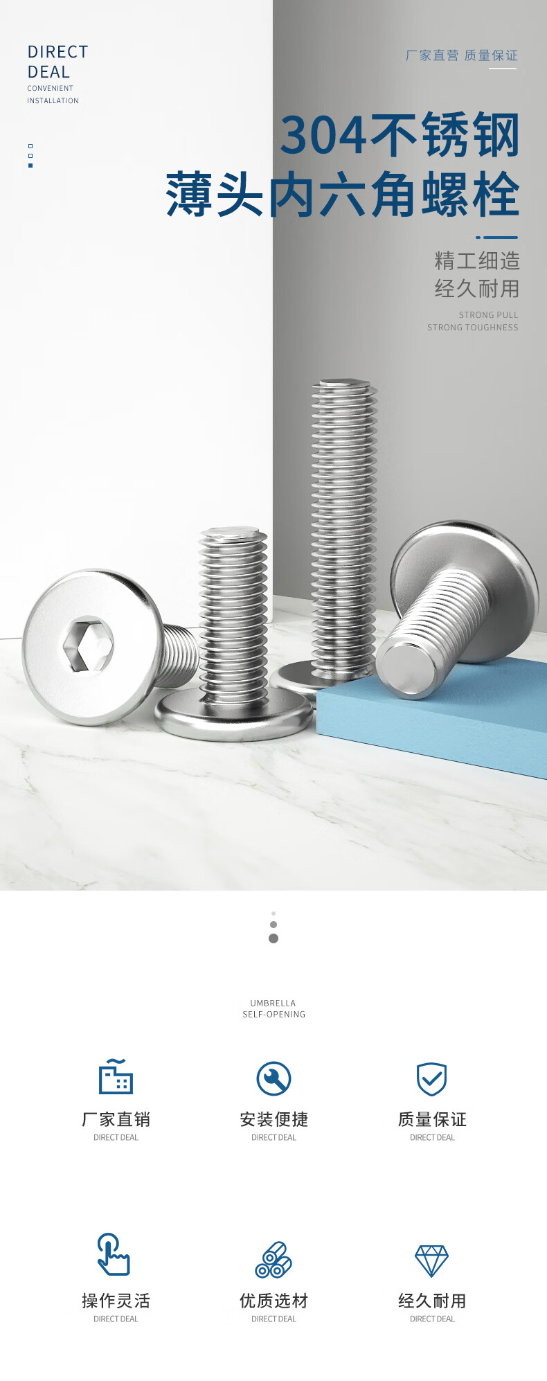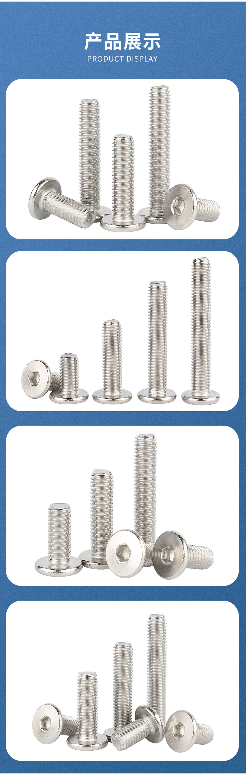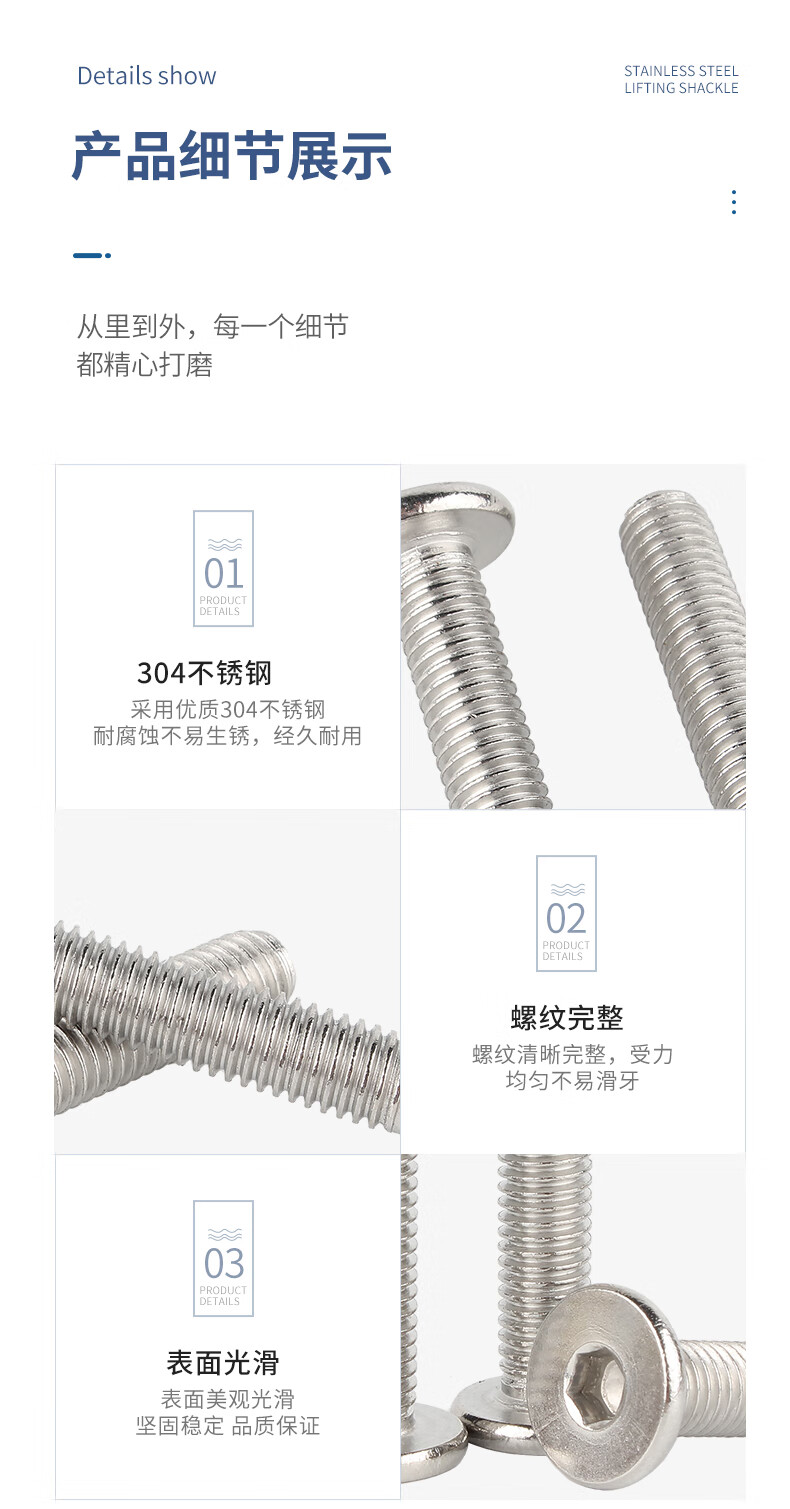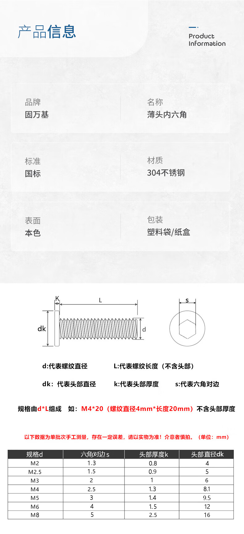 Guwanji 304 stainless steel flat head hexagonal screws thin head screws CM flat head machine bolts national standard fasteners M4*10 50 pieces