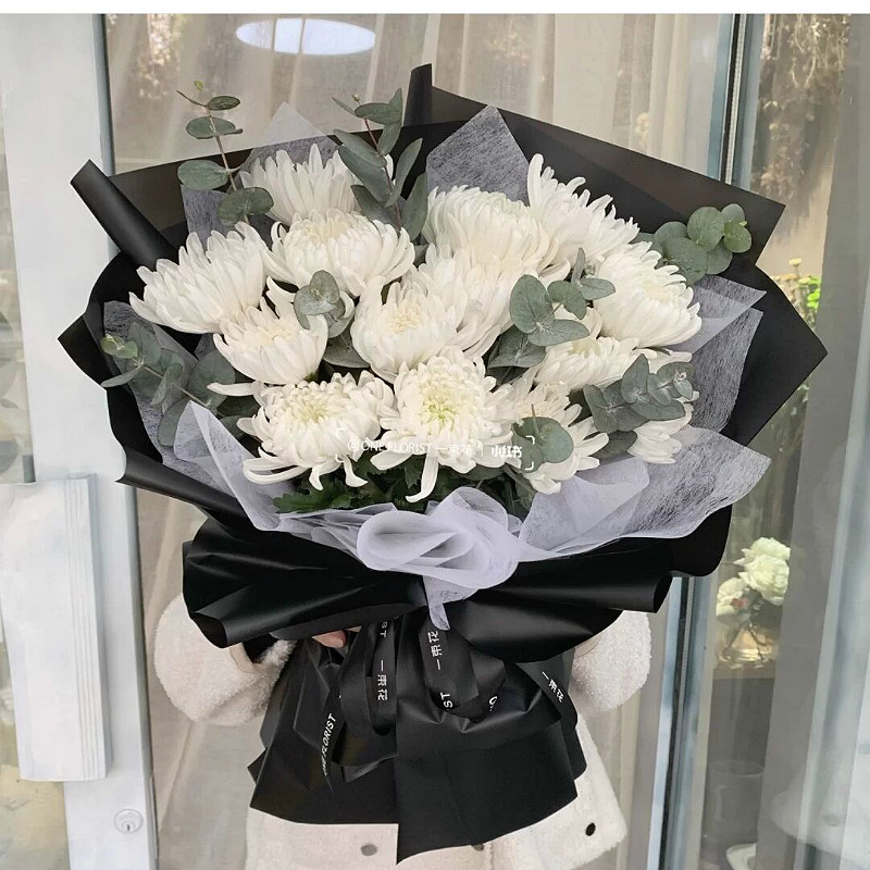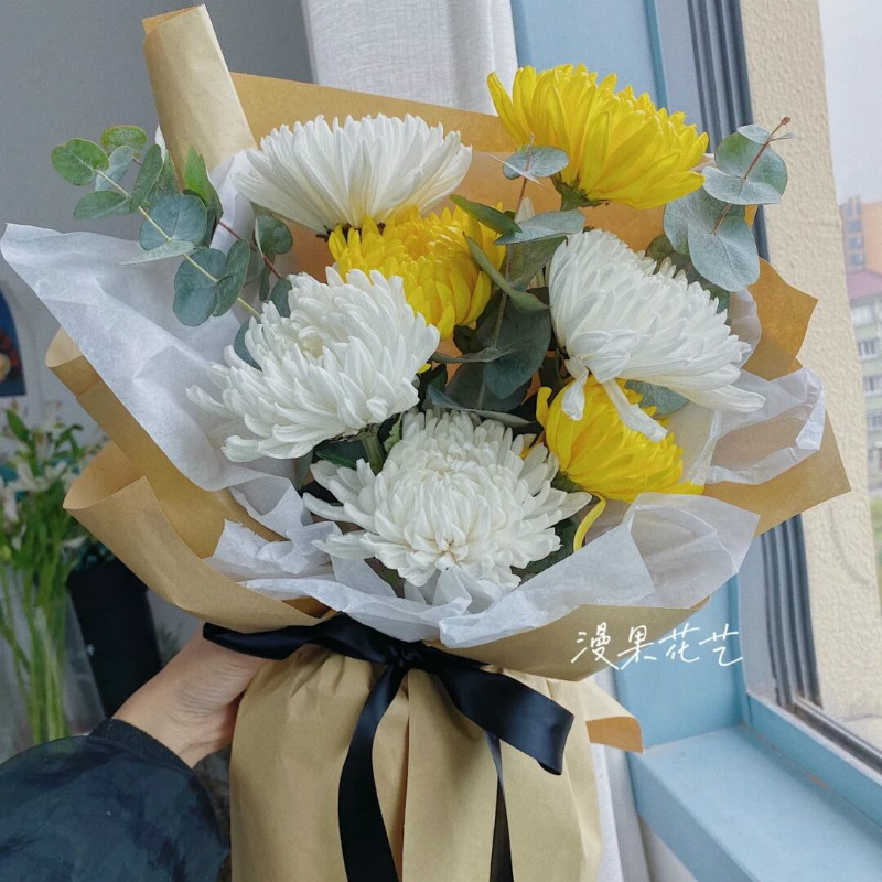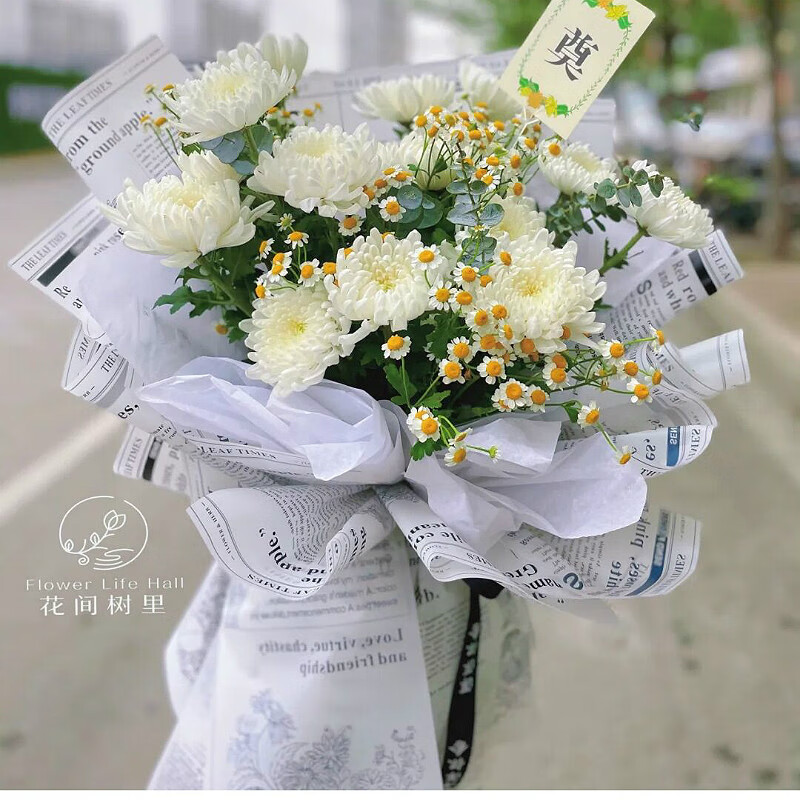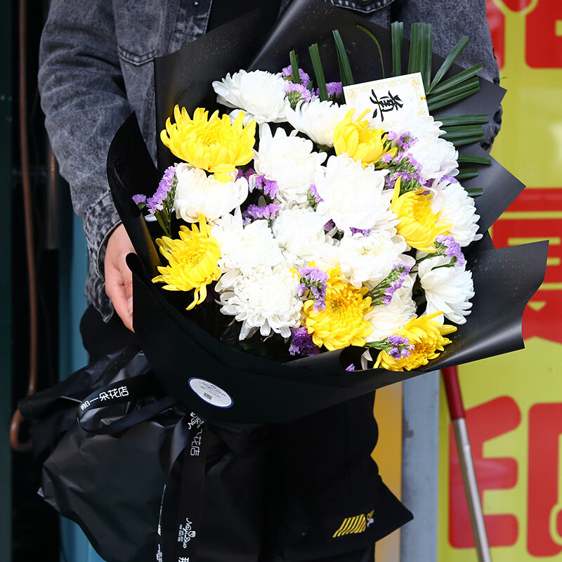 Yushang Ching Ming Festival chrysanthemum bouquet for grave sweeping and memorial service, flower express delivery in the same city, Beijing, Shanghai and Guangzhou distribution store, style 12 (11 mixed chrysanthemums and 2 lilies) E