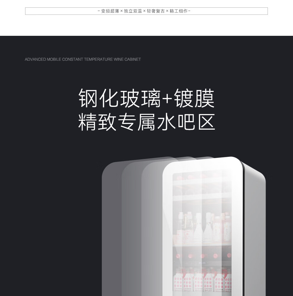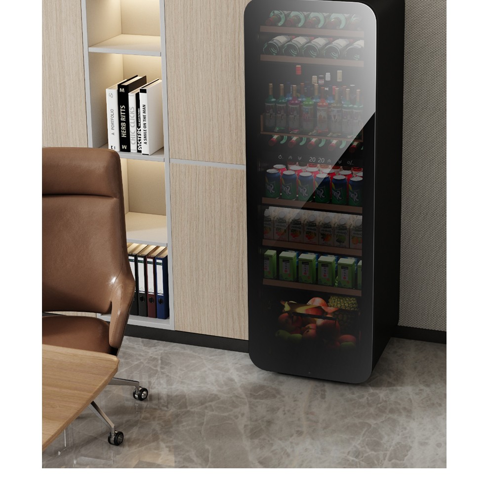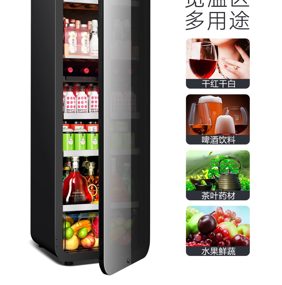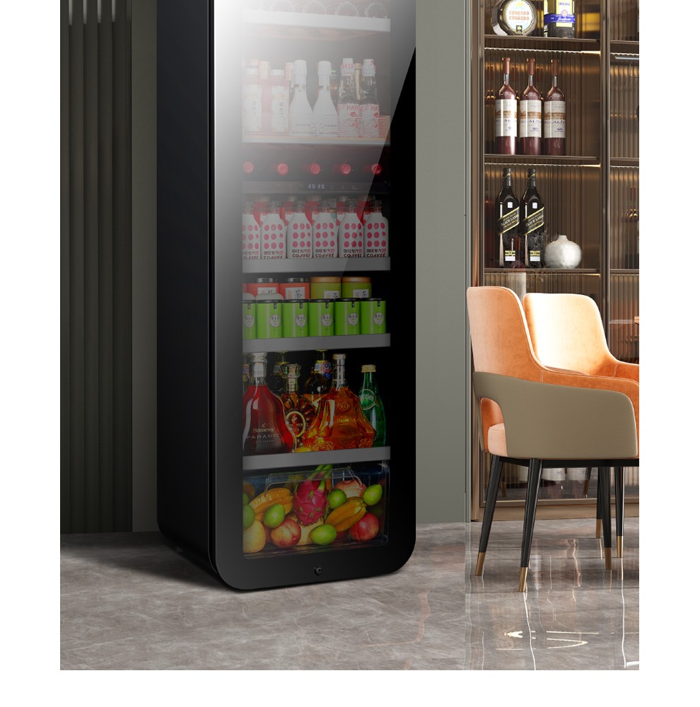 PULADI frequency conversion first-class ice bar home living room refrigerator frost-free air-cooled office glass door refrigerator freezer tea beverage wine cabinet ultra-thin arc retro light luxury energy-saving 1.6 meters black mirror frequency conversion dual temperature first-class energy efficiency